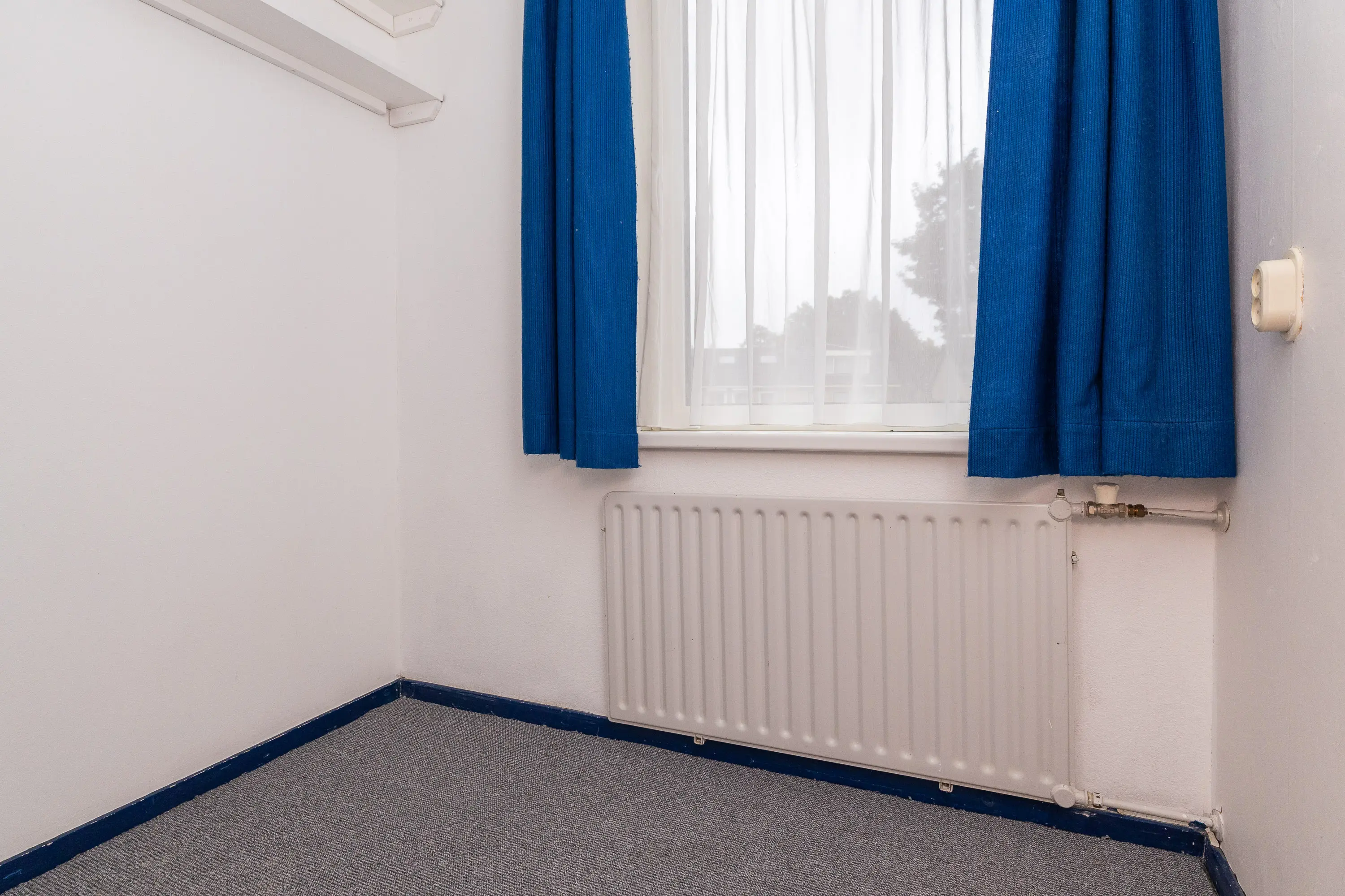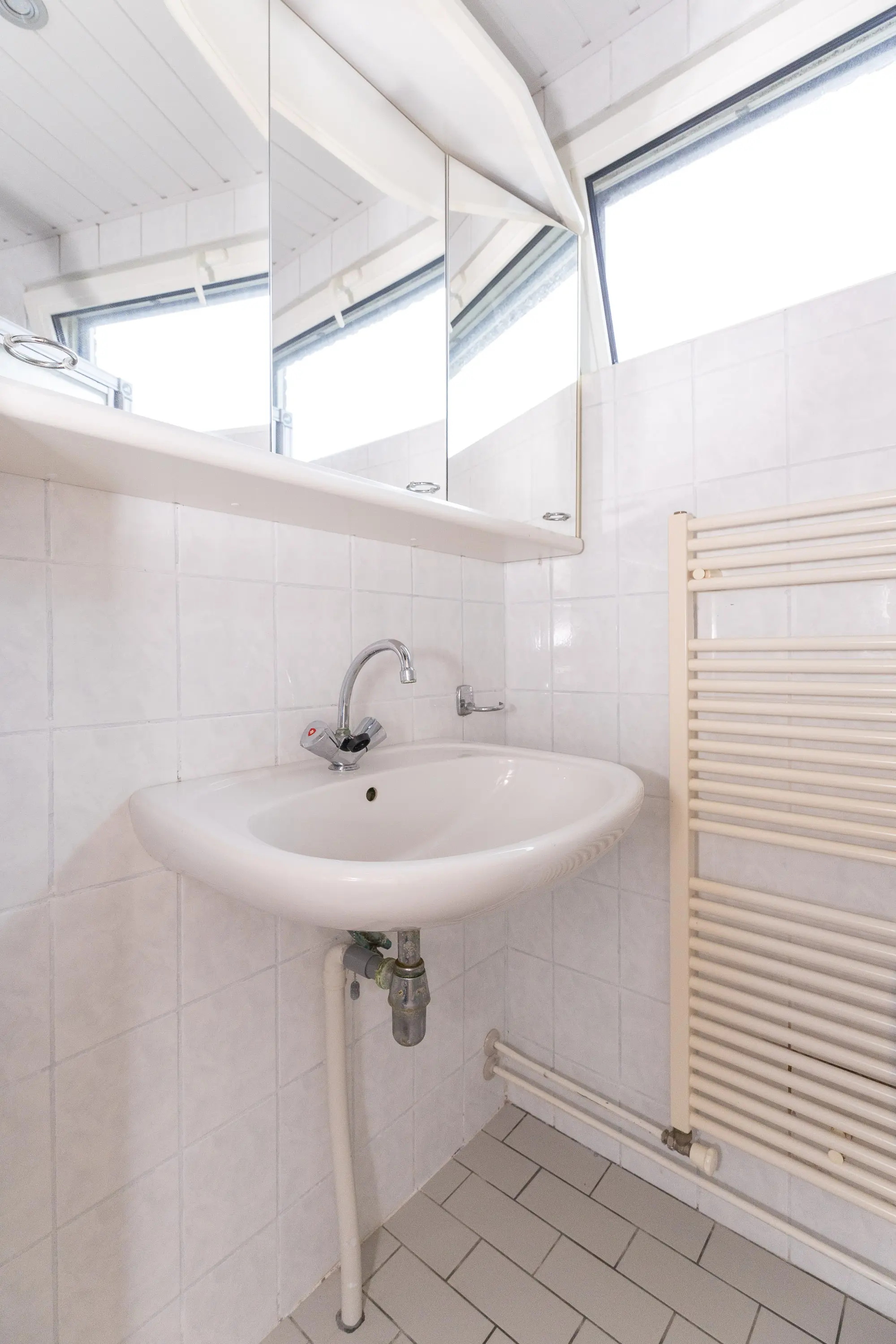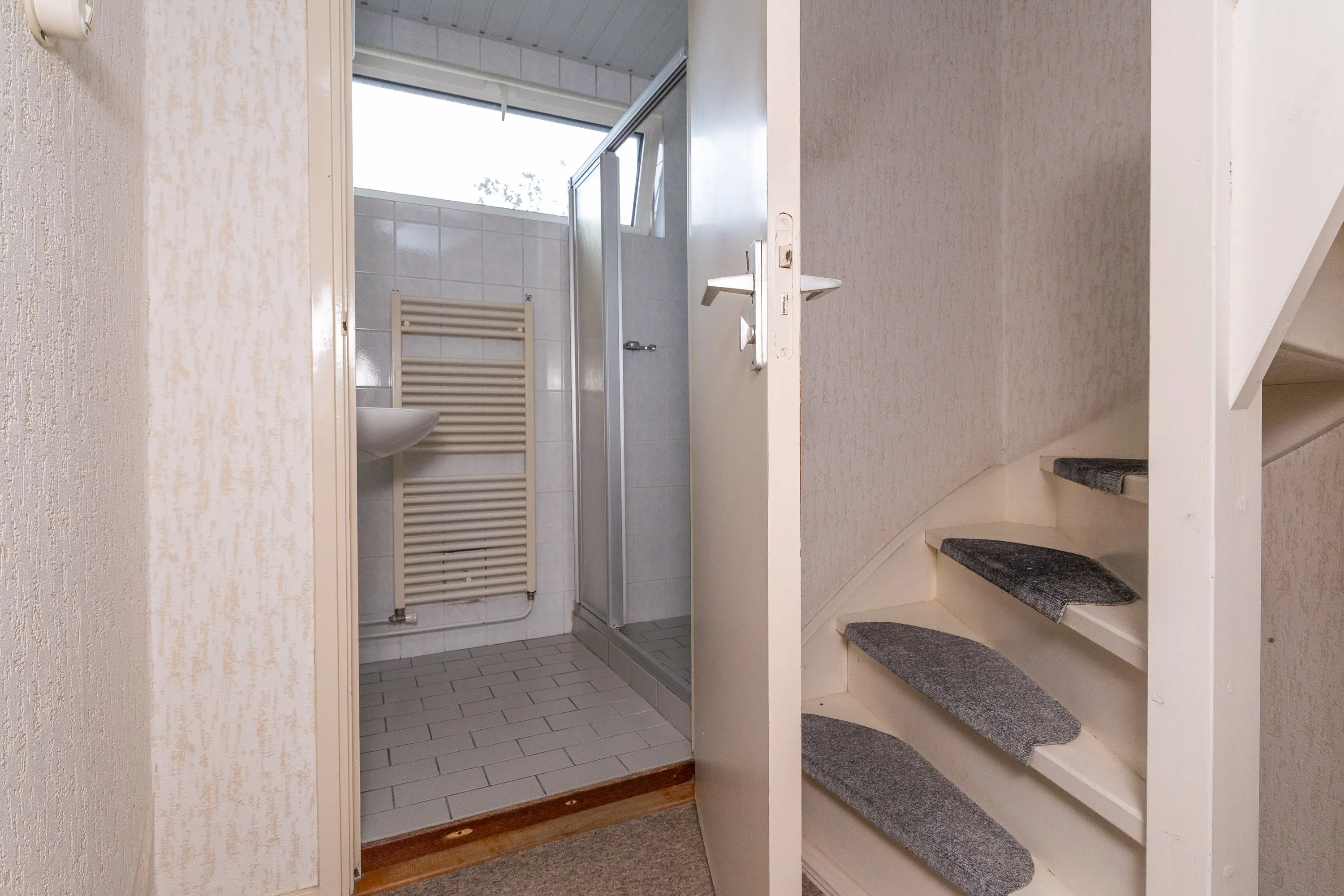 De vaste trap leidt naar de tweede verdieping met een groot dakraam, radiator en veel bergruimte. Hier is ook de cv-installatie (2024) keurig weggewerkt in een kast. Deze verdieping kan desgewenst ook worden ingericht als extra slaapkamer, hobbykamer of thuiswerkplek.