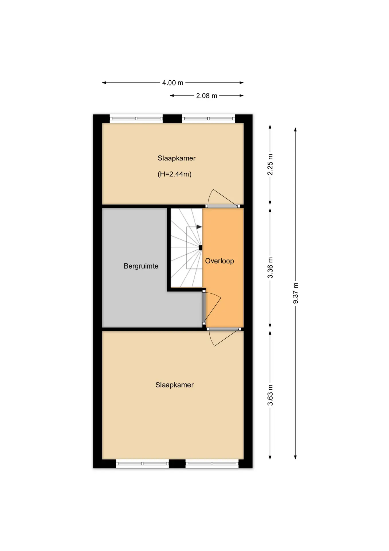 De tweede verdieping is verrassend ruim en biedt nog eens twee royale slaapkamers. Daarnaast is er een grote inpandige bergruimte aanwezig, ideaal voor extra opslag of het netjes opbergen van spullen.