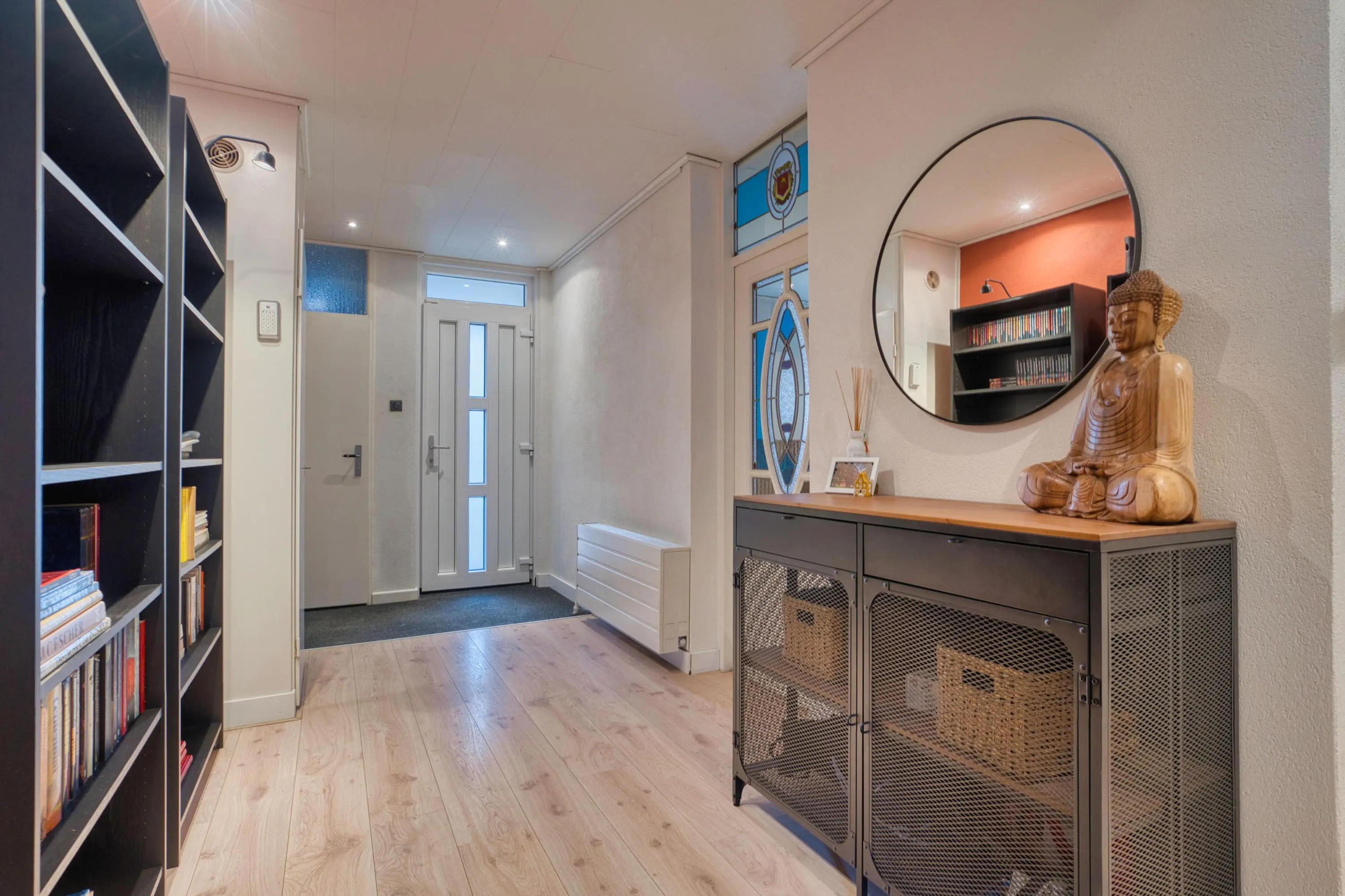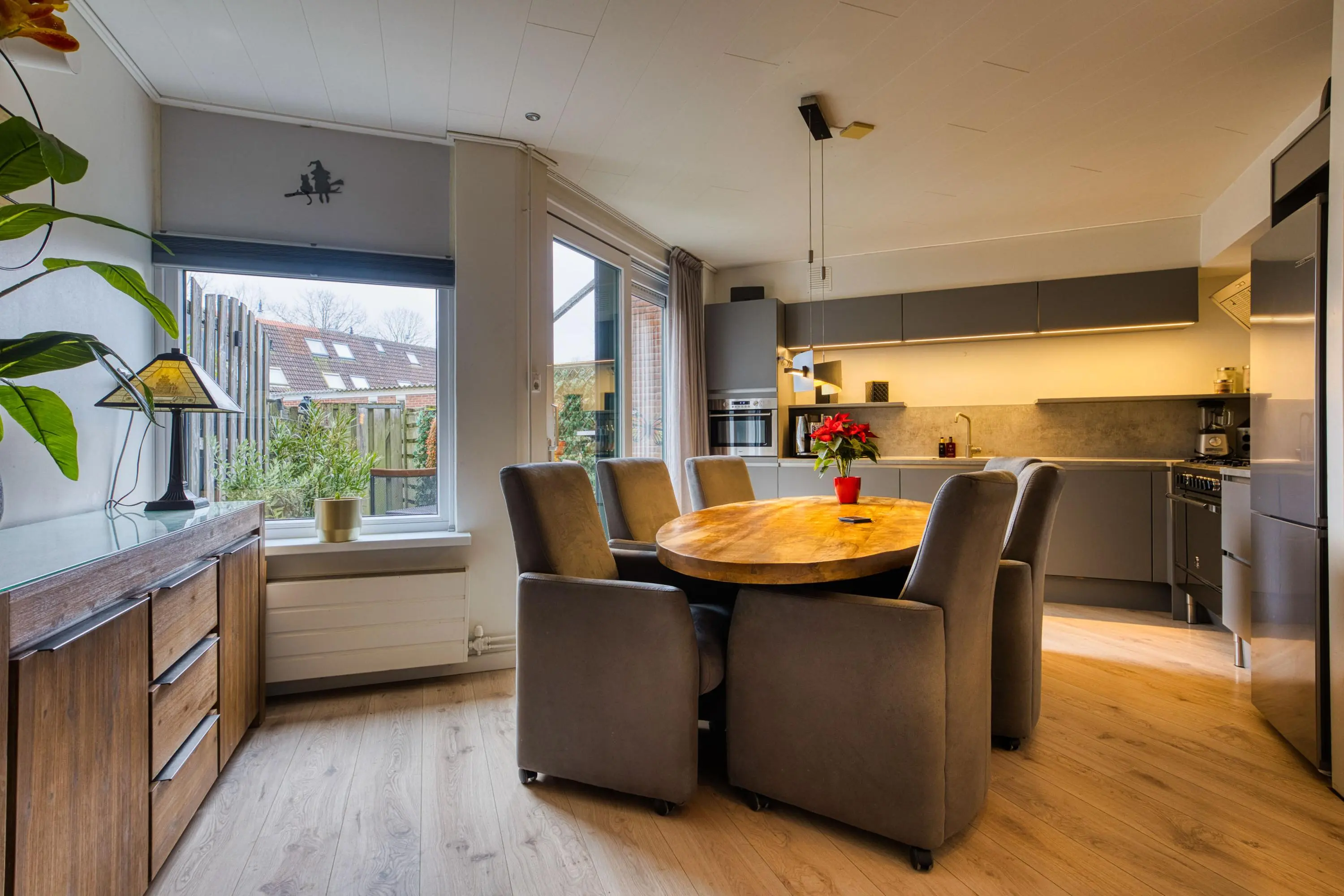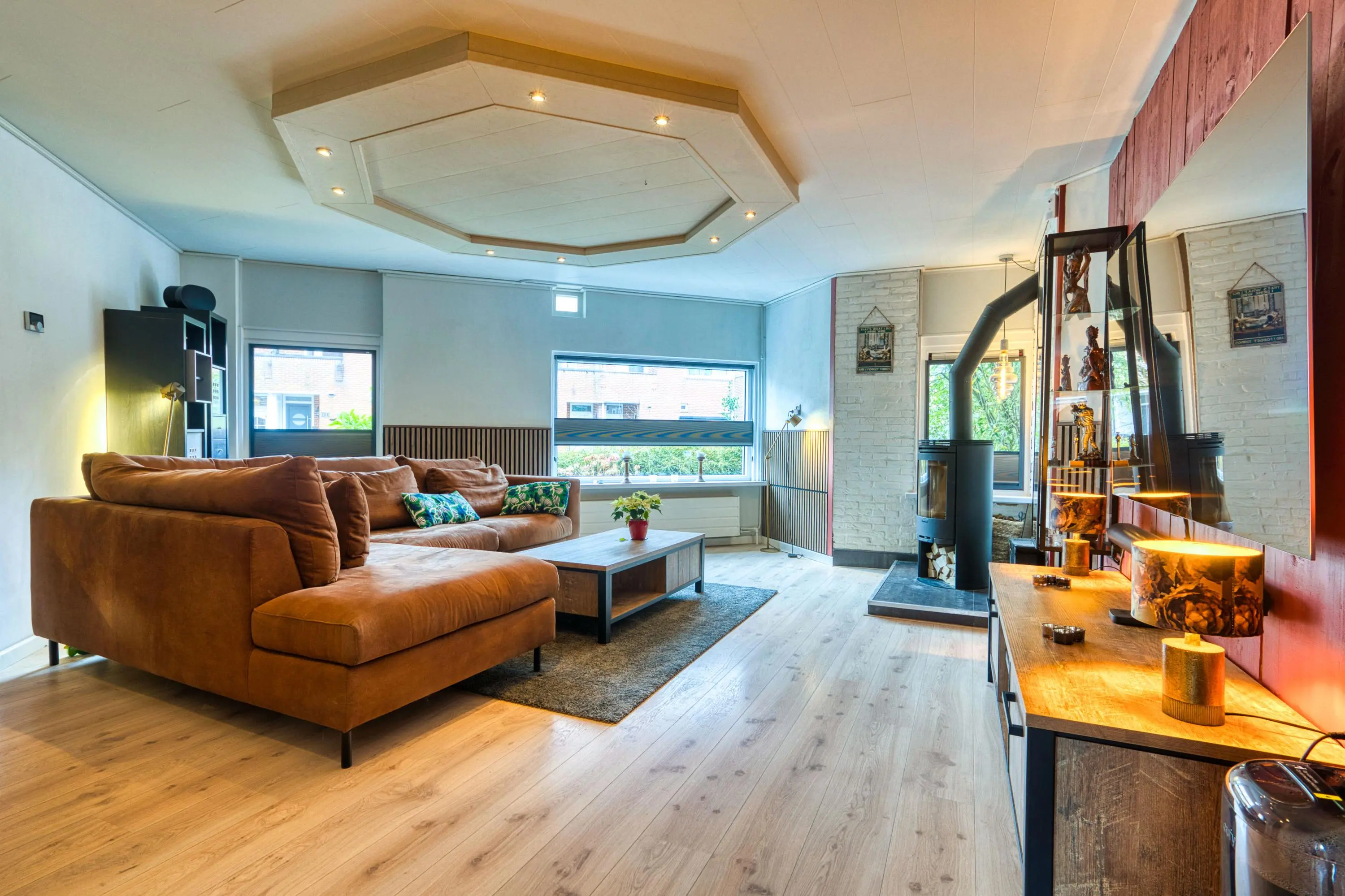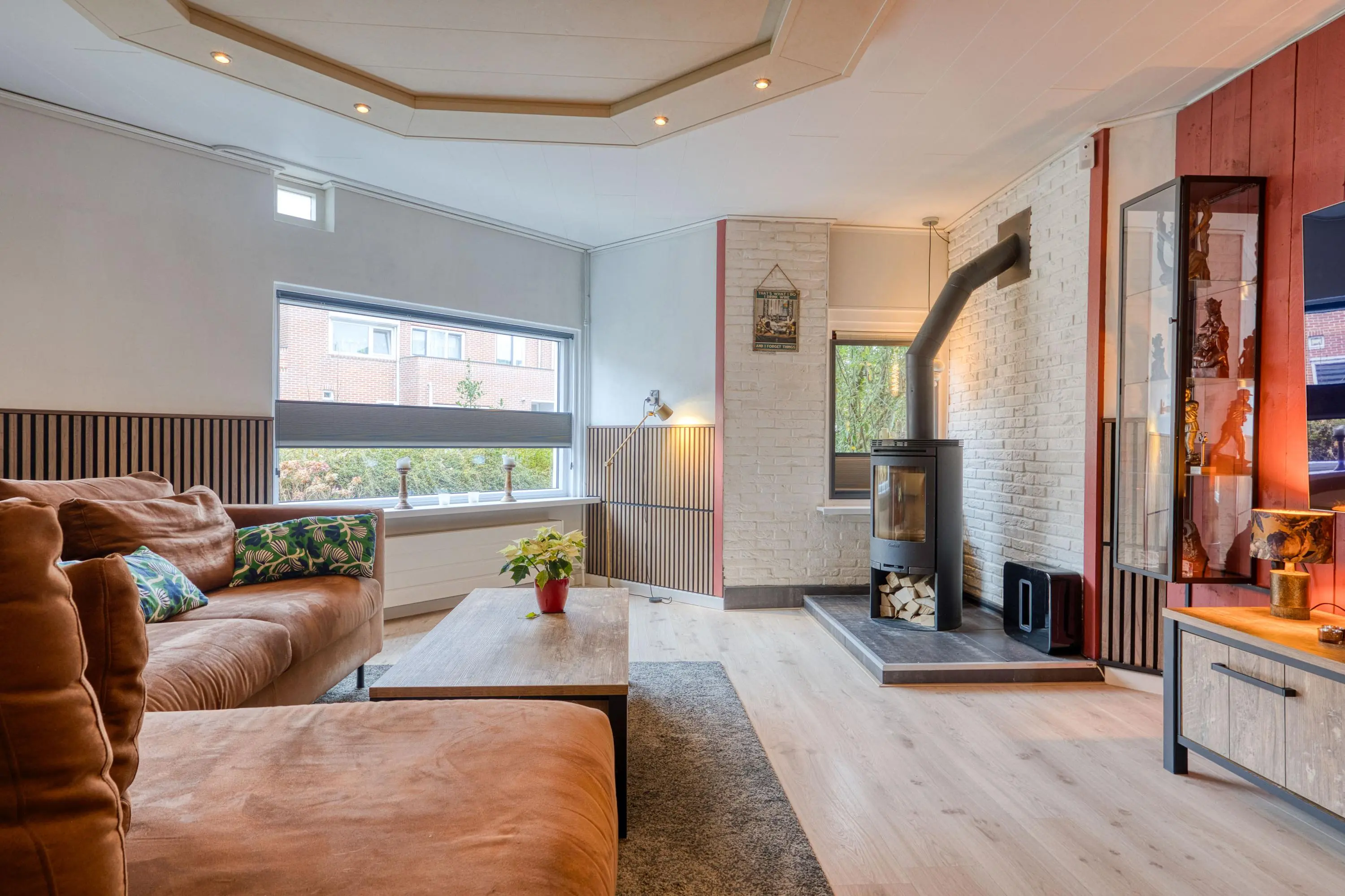 Welkom in de royale hal met toiletruimte, trapopgang en binnendoor naar de praktische inpandige garage. De lichte, straatgerichte woonkamer heeft een gezellige haardkachel en een speelse indeling. Aan de tuinzijde bevindt zich de ruime woonkeuken met schuifpui naar de achtertuin. De keuken is opgesteld in L-vorm en voorzien van o.a. een ingebouwd gasfornuis, combi magnetron, vaatwasser en afzuigkap.