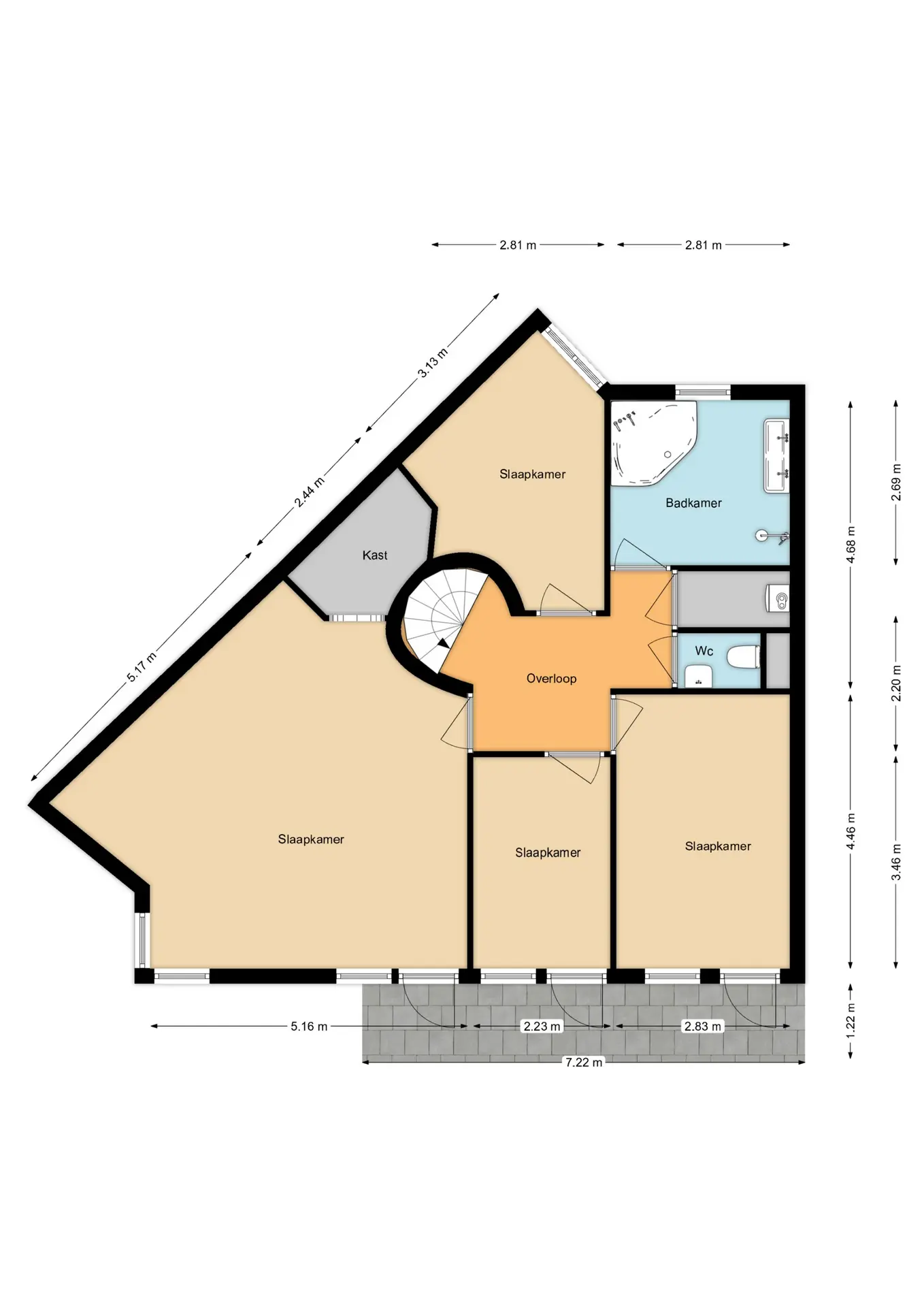 De ruime overloop geeft toegang tot maar liefst vier goed bemeten slaapkamers. Aan de voorzijde liggen drie kamers, waarvan één is uitgerust met een vaste inloopkast. Drie slaapkamers hebben toegang tot het zonnige balkon op het zuidwesten. Aan de achterzijde bevindt zich de vierde slaapkamer. Verder vind je hier een apart tweede toilet, een praktische CV-/bergruimte en de volledig betegelde badkamer in frisse witte tinten met ligbad(whirlpool), inloopdouche en wastafel met meubel.