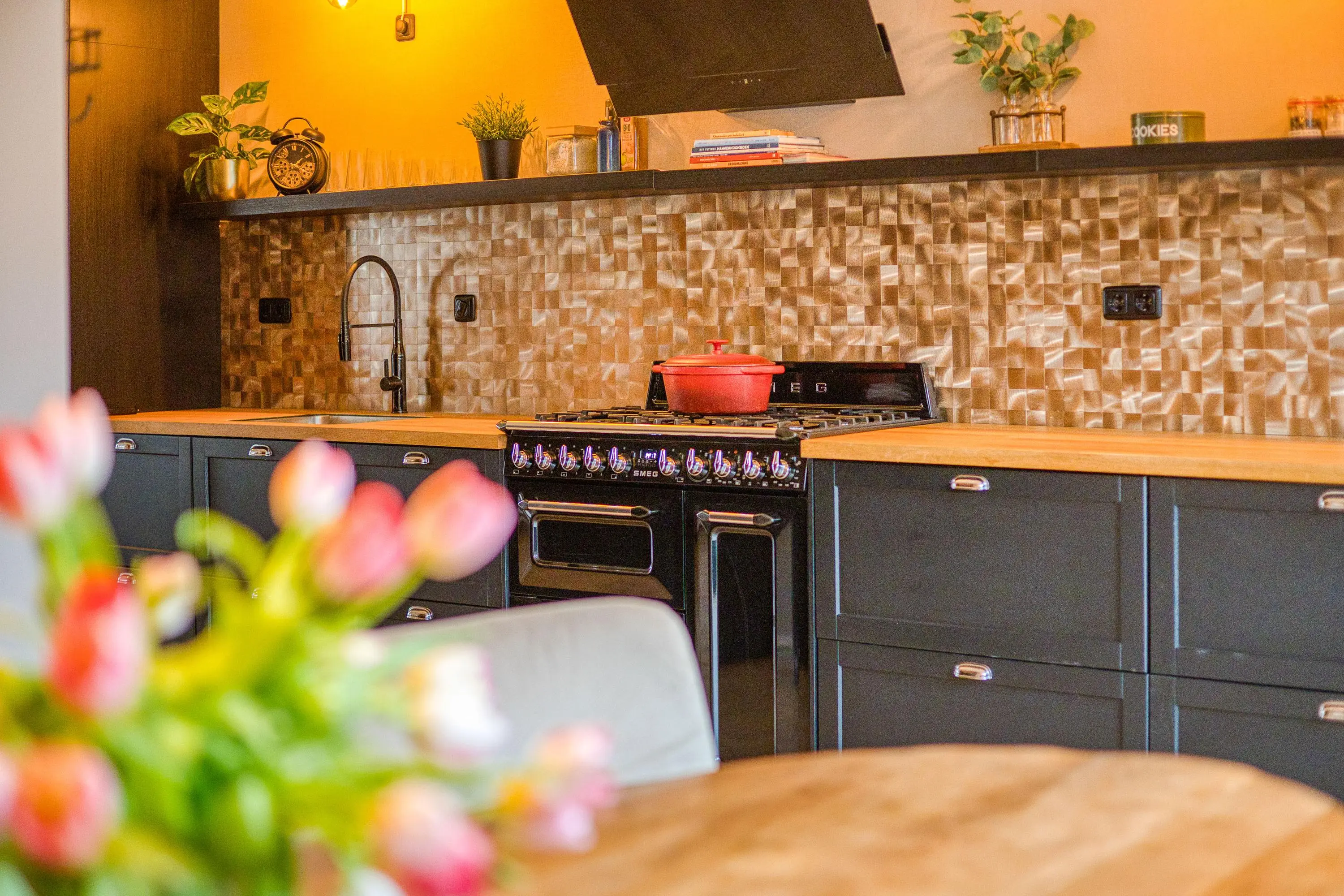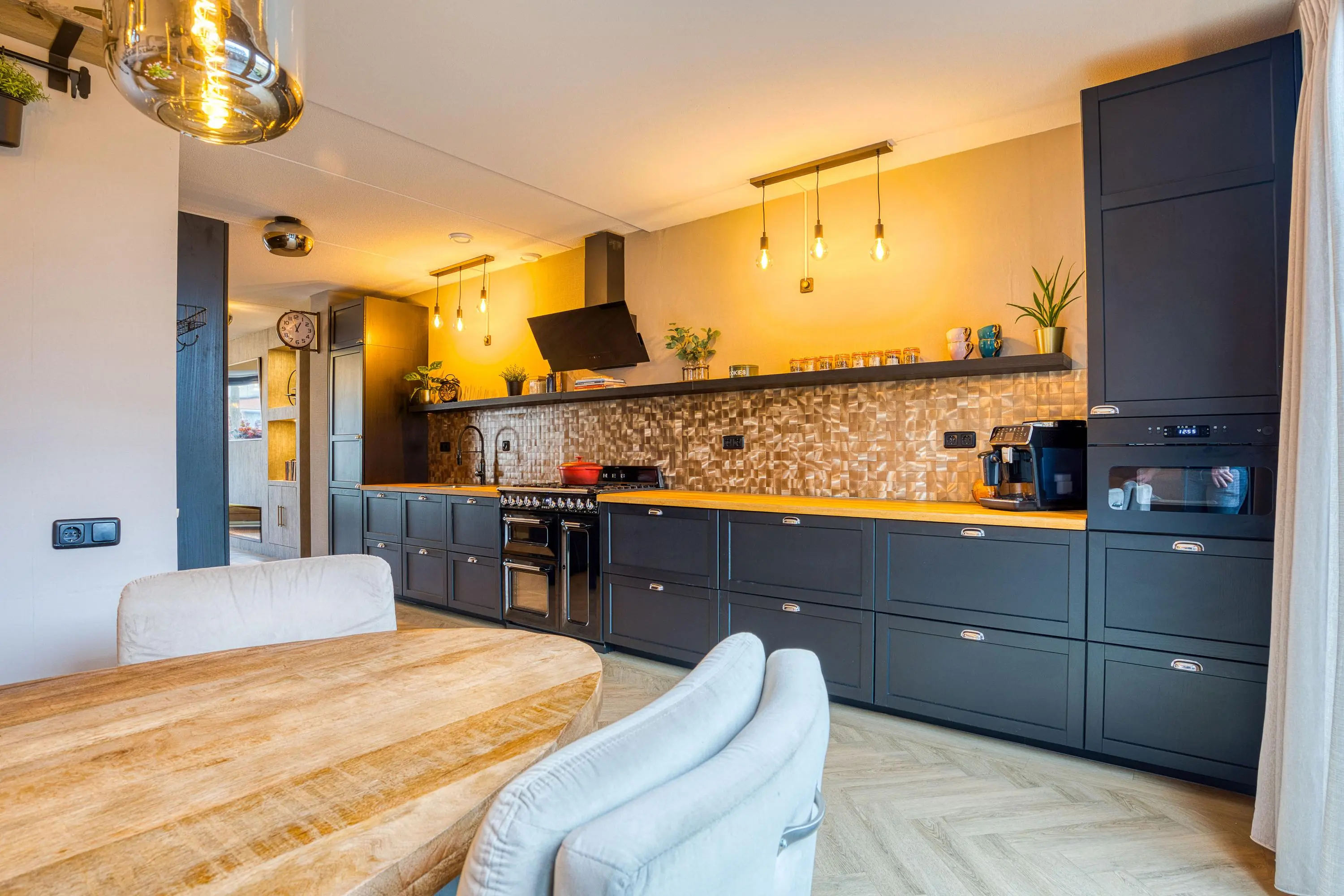 De luxe keuken is een droom voor de kookliefhebber en is uitgerust met diverse hoogwaardige inbouwapparatuur, waaronder een 6-pits Smeg fornuis met oven, grill én bordenwarmer. Hier kookt u met plezier voor familie en vrienden.