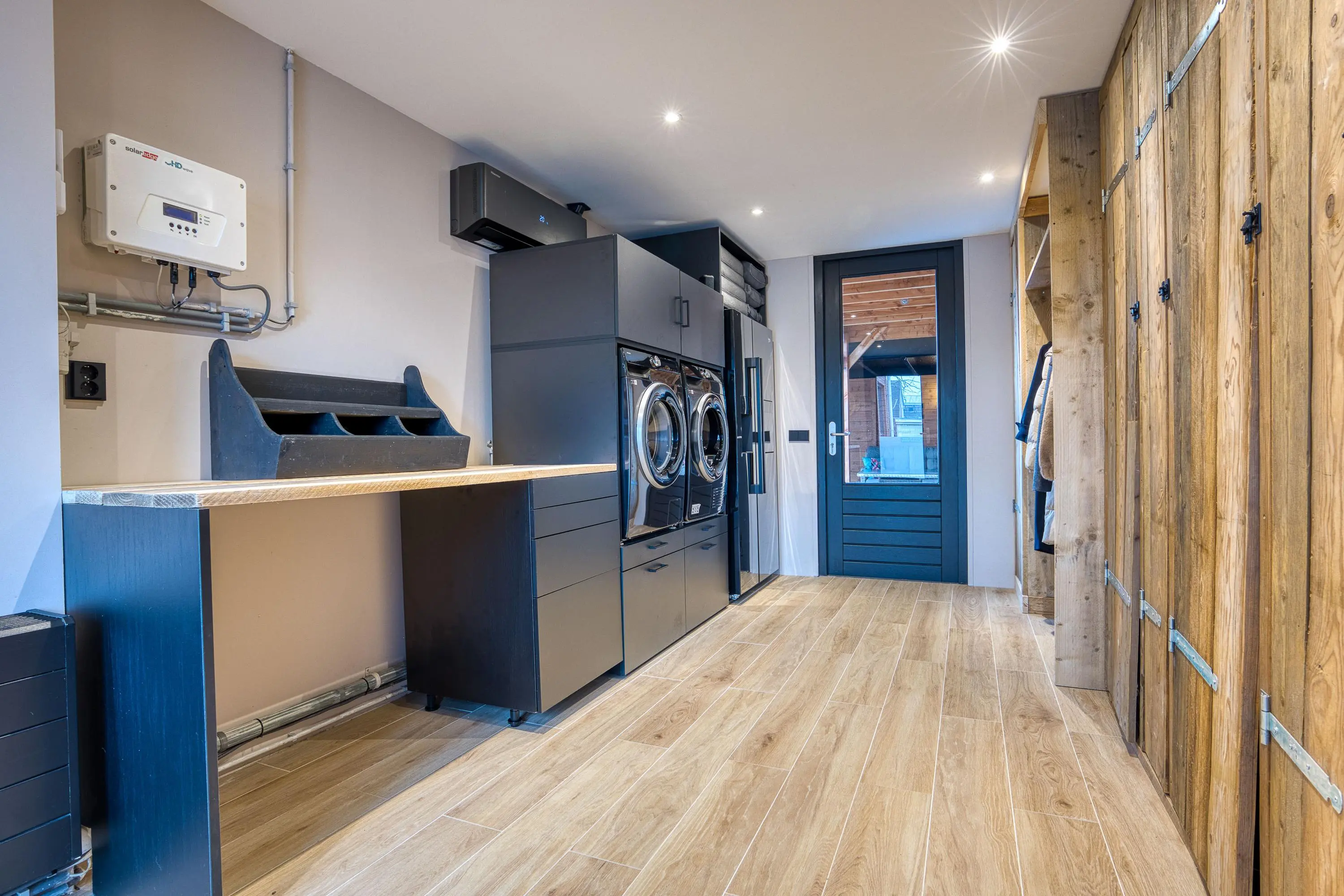 Uniek is de volledig geïsoleerde garage, die is omgebouwd tot salon- of praktijkruimte, voorzien van airconditioning en een eigen entree. Ideaal voor thuiswerken, een praktijk aan huis of kantoorruimte. Tevens zijn hier aansluitingen voor wasmachine en droger aanwezig.