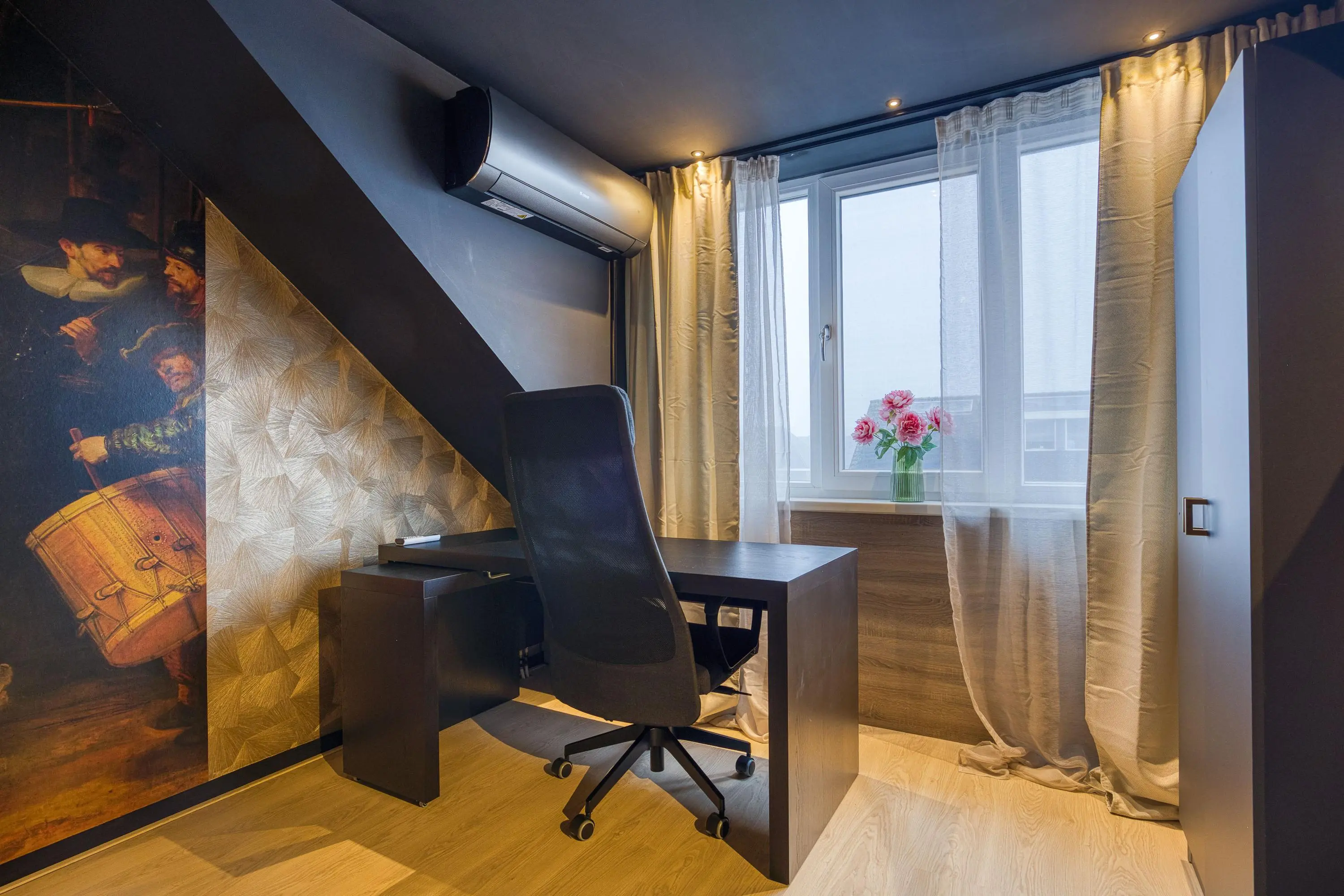 De tweede verdieping beschikt over een voorzolder met veel bergruimte, een extra wasmachineaansluiting, cv-installatie en warmteboiler. Dankzij de dakkapel is hier een volwaardige derde slaapkamer gerealiseerd ook deze ruimte is voorzien van airconditioning.