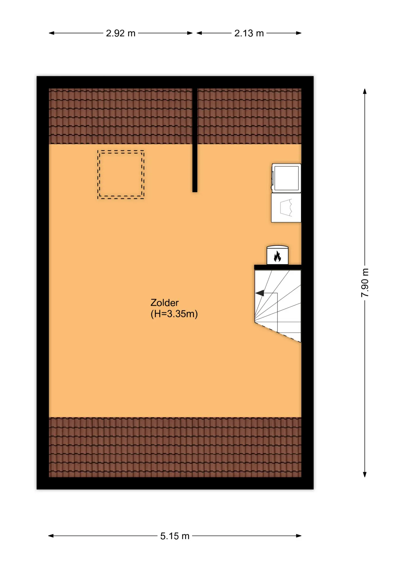 zolderverdieping/4e slaapkamer met voldoende opbergruimte en een ruime voorzolder met de opstelling van de cv-ketel, type Remeha, bouwjaar 2013 en de wasmachineaansluiting.