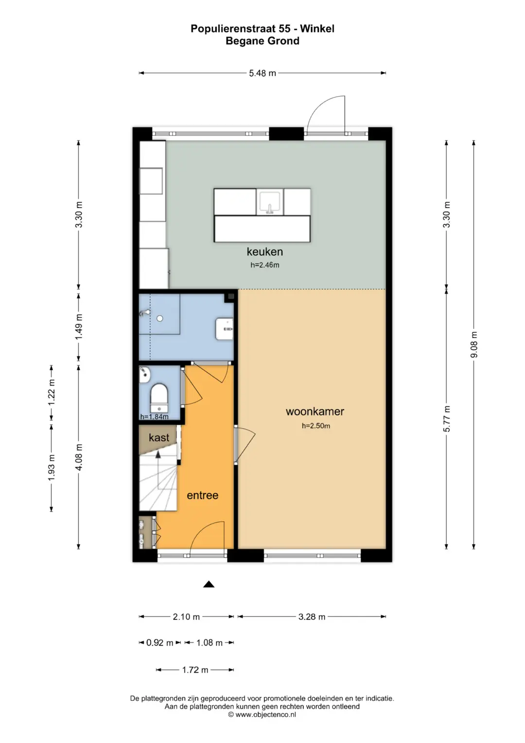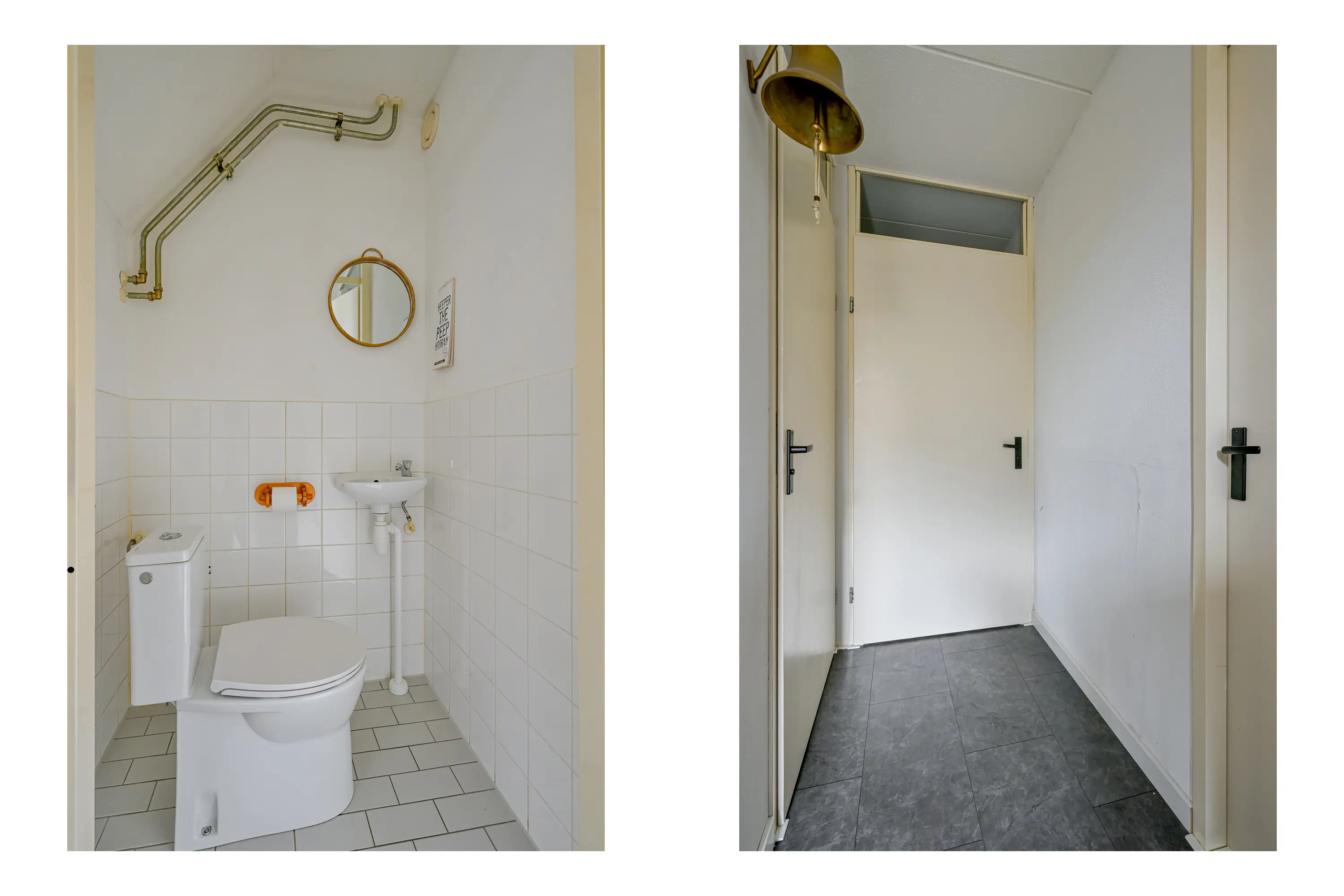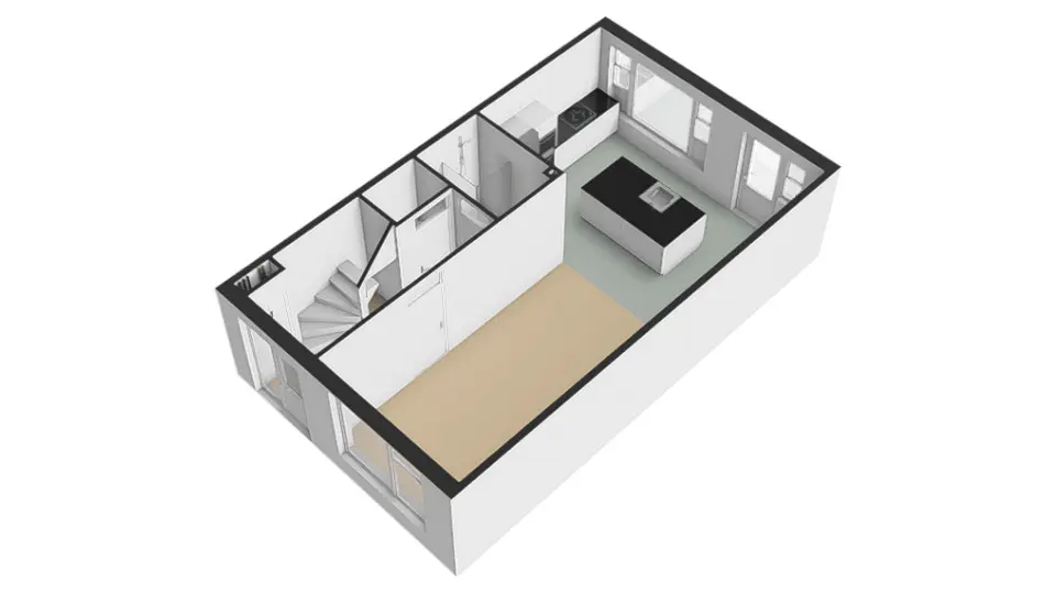 Begane grond: In de hal aan de voorzijde van de woning treft u de meterkast, toiletruimte, badkamer, de trap naar boven en de toegang tot de woonkamer aan.