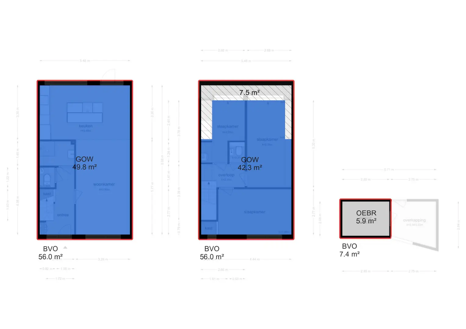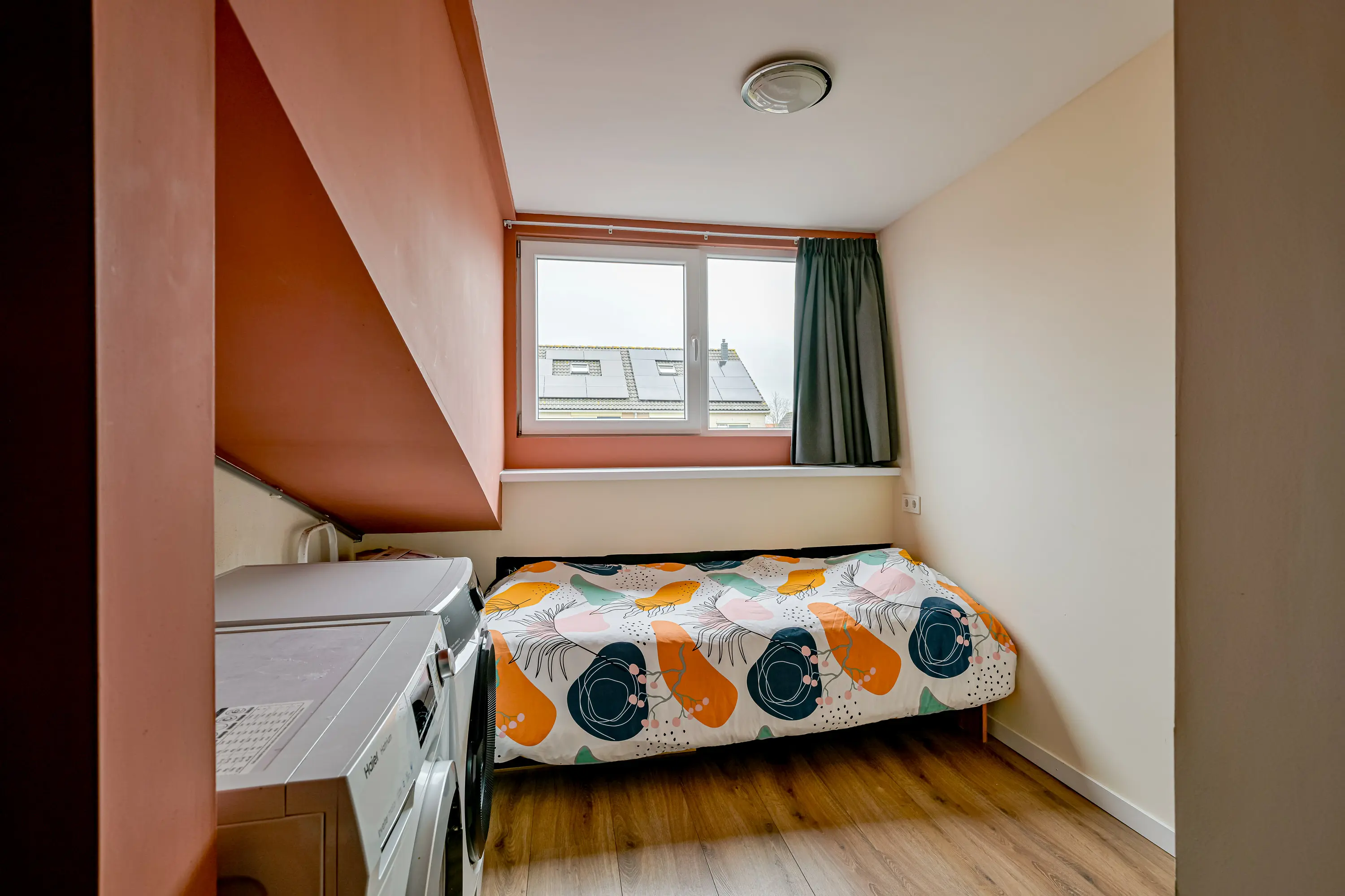 1e verdieping: Via de trap vanuit de hal bereikt u de 1e etage. Op de 1e verdieping zijn 3 slaapkamers aanwezig. Op een van deze kamers is een nis gecreëerd voor plaatsen van een wasmachine, droger en cv-ketel. Ook vindt u op deze verdieping het tweede toilet.