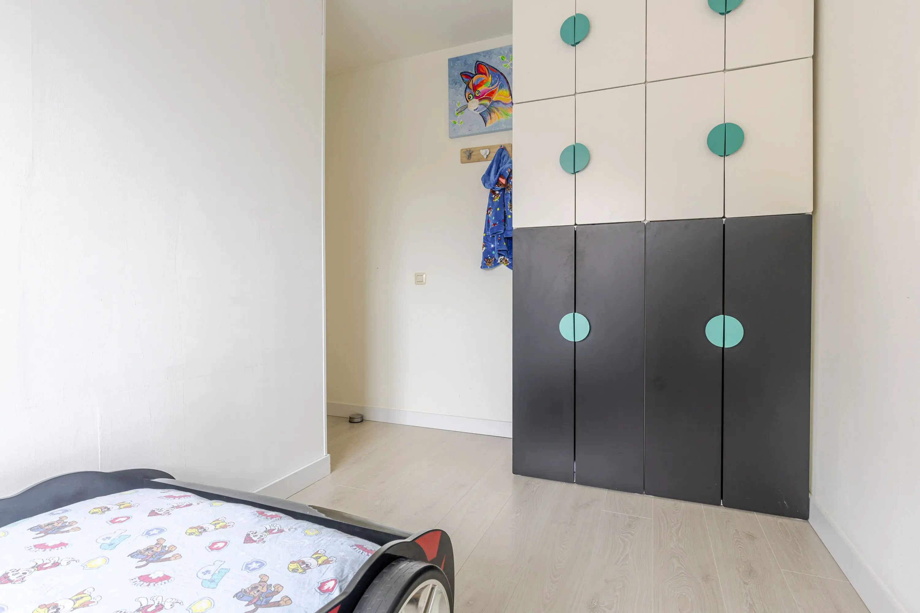 Aan het begin van de Kersenboogerd staat deze tot in de puntjes verbouwde hoekwoning op een nieuwe eigenaar te wachten. De zitkamer is aan de achterzijde verruimd met een onderhoudsvriendelijke uitbouw van 17m2 waardoor er een totaal woonoppervlak van ruim boven de 106 m2 is gerealiseerd. Door de neutrale kleur wit aan de gestukte wanden en plafonds ervaar je alles als zeer ruim en open. Door de opbouw van het dakkapel zowel aan de voor als achterzijde is er een ruime eerste verdieping met twee slaapkamers te vinden. Aan het dakkapel zijn geïntegreerde rolluiken geplaatst. De kozijnen aan de voorzijde zijn van hout en aan de achterzijde van de woning zijn onderhoudsvriendelijke kozijnen geplaatst. Op de uitbouw is EPDM als dakbedekking gebruikt.