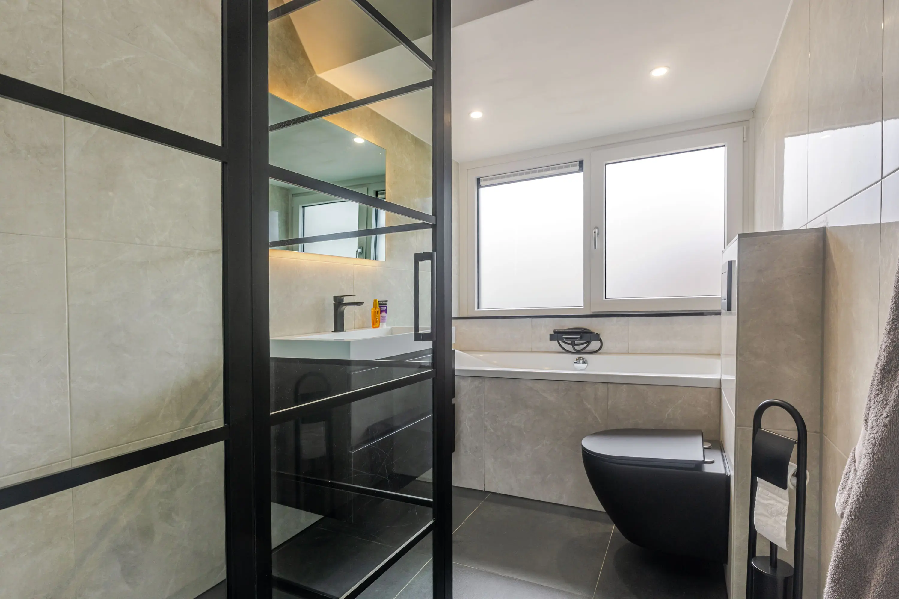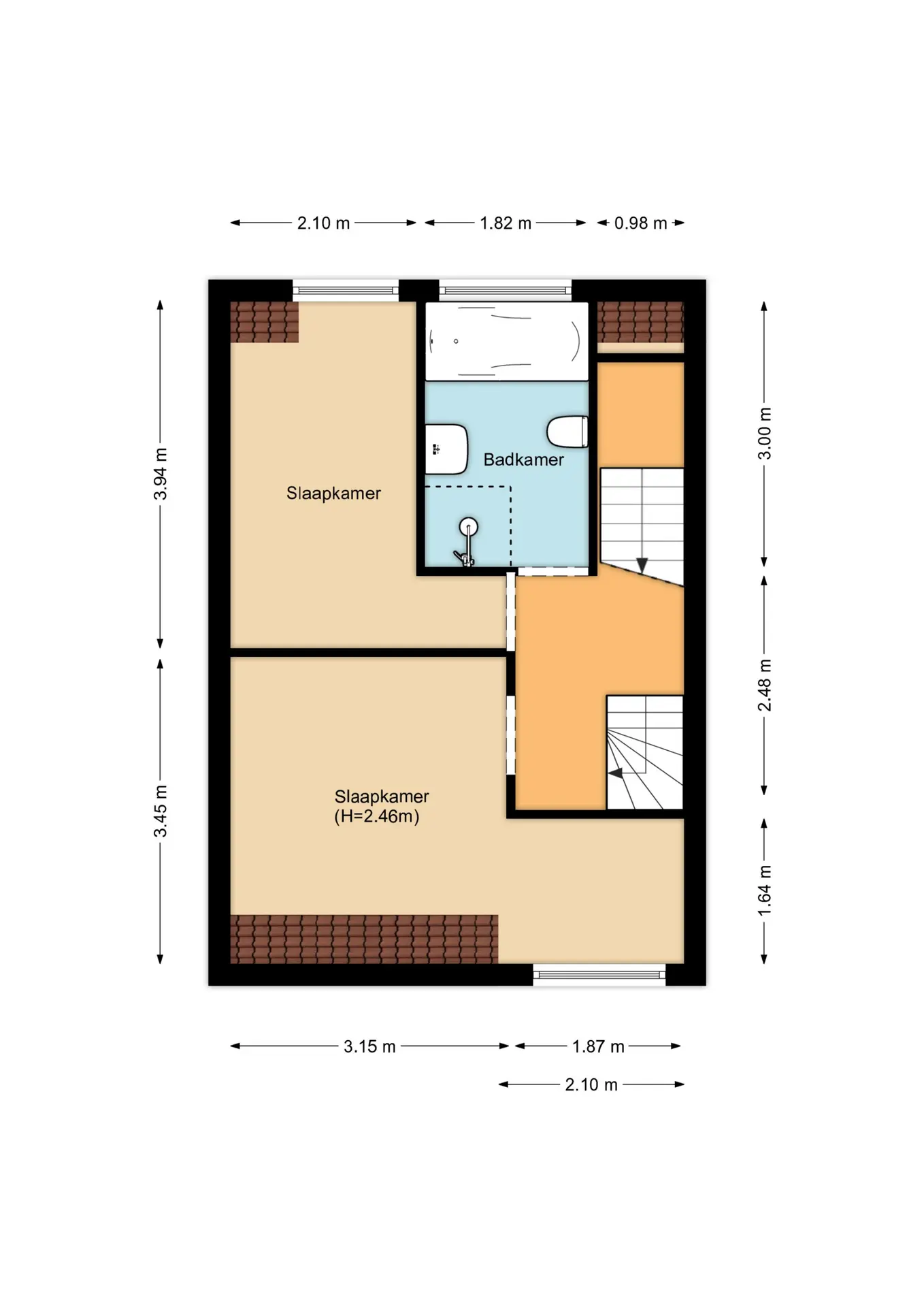 Vanaf de overloop zijn twee ruime slaapkamers en de badkamer bereikbaar. De slaapkamer aan de achterzijde is riant te noemen. De badkamer is ruim en voorzien van alle comfort.