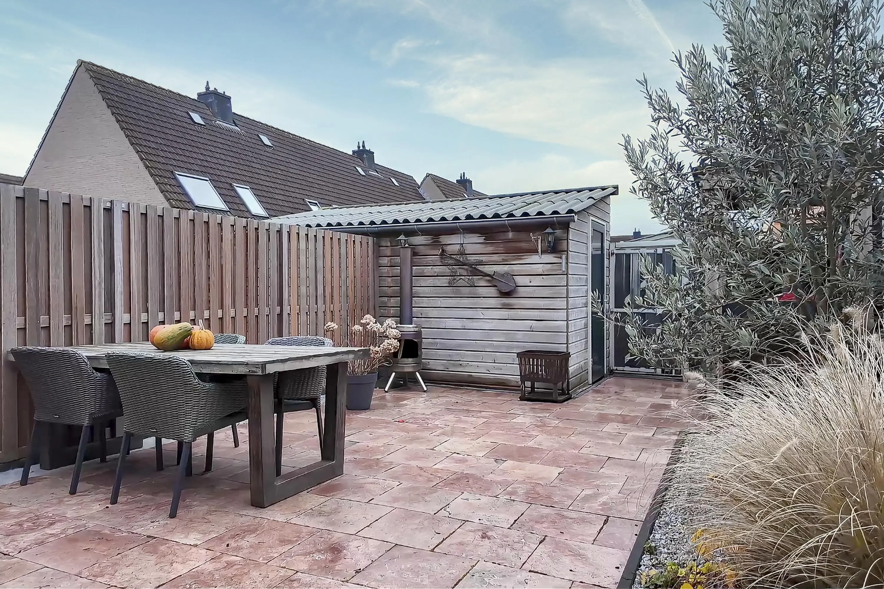 De keurig onderhouden achtertuin ligt gunstig op het zuidoosten waardoor u van veel zon geniet. Daarnaast beschikt de tuin over een praktische berging en een achterom.