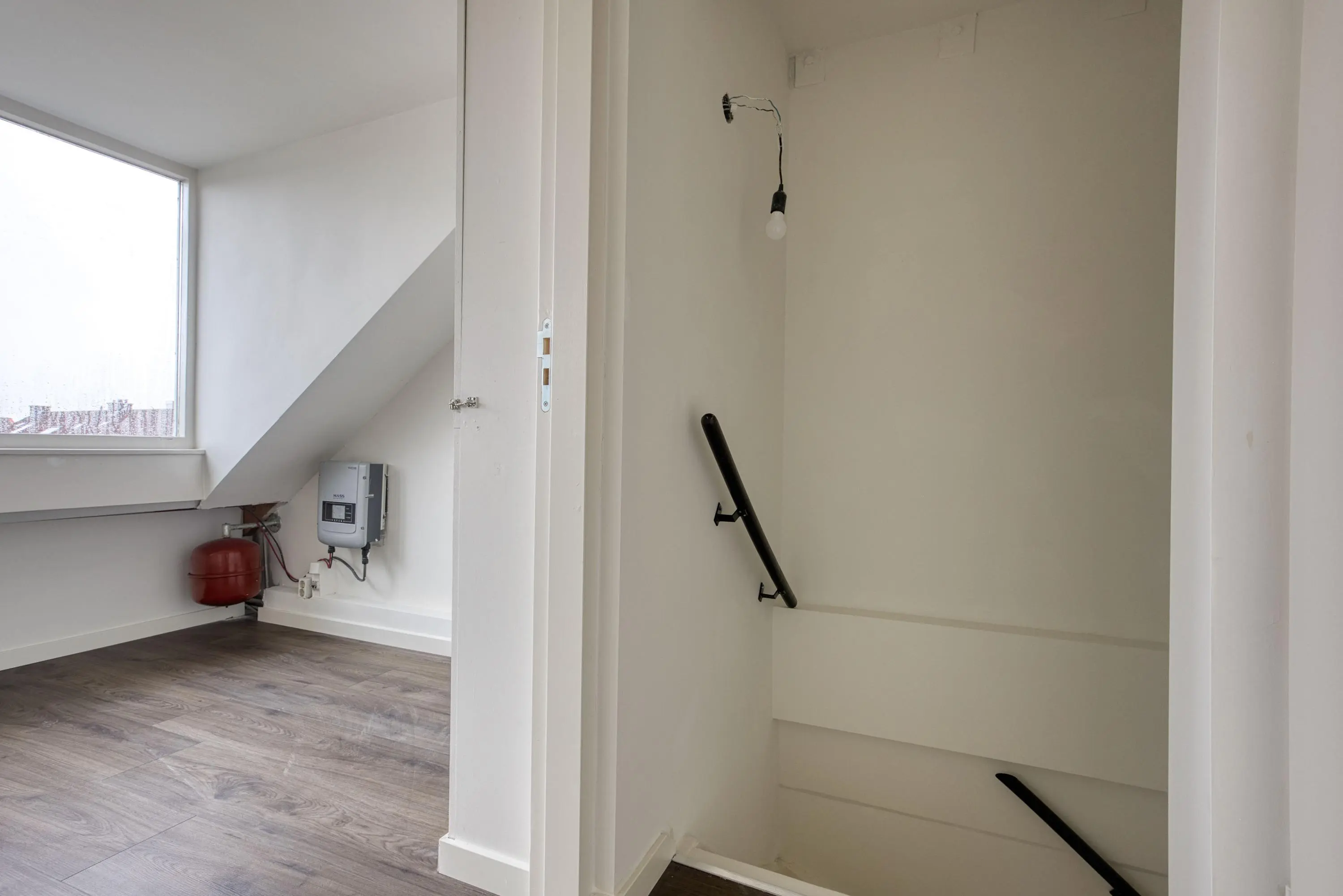 Op de eerste verdieping bevinden zich twee ruime slaapkamers (met mogelijkheid tot drie), een compleet vernieuwde badkamer in moderne grijs-witte tinten en een vaste trap naar boven. Dankzij de recht opgetrokken gevels is deze verdieping heerlijk ruim.
