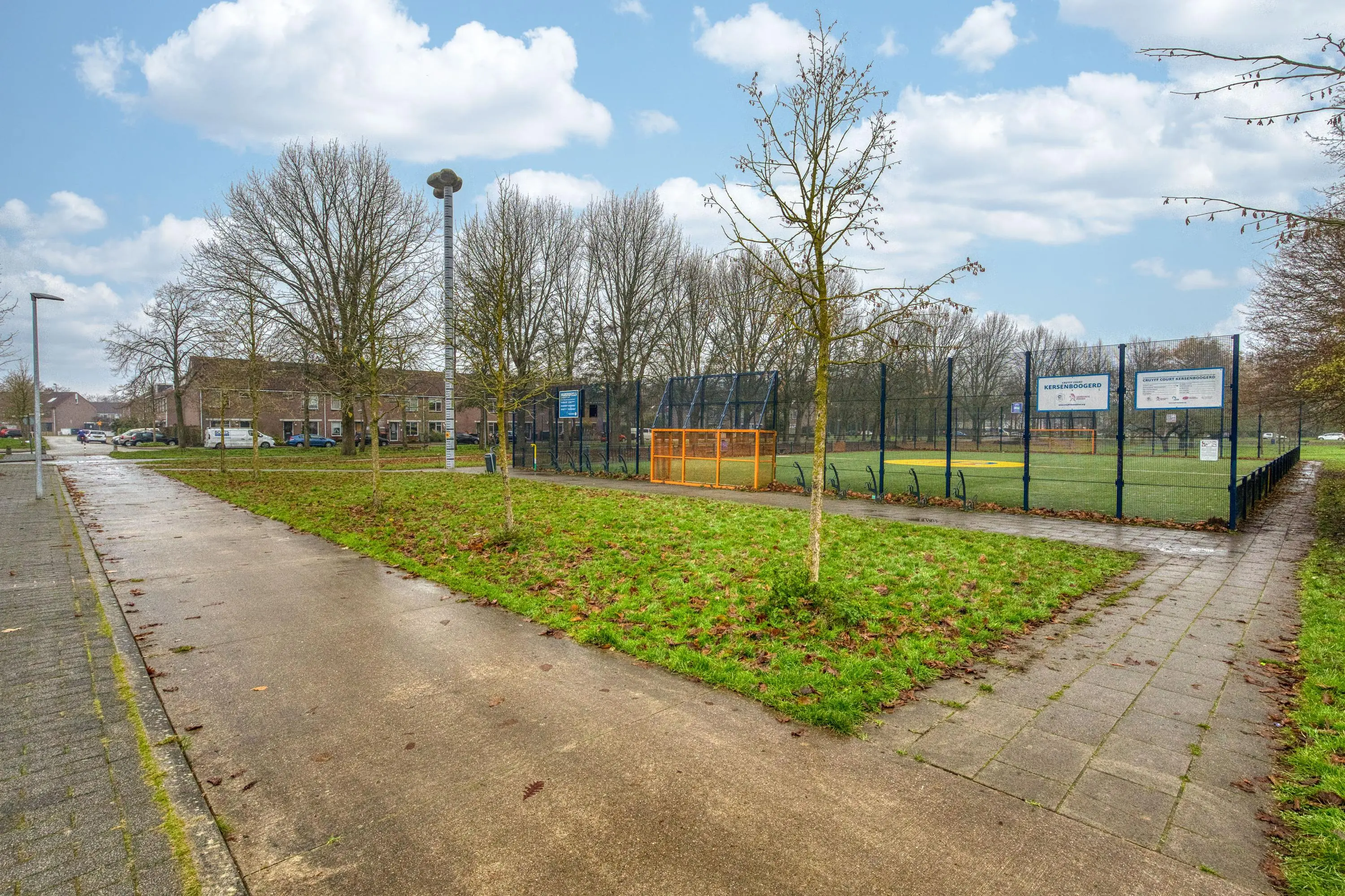 De achtertuin is speels aangelegd, onderhoudsarm en voorzien van een praktische berging en achterom. Alle ramen met zichtbare aantekening worden vóór oplevering nog vervangen, zodat ook dit volledig netjes en verzorgd wordt opgeleverd.