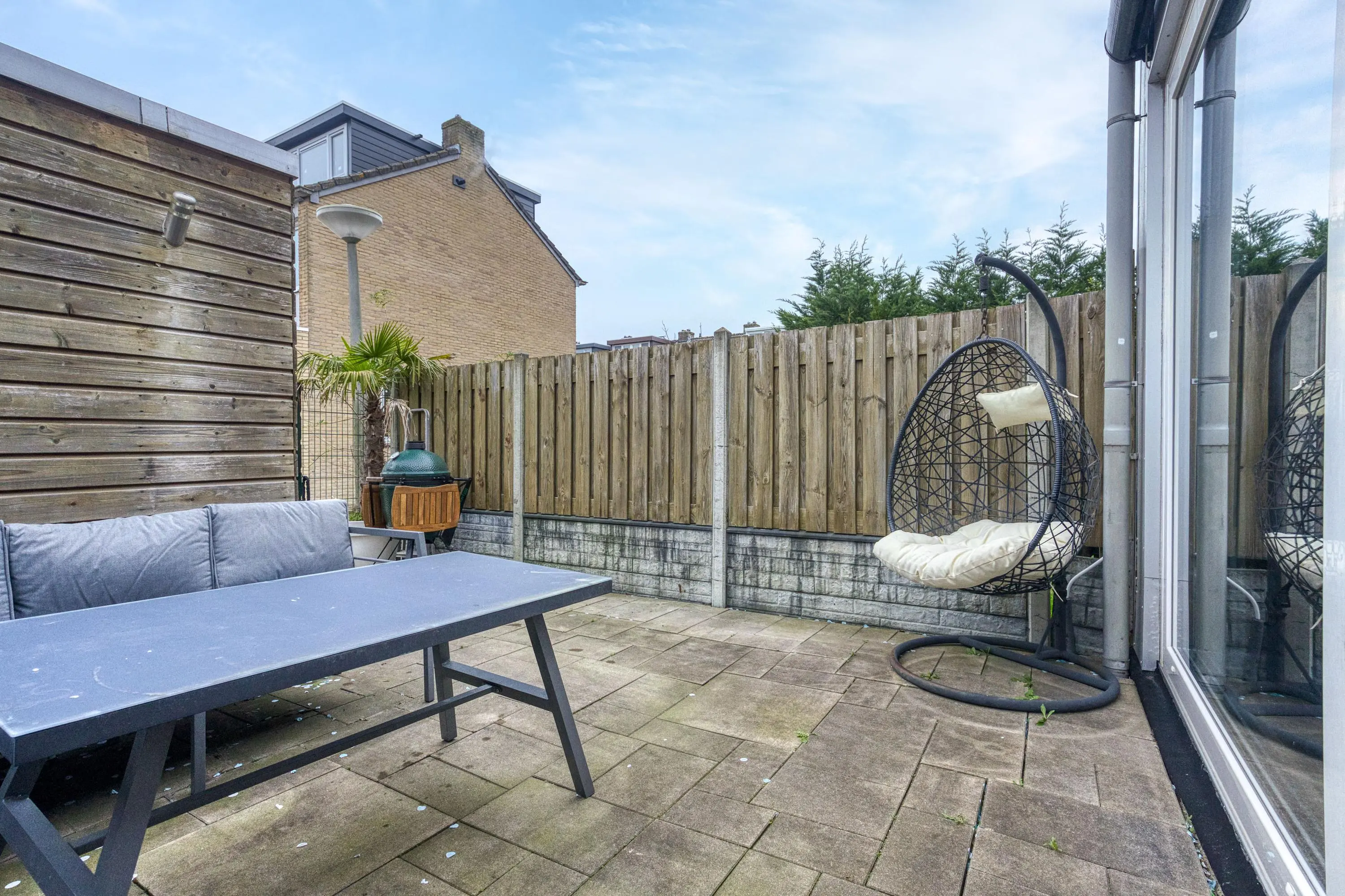 De zonnige achtertuin ligt gunstig op het westen, waardoor je hier tot in de avond van de zon kunt genieten. De tuin beschikt over een achterom en een houten berging, ideaal voor fietsen en extra opslag.