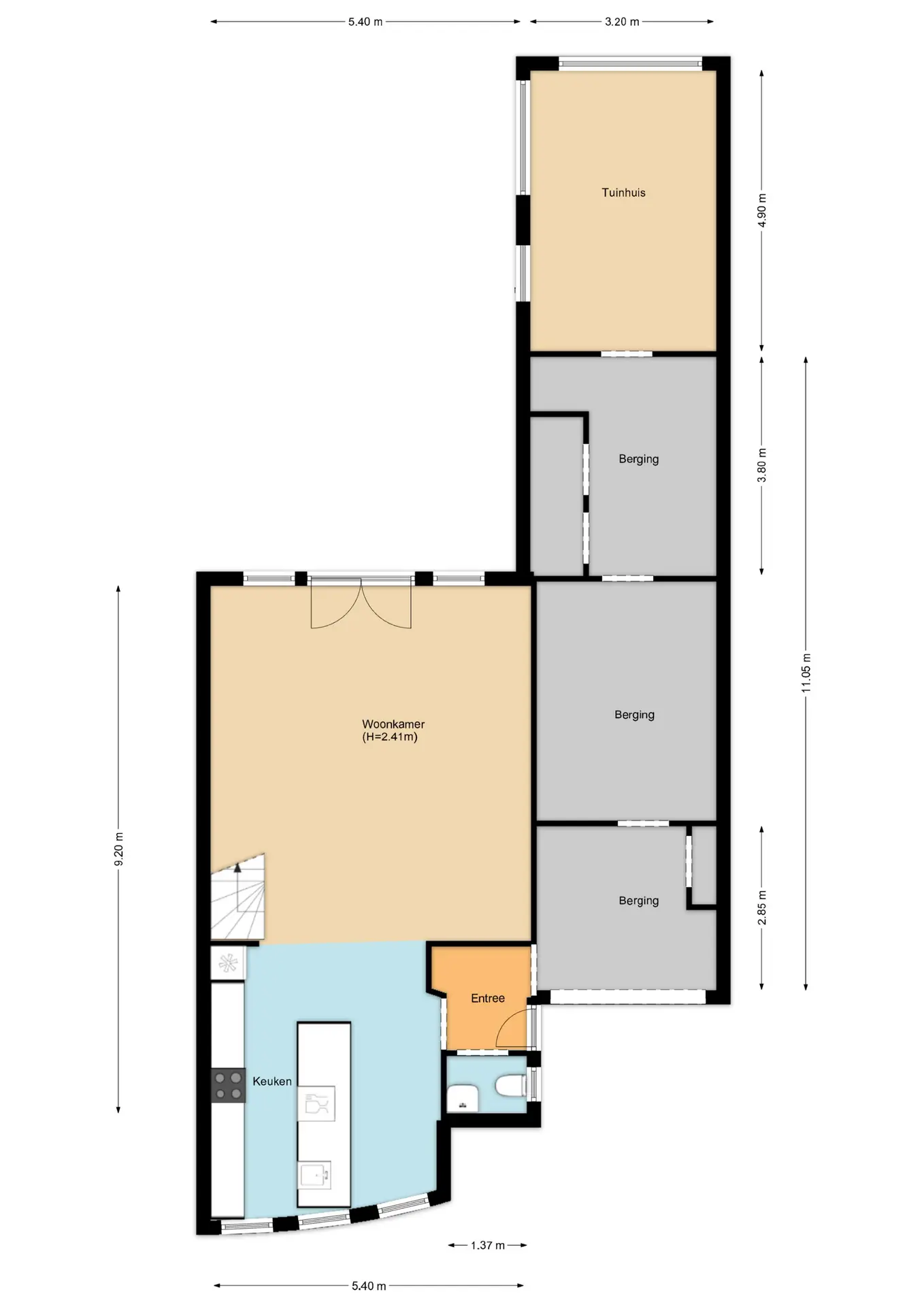 Via de entree kom je in de hal met meterkast en modern toilet. Vanuit hier heb je toegang tot de inpandige (verlengde) garage, die doorloopt naar de sfeervolle, afsluitbare veranda – een heerlijke plek waar je al vroeg in het voorjaar en tot laat in het najaar kunt genieten met familie en vrienden.
