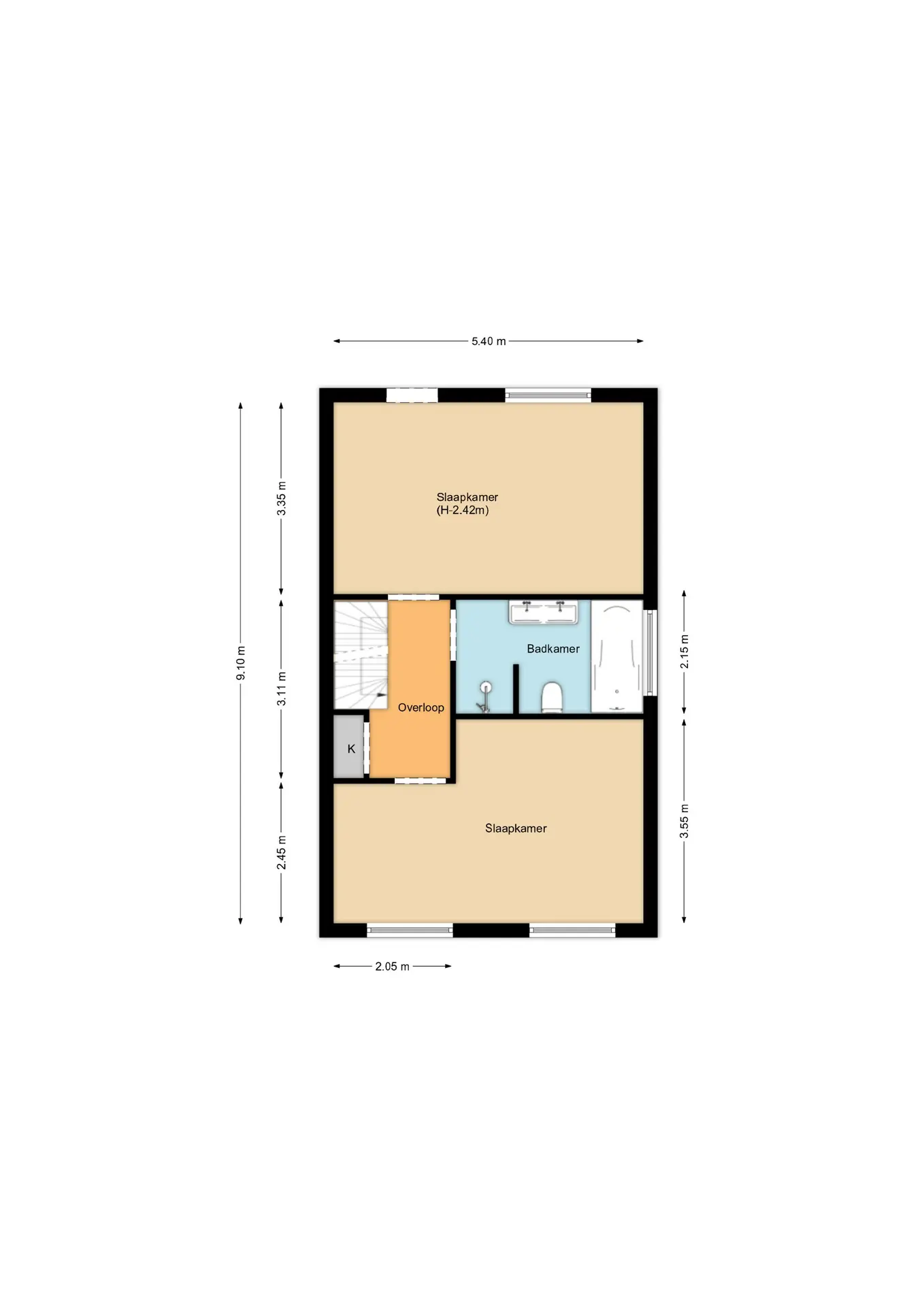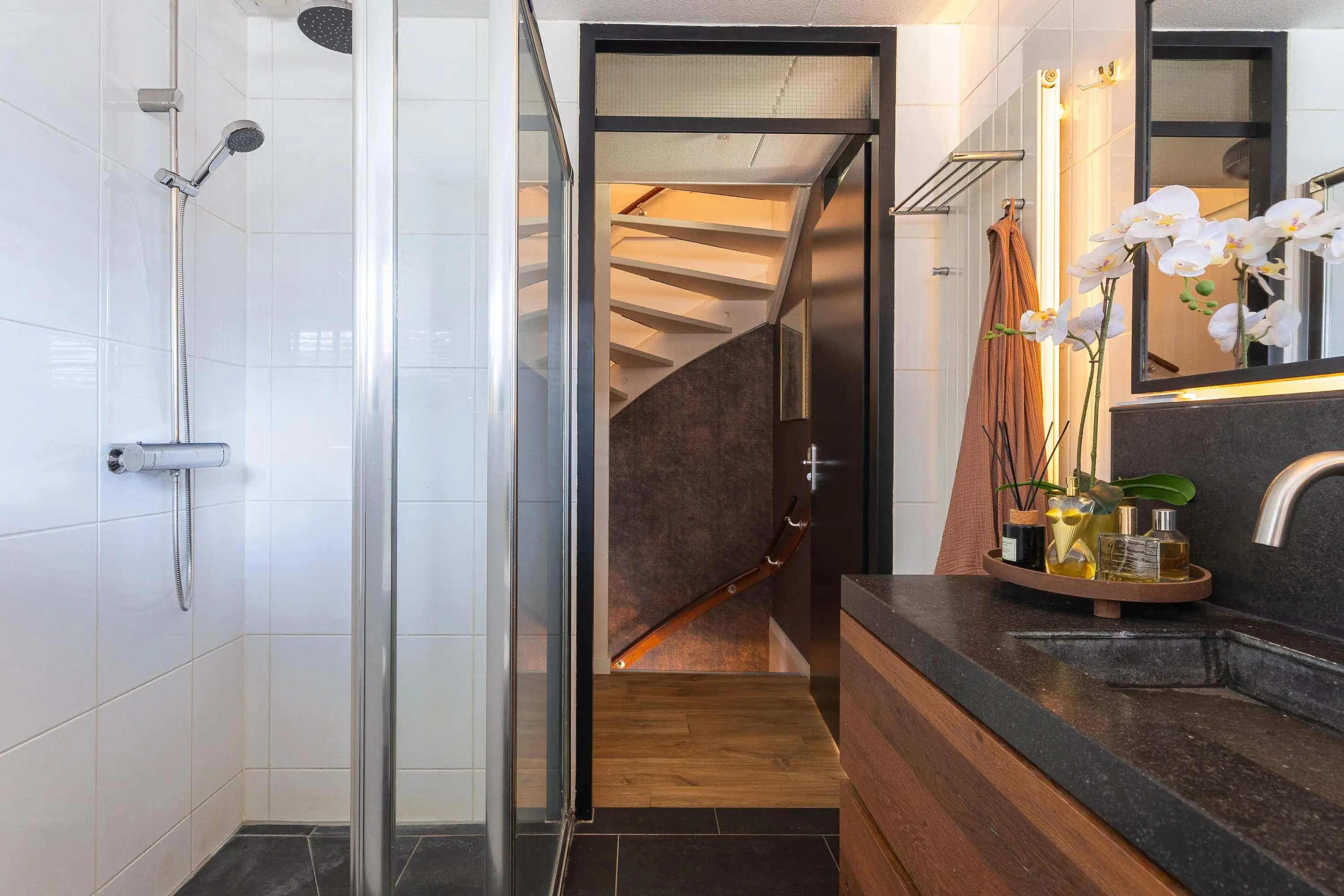 Op de eerste verdieping bevinden zich twee ruime en keurig afgewerkte slaapkamers. De luxe badkamer is voorzien van een inloopdouche, ligbad, dubbele wastafel met meubel en biedt alle comfort voor ontspanning.