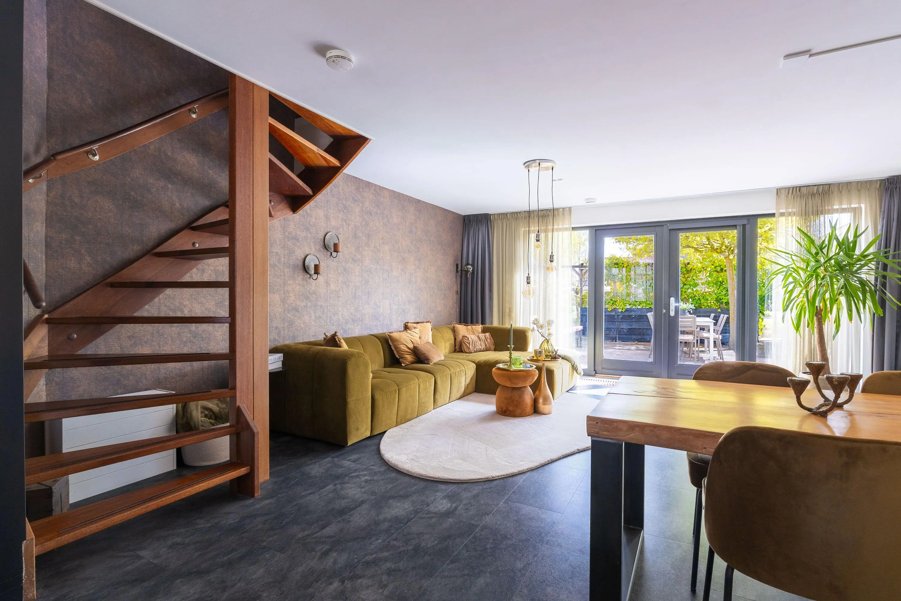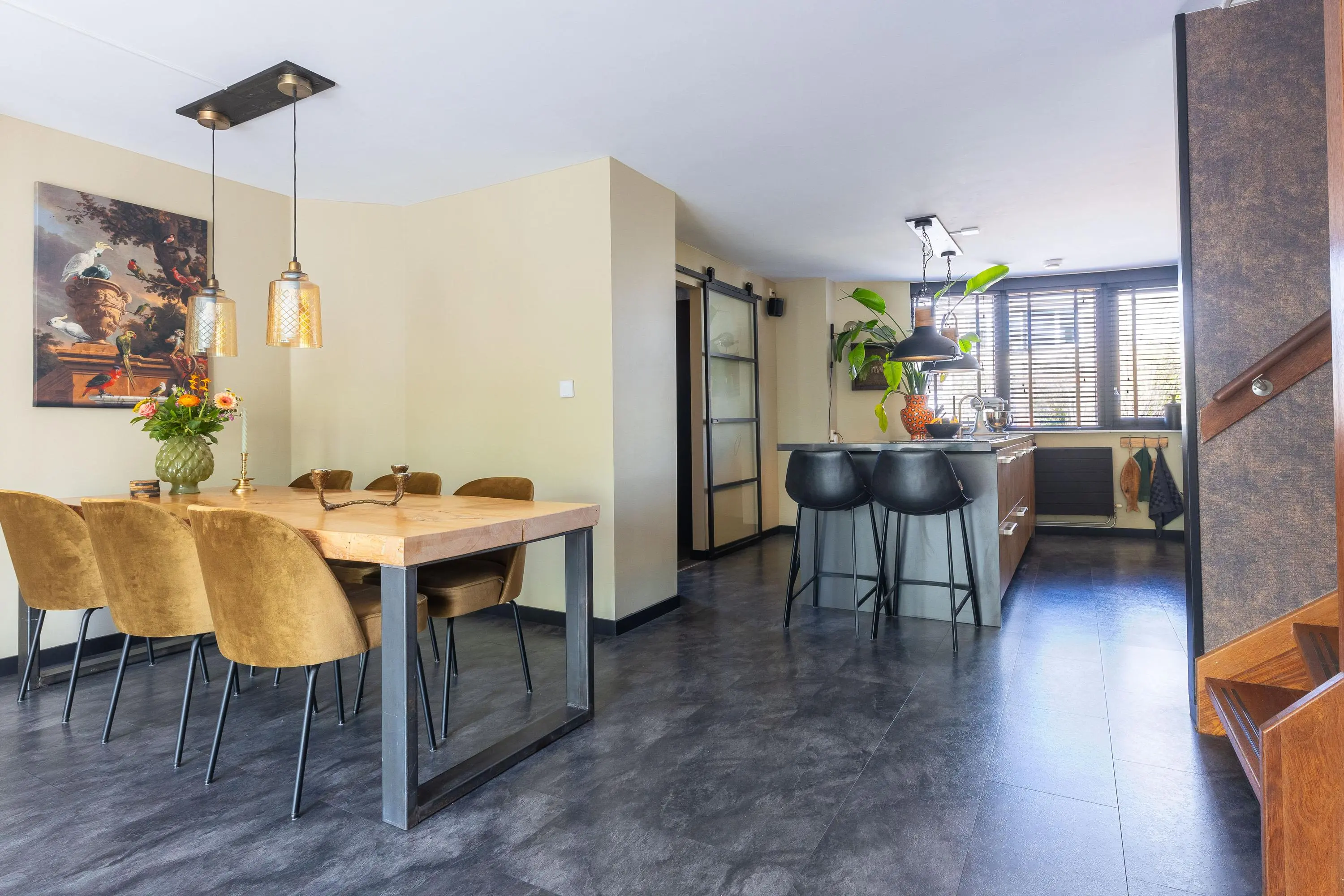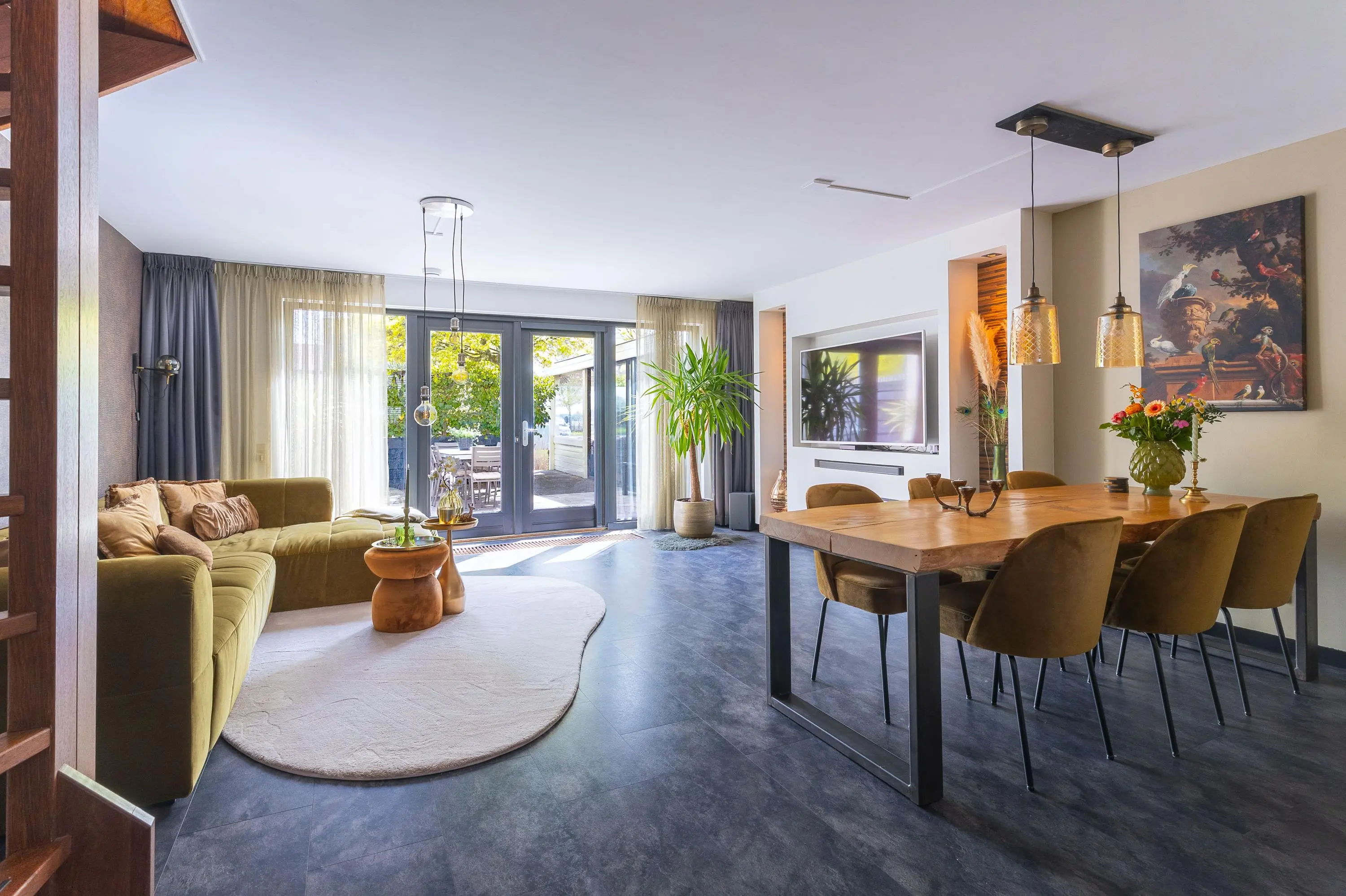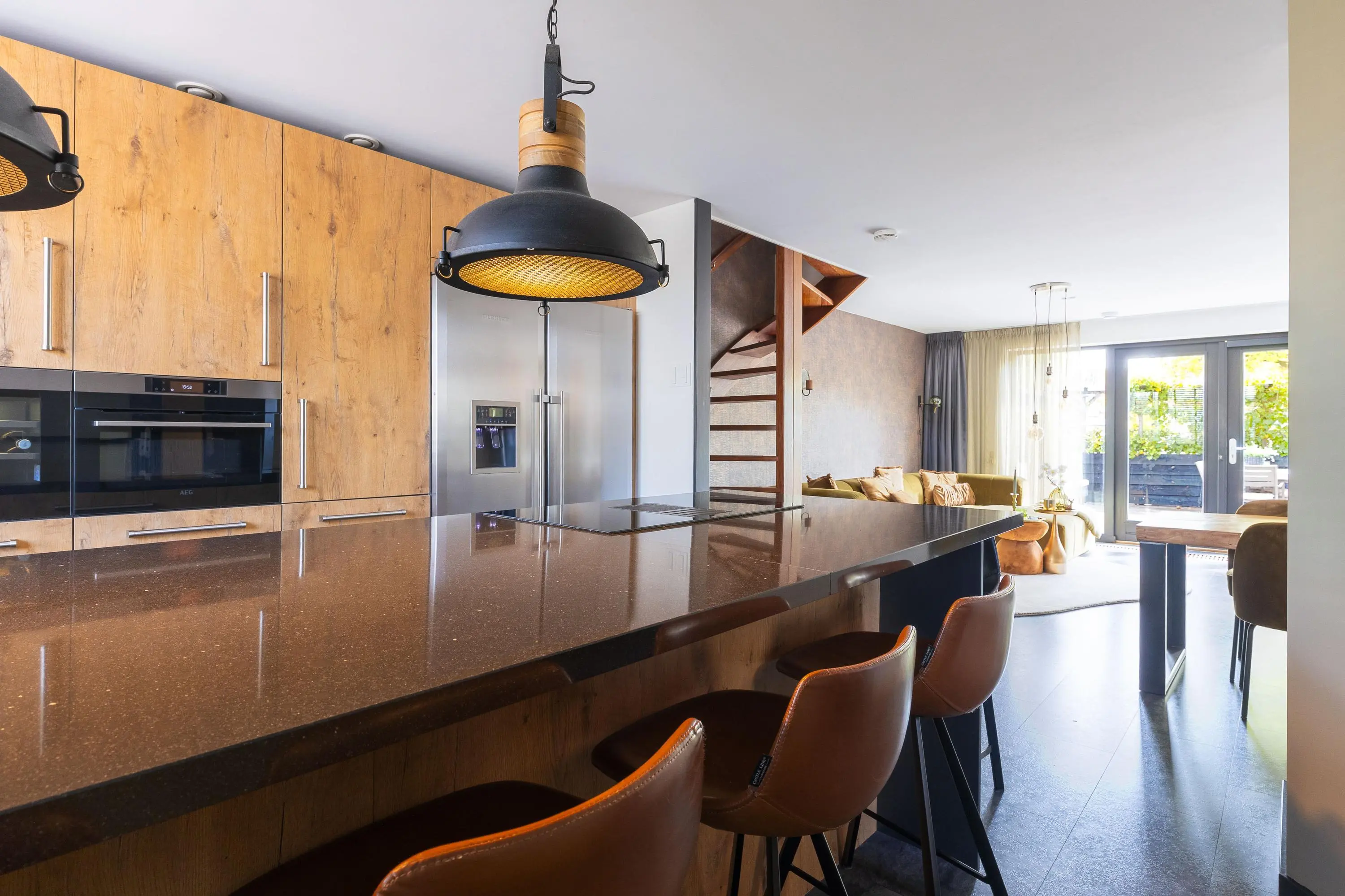De woonkamer is een echte eyecatcher, met een elektrische haard en cinewall. Dankzij de grote raampartijen en de openslaande deuren naar de zonnige tuin. De royale leefkeuken met kookeiland vormt het hart van de woning en is voorzien van diverse hoogwaardige inbouwapparatuur, waaronder een Amerikaanse koelkast en wijnkoeler. Een perfecte plek voor kookliefhebbers en gezellige avonden met vrienden – hier zijn al menig feestelijke momenten beleefd!