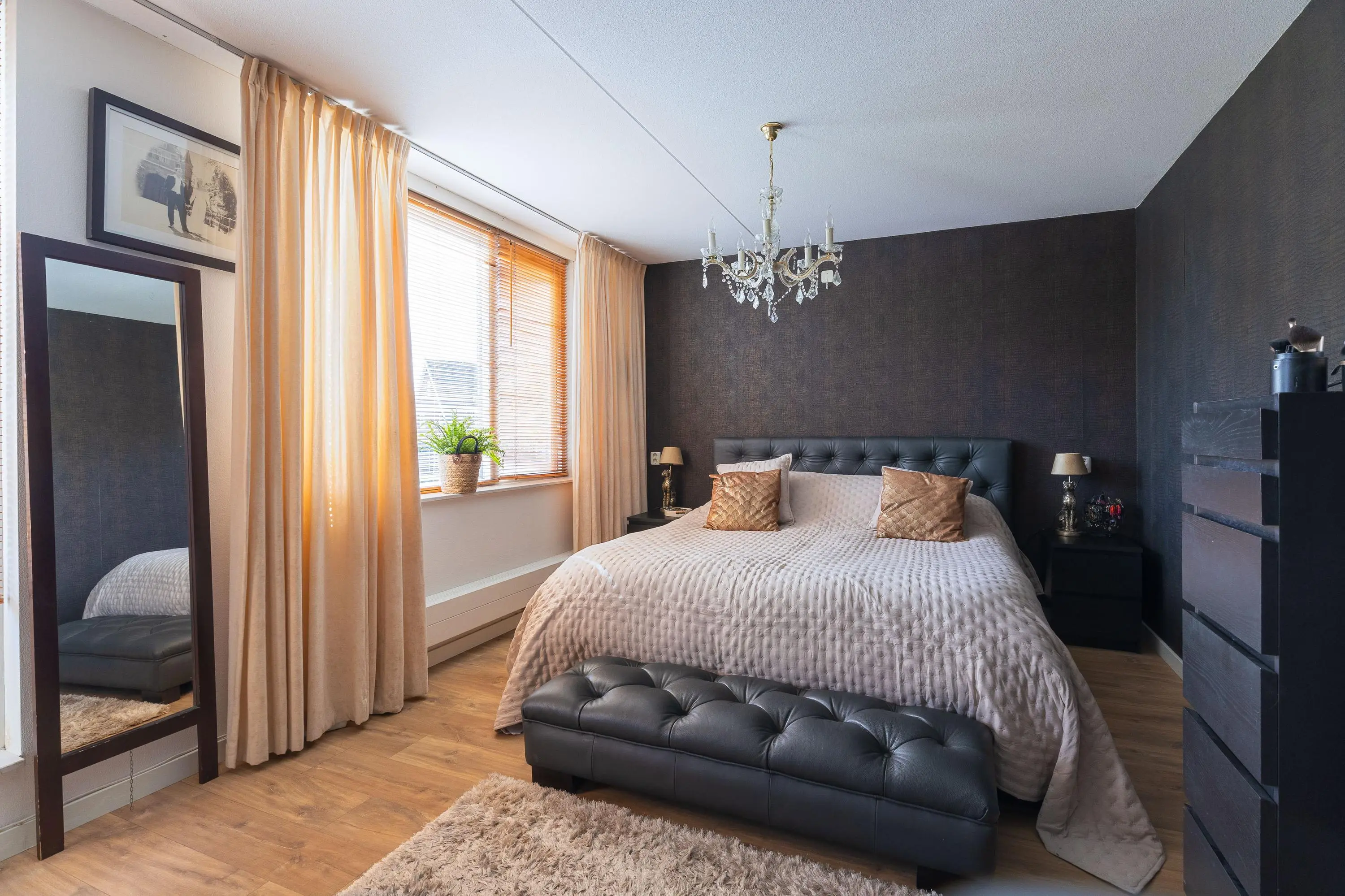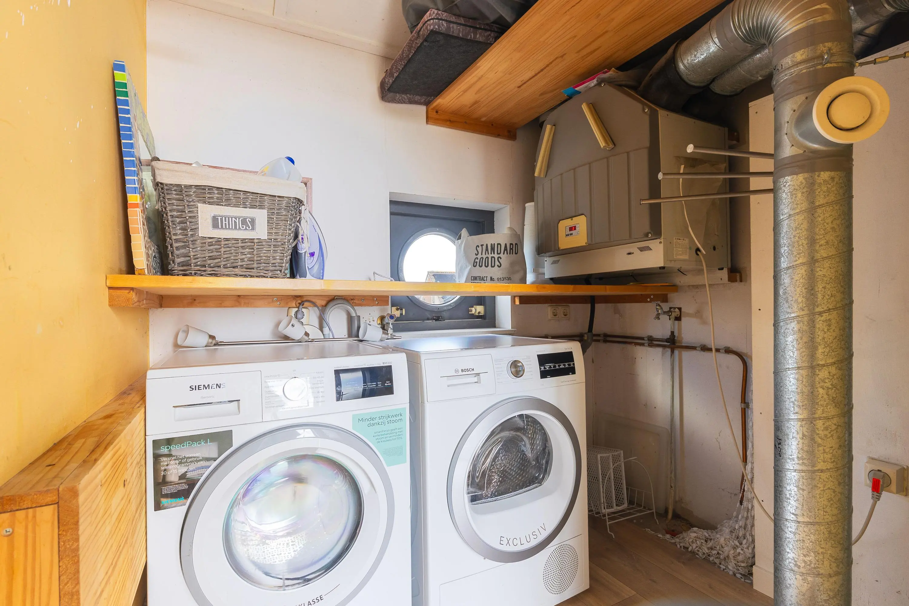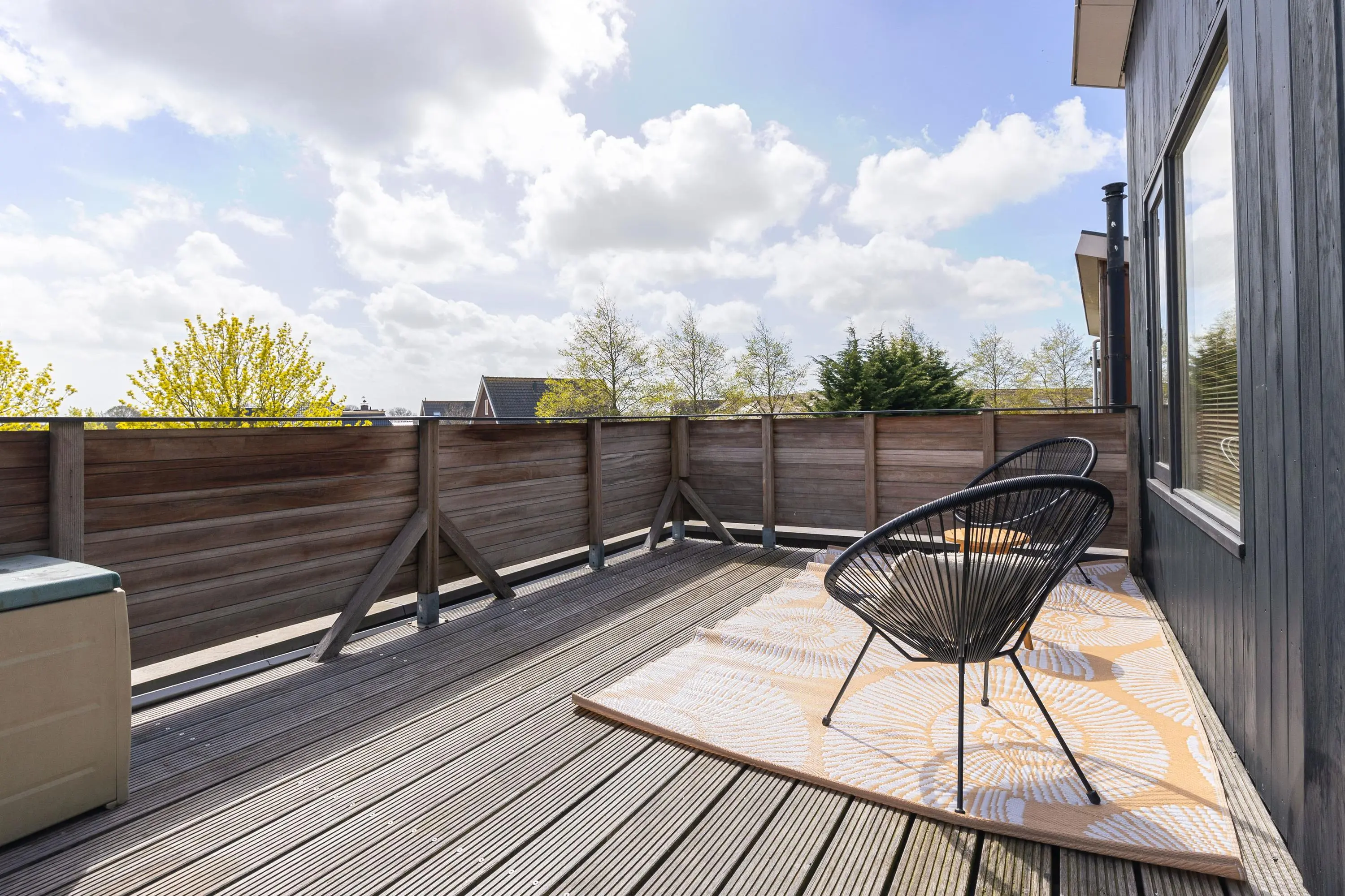 Via een vaste trap bereik je de zolderverdieping, die praktisch is ingedeeld in twee delen. Hier vind je de opstelling voor wasmachine en droger én een derde royale slaapkamer. Vanuit deze verdieping heb je toegang tot een groot balkon/dakterras op het zuiden.