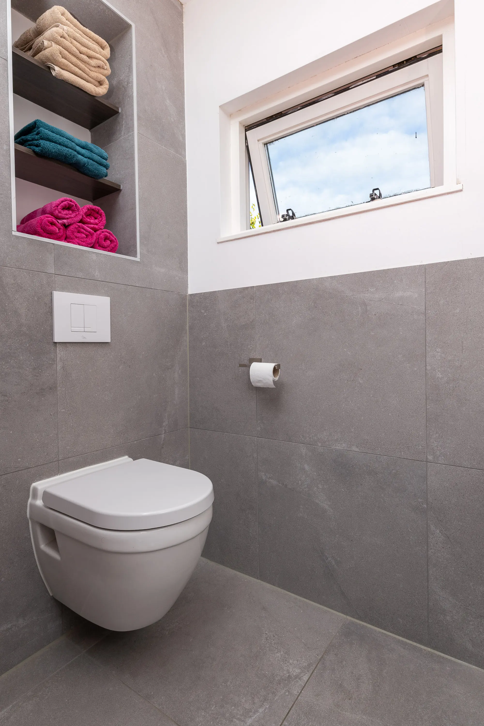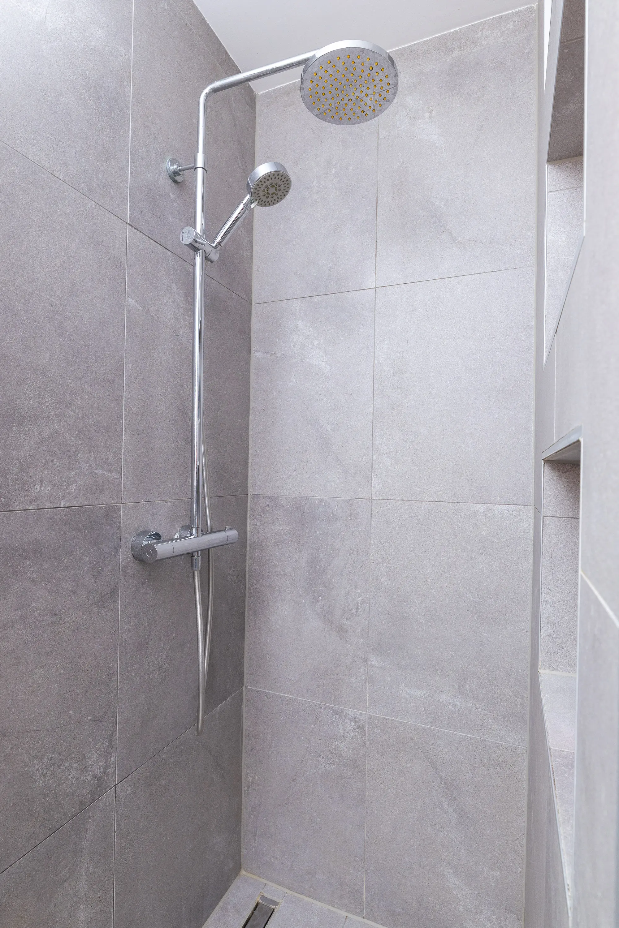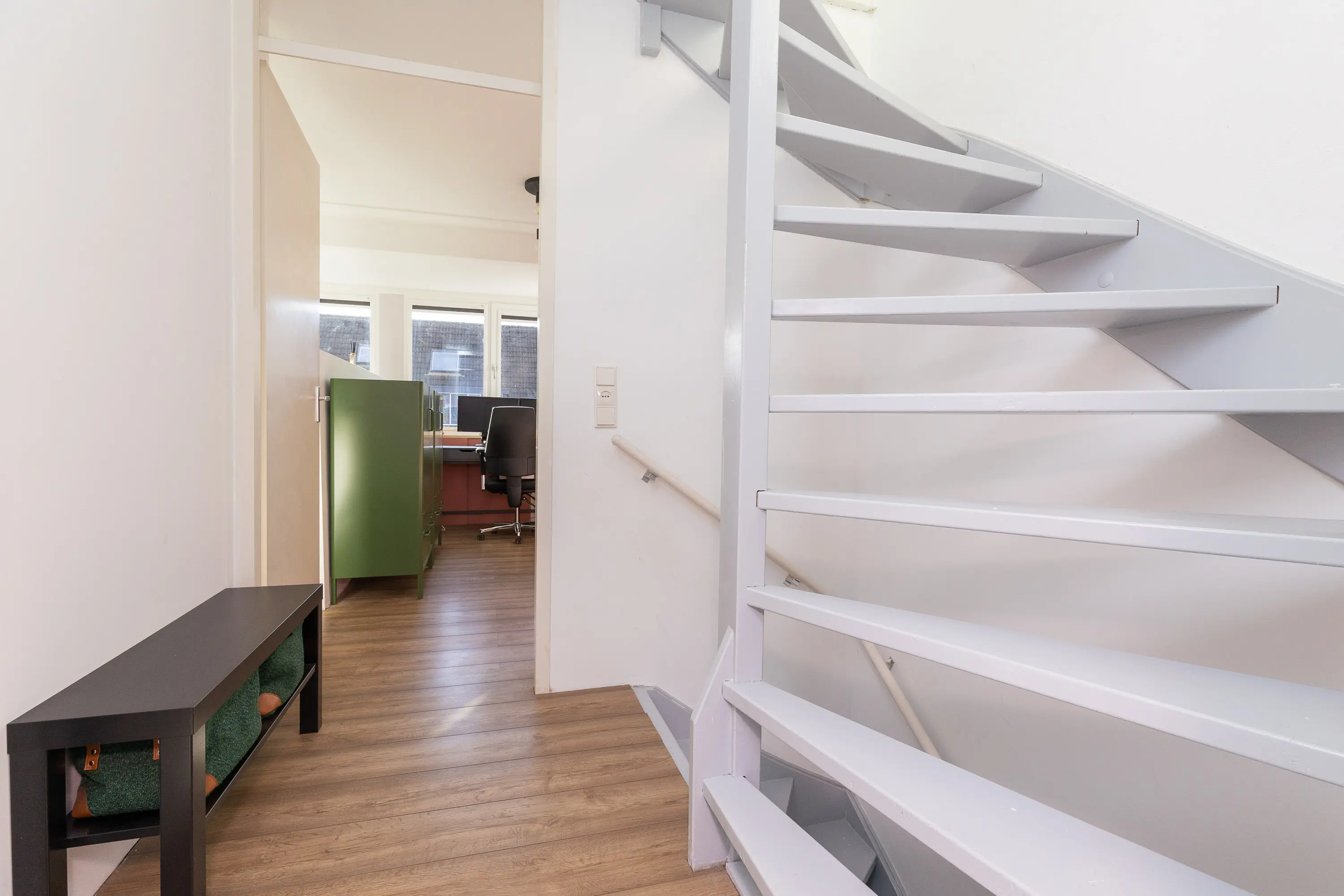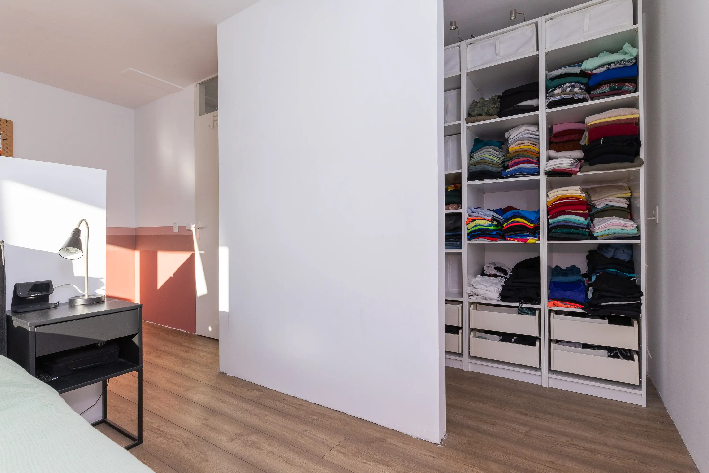 Op de eerste verdieping treft u een bijzonder ruime slaapkamer aan, ontstaan uit het samenvoegen van twee kamers. Dankzij de grote dakkapel (geplaatst in 2021) geniet u hier van veel licht en ruimte. De kamer is fraai ingedeeld met een halfhoge muur die zorgt voor een natuurlijke scheiding tussen het slaapgedeelte en de werkruimte. Daarnaast is er een ruime inloopkast aanwezig, de ideale opbergruimte voor uw garderobe. Indien gewenst is deze kamer eenvoudig weer op te splitsen in twee afzonderlijke slaapkamers. Aan de voorzijde treft u een tweede, nette slaapkamer. De gehele verdieping is voorzien van gestuukte wanden en keurige vloeren. De moderne badkamer maakt het plaatje compleet: een inloopdouche met rainshower en handdouche, een wastafelmeubel, toilet, een handige handdoeknis en zowel mechanische als natuurlijke ventilatie.
