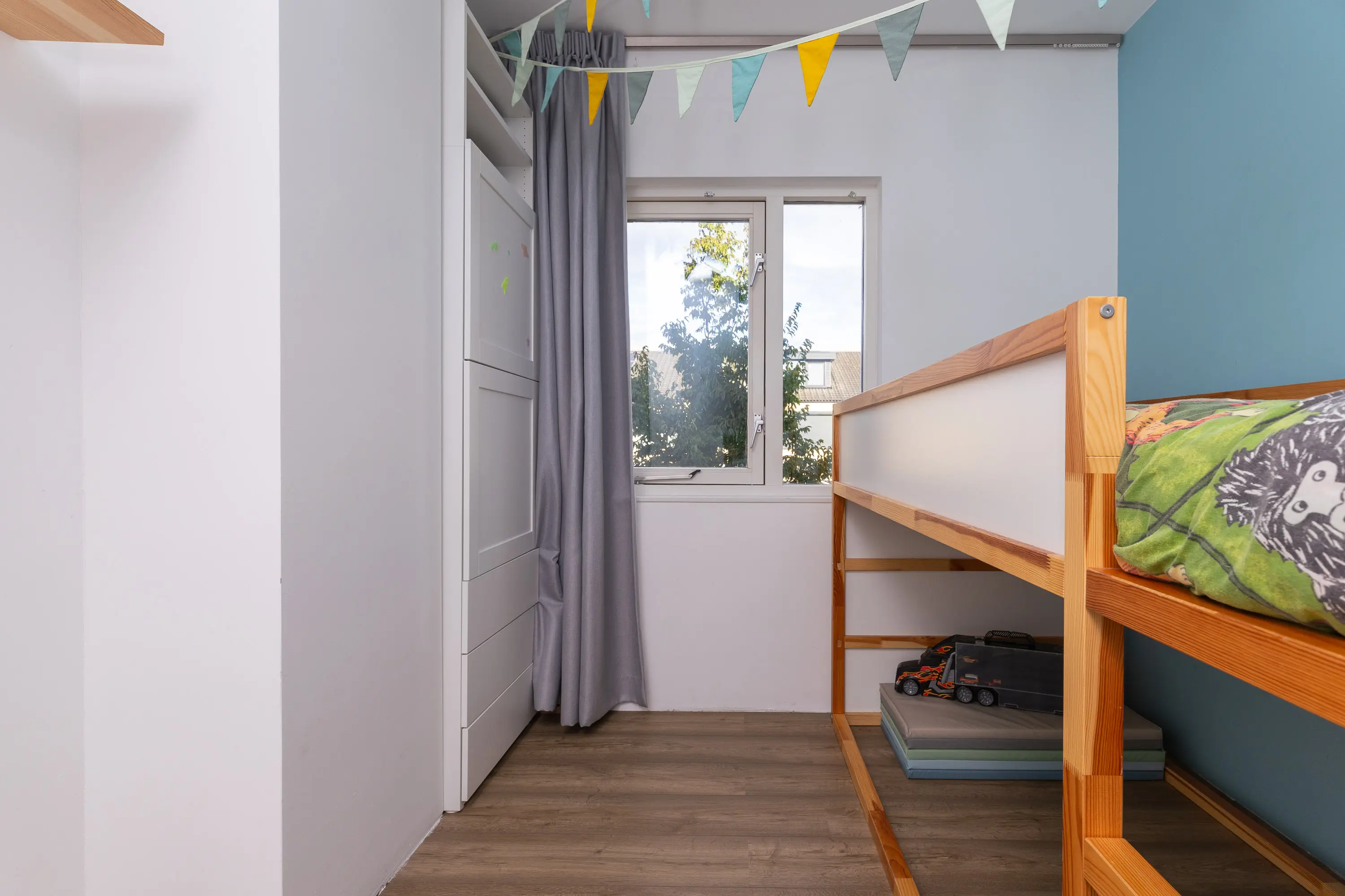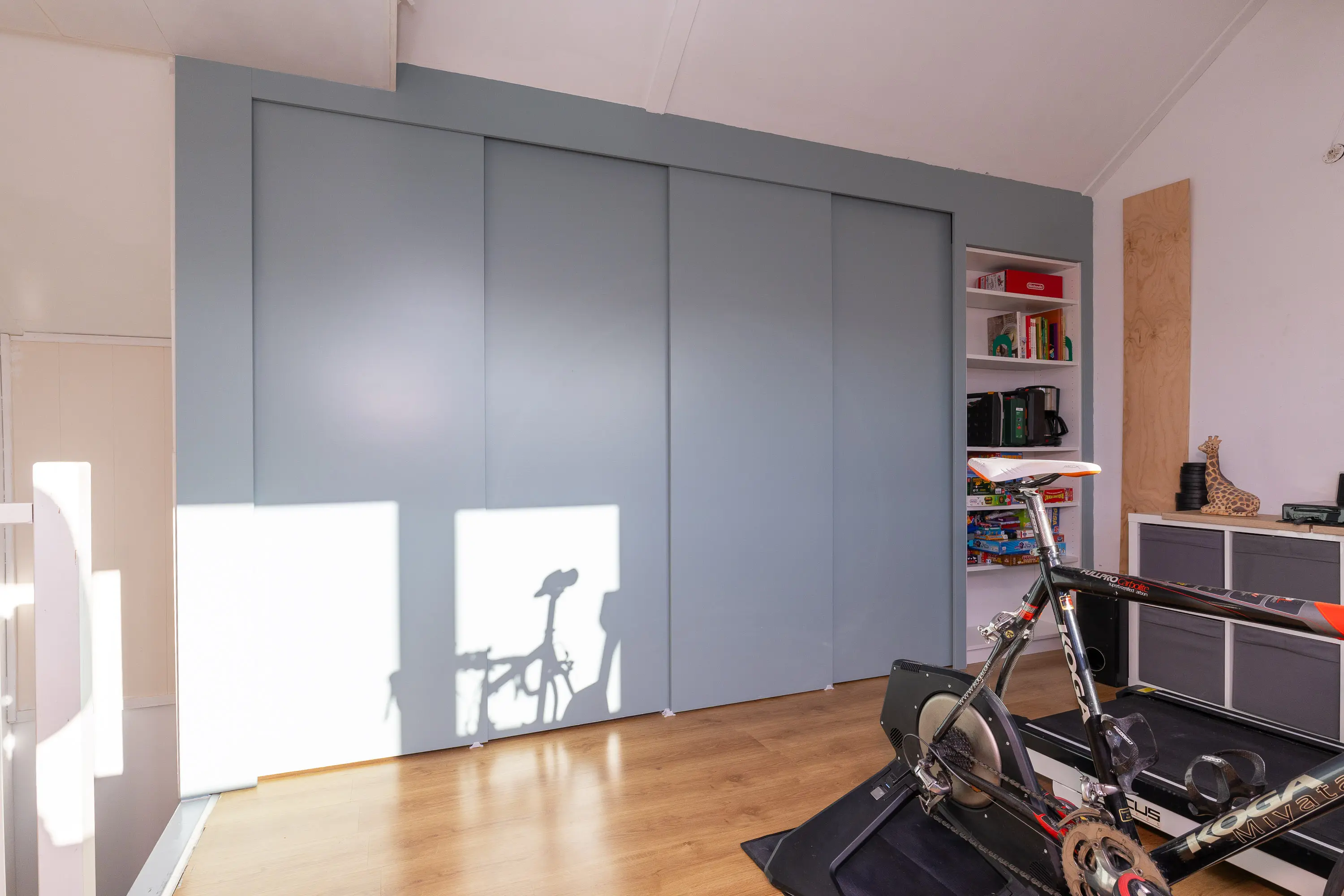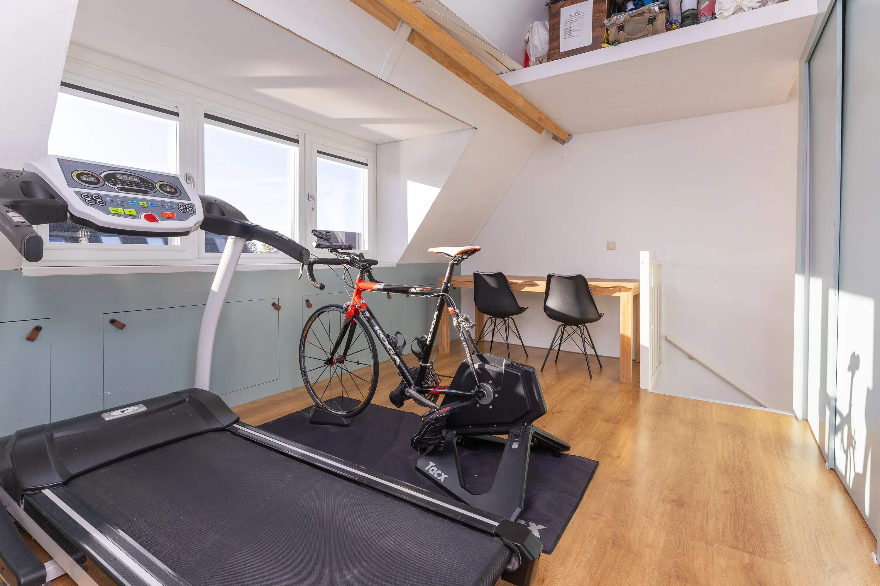 De tweede etage biedt volop mogelijkheden. Deze kamer, eveneens voorzien van een kunststof dakkapel (2021) op het zuidoosten, is perfect als extra slaapkamer, hobbyruimte thuiswerkplek óf sportkamer. De op maat gemaakte ombouwkasten verbergen op een slimme manier de installaties: de vernieuwde heteluchtverwarming (2022), de WTW-unit (2022), de cv-ketel (2022) en de mechanische ventilatie (2022). Ook de witgoedaansluitingen zijn hier keurig weggewerkt. In de nok bevindt zich extra bergruimte/vliering wat ideaal is voor seizoensspullen of andere opslag. Langs de wanden zijn bovendien extra kasten geplaatst, zodat er geen ruimte onbenut blijft.