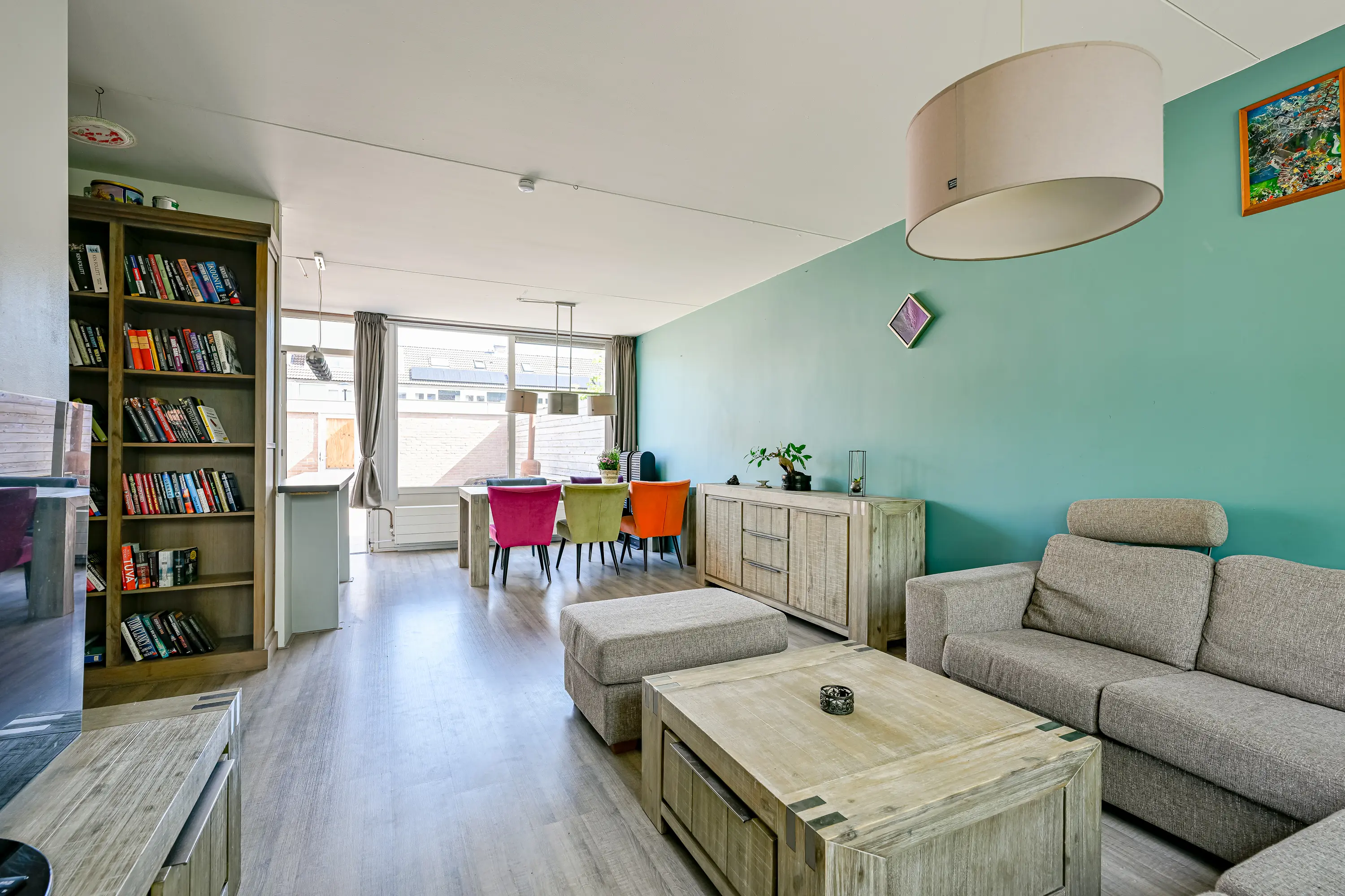Begane grond: De entree/hal geeft toegang tot de trap naar boven, meterkast, toilet en de deur naar de woonkamer. De woonkamer is ruim en door de open keuken is er een fijne verbinding ontstaan tussen de zithoek en de eetkamer. Aan de voorzijde is op dit moment het zitgedeelte geplaatst vanwaar u zicht heeft op de rustige straat en het openbaar groen wat kenmerkend is voor deze wijk. U heeft zelfs zicht op de waterpartij welke door de gehele wijk heenloopt. Aan de achterzijde vindt u de open keuken en de eethoek. Vanuit de eethoek heeft u zicht op achtertuin. De open keuken is voorzien van diverse inbouw apparatuur. U heeft onder andere de beschikking over een koel-vriescombinatie, Smeg gasfornuis, afzuigkap en een vaatwasser. Verder is er voldoende kastruimte om al uw keukengerei in op te bergen. De gehele benedenverdieping is voorzien van glad stucwerk en een keurige laminaatvloer.