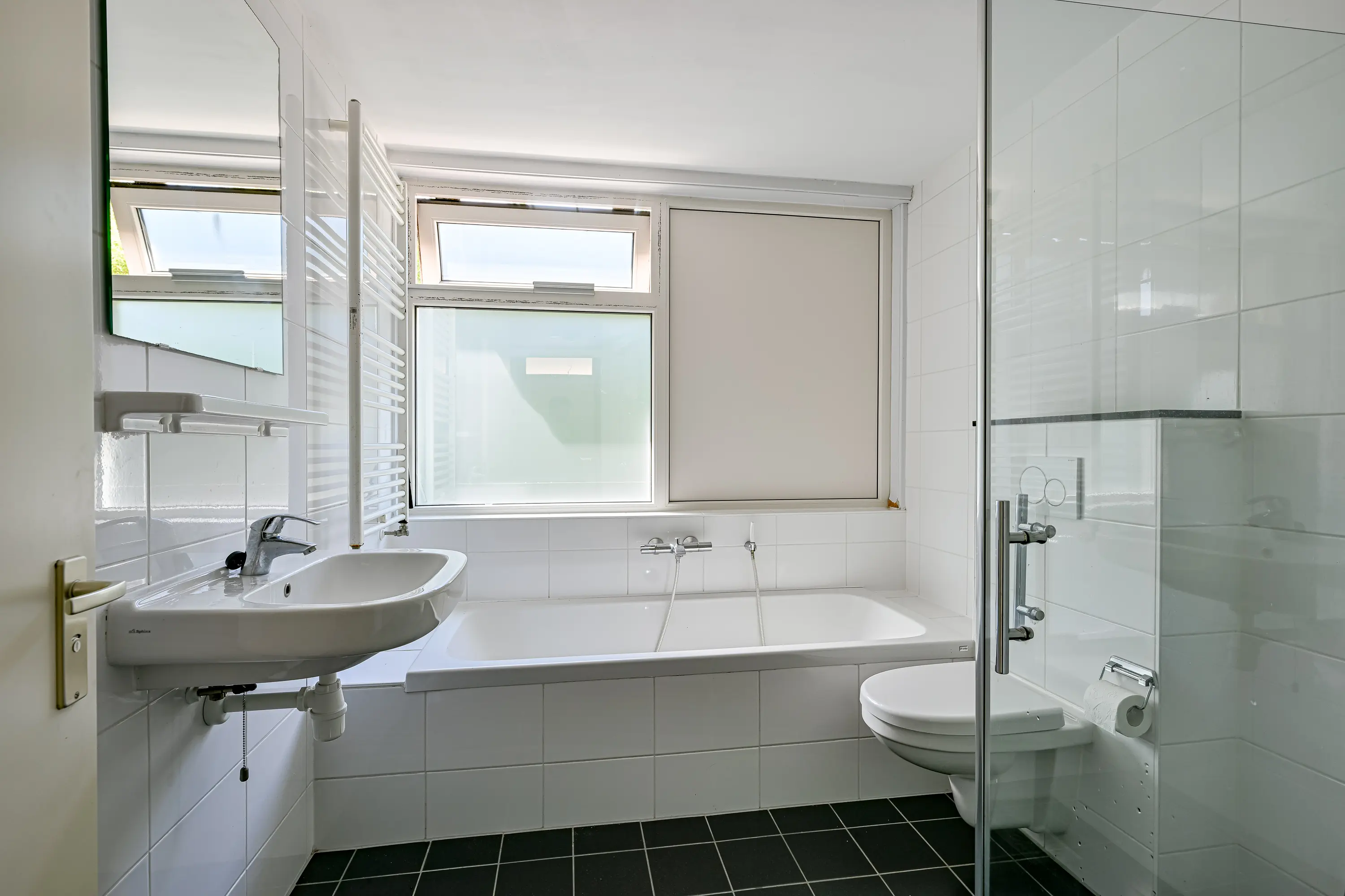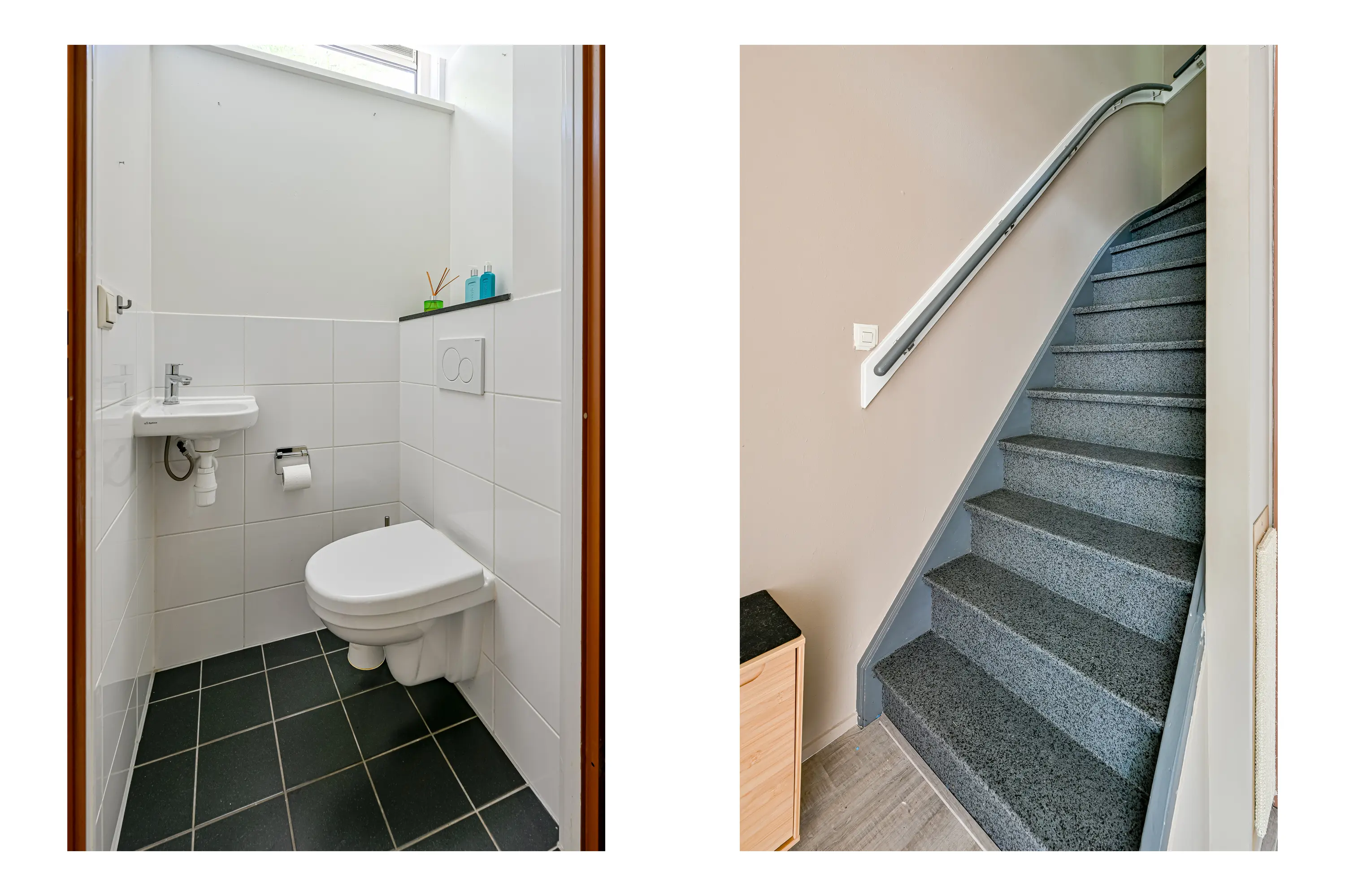 Eerste verdieping: Via de trap vanuit de hal bereikt u de 1e etage. Op de 1e verdieping vindt u een overloop en drie ruime slaapkamers. Tevens vindt u op deze verdieping de badkamer welke is uitgevoerd in een lichte kleurstelling. De badkamer is ruim en voorzien van een ligbad, wastafel, inloopdouche en het tweede toilet.