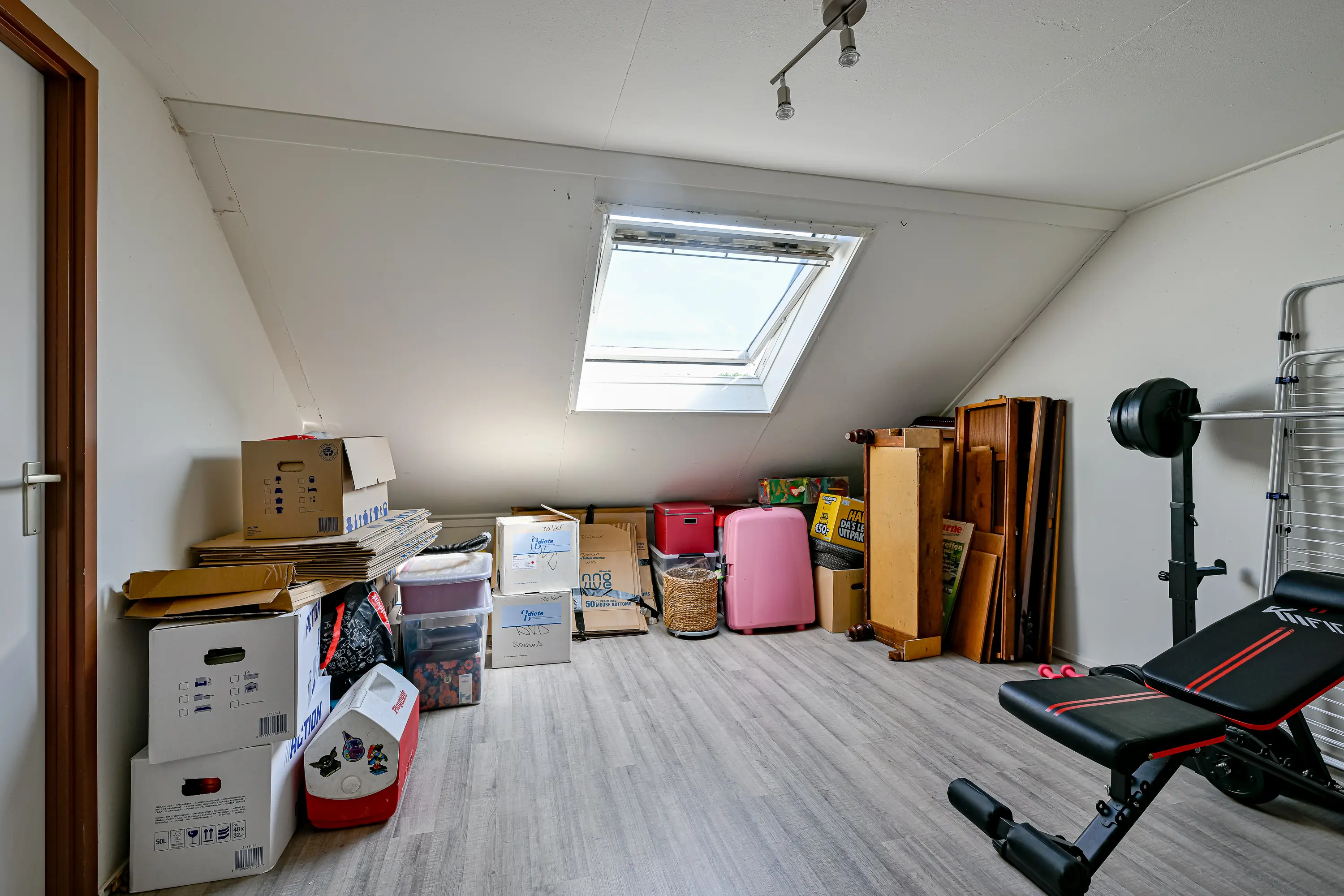 Tweede verdieping : Via de vaste trap bereikt u de tweede verdieping. Hier vindt u een voorzolder en de vierde slaapkamer. Op de voorzolder is de Cv-ketel geplaatst. Ook is daar ruimte voor een wasmachine en droger. De vierde slaapkamer is ruim en door het grote dakraam heerlijk licht.