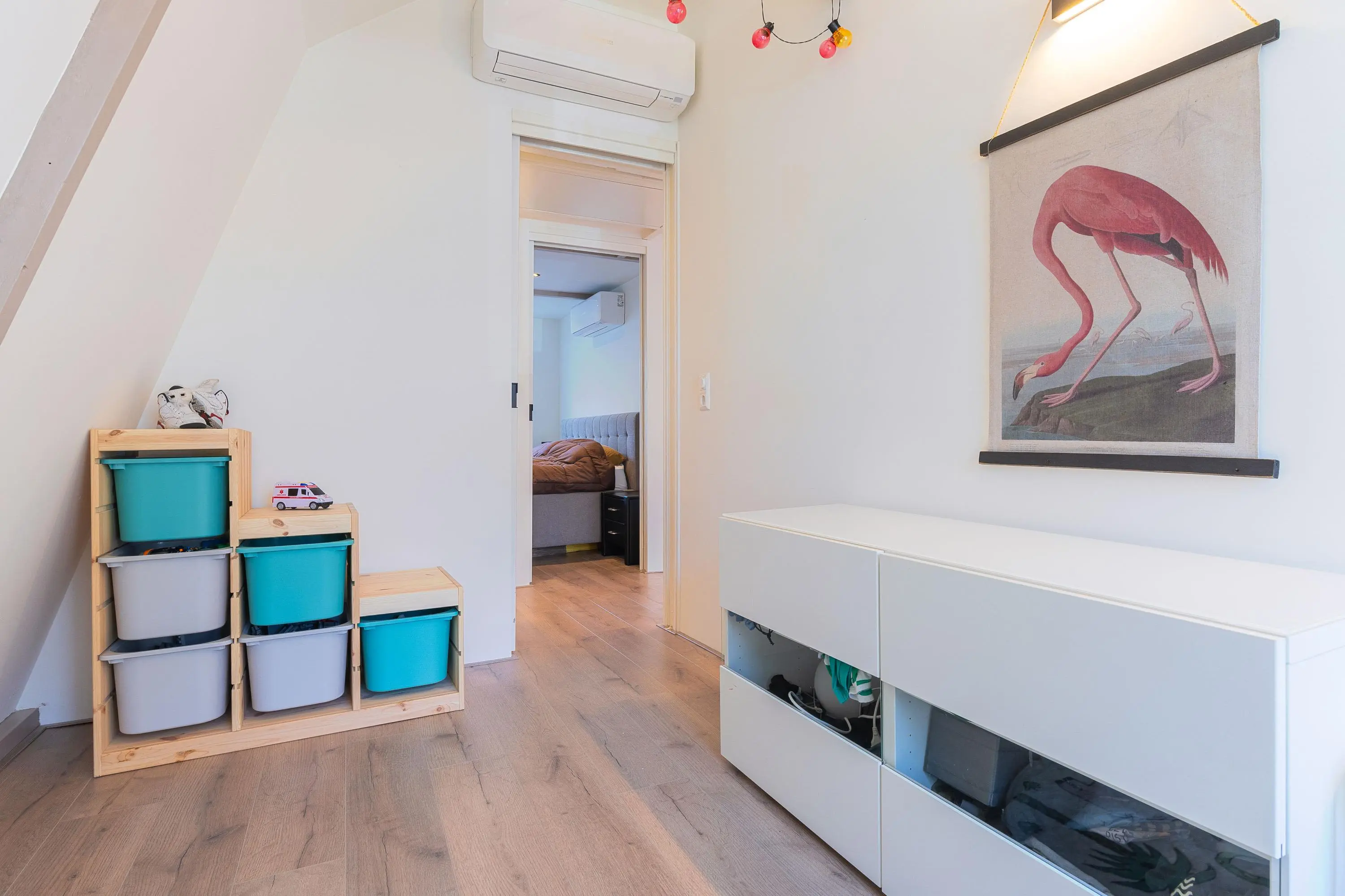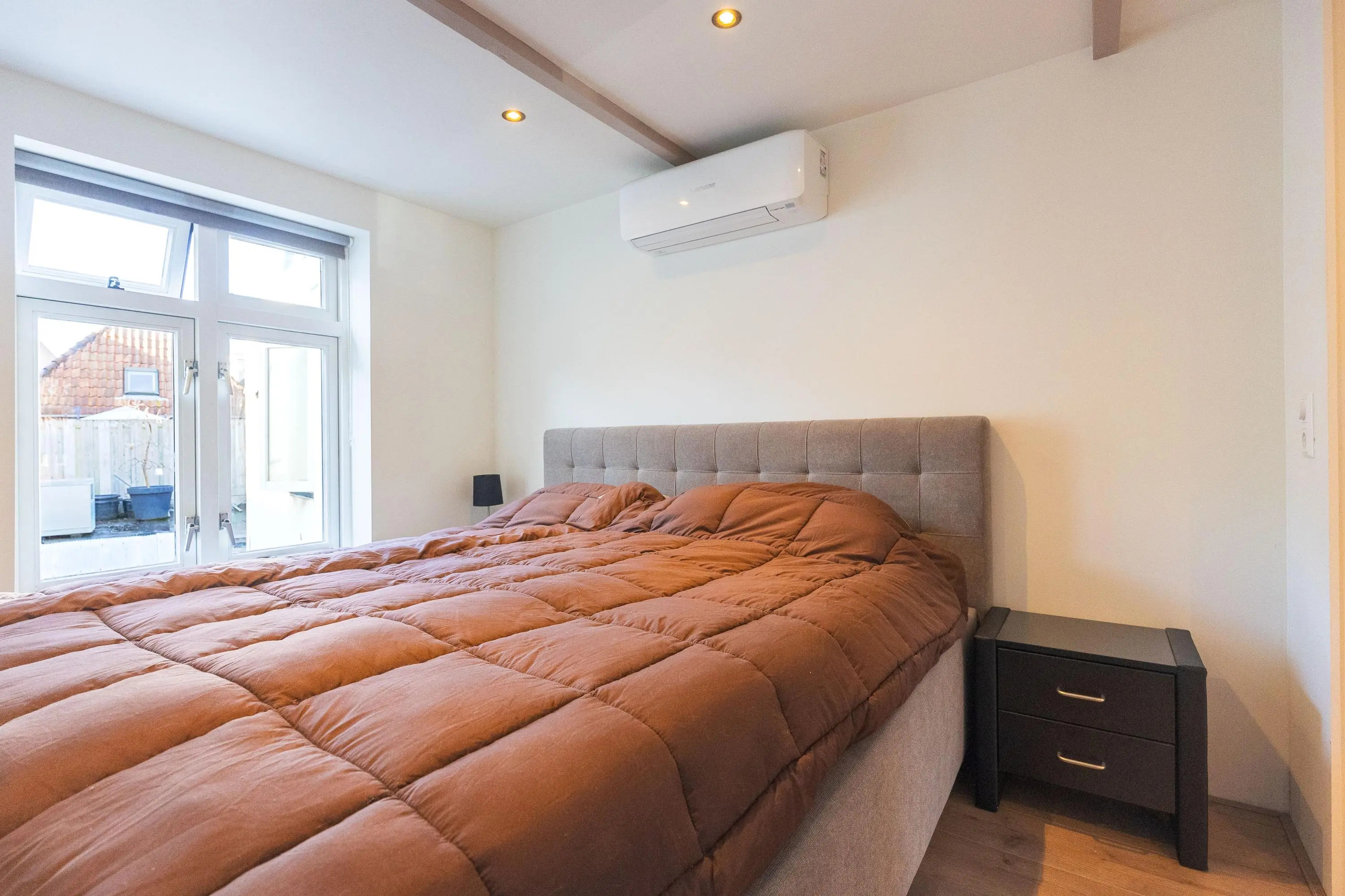 De eerste verdieping is comfortabel bereikbaar en biedt toegang tot drie slaapkamers, alle voorzien van airco. De twee voorslaapkamers hebben een speels karakter door hun indeling en lichtinval. De derde slaapkamer is eveneens een fijne ruimte en goed bruikbaar als slaap- of logeerkamer.