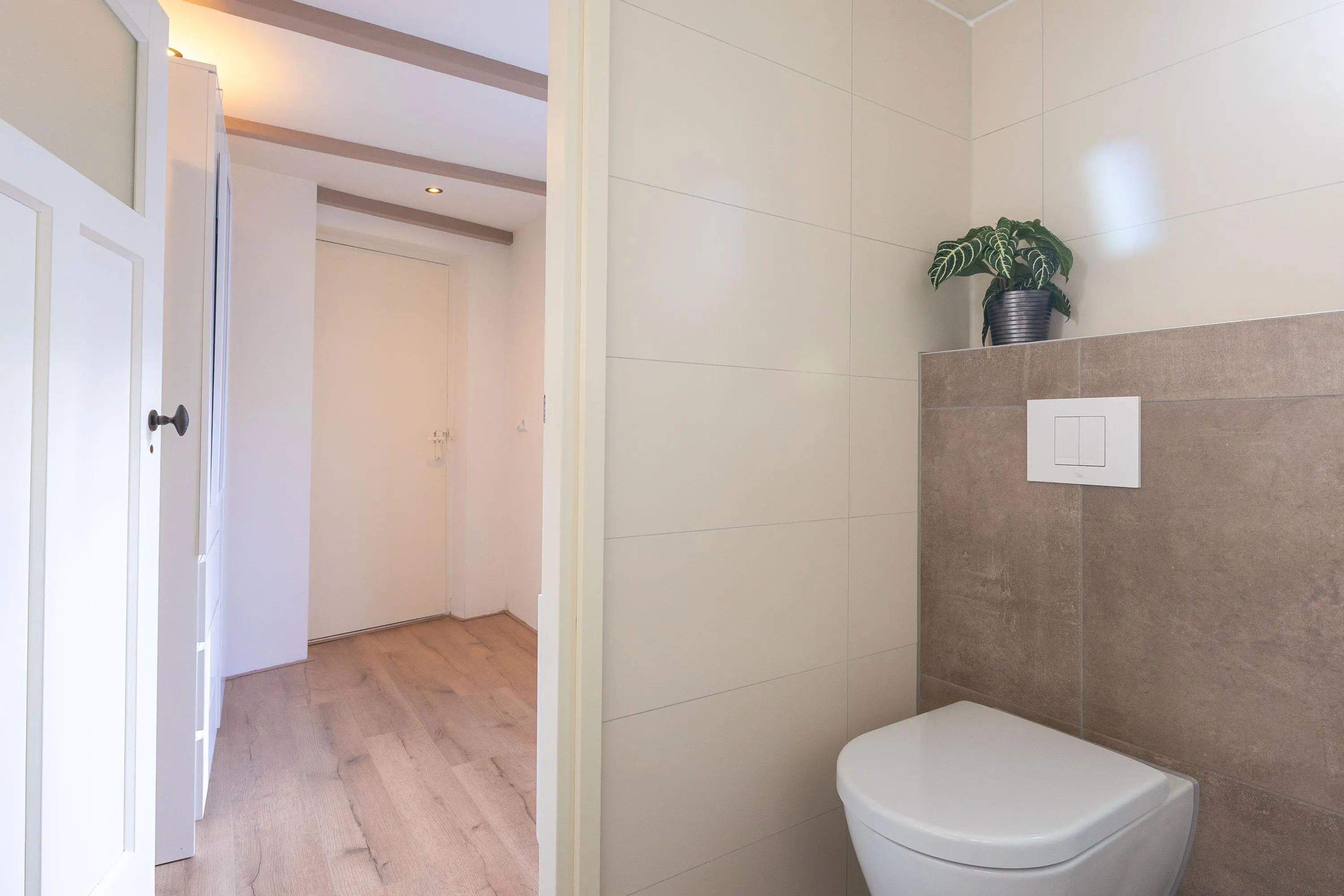 De keuken is praktisch en compleet ingericht met een gasfornuis, combi-oven, vaatwasser, spoelbak, koelkast en ruim voldoende werkblad, waardoor koken hier prettig en functioneel is. Aansluitend bevindt zich de bijkeuken met opstelling voor wasmachine, droger en de cv-installatie. Het toilet op de begane grond is modern uitgevoerd met een zwevend closet.