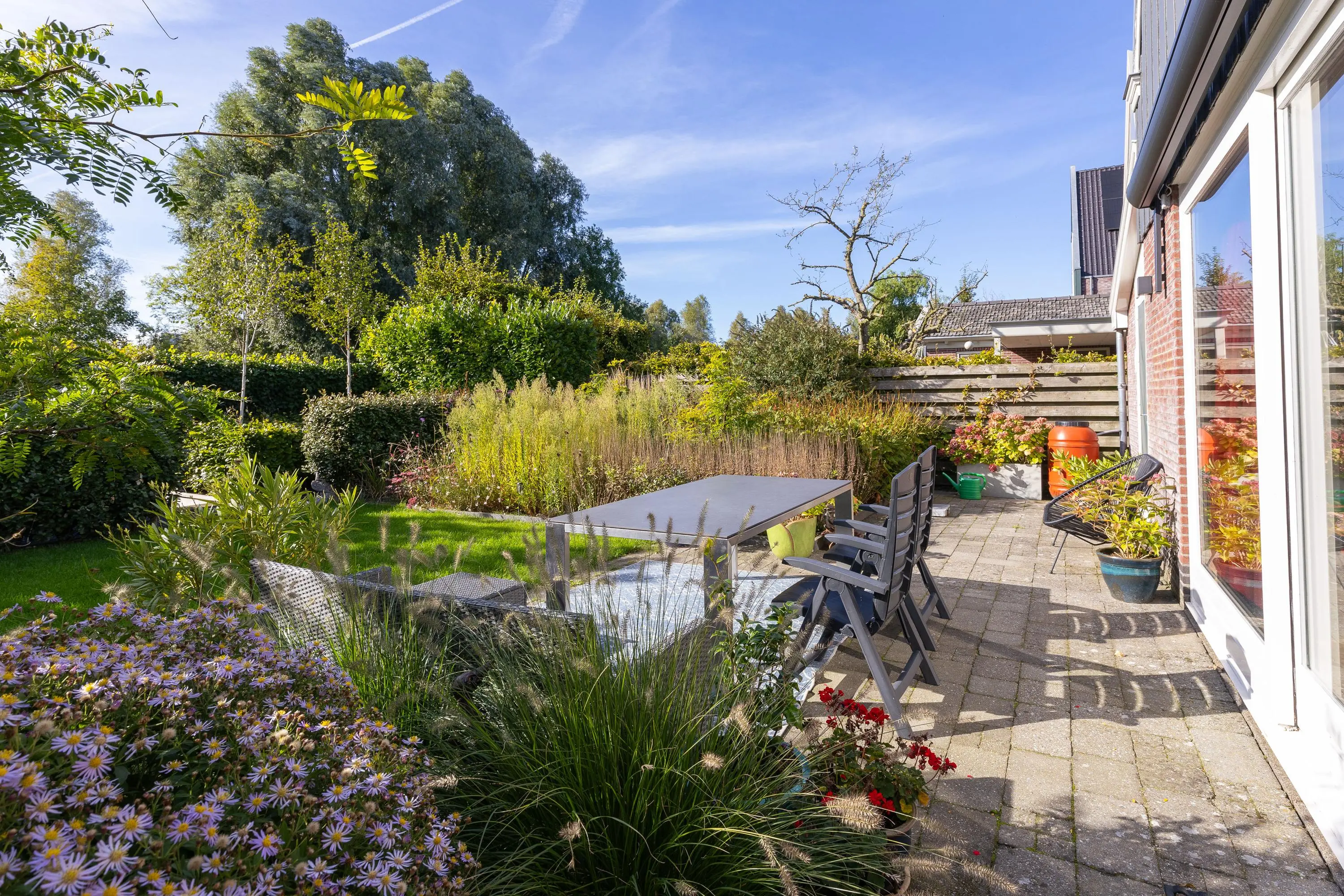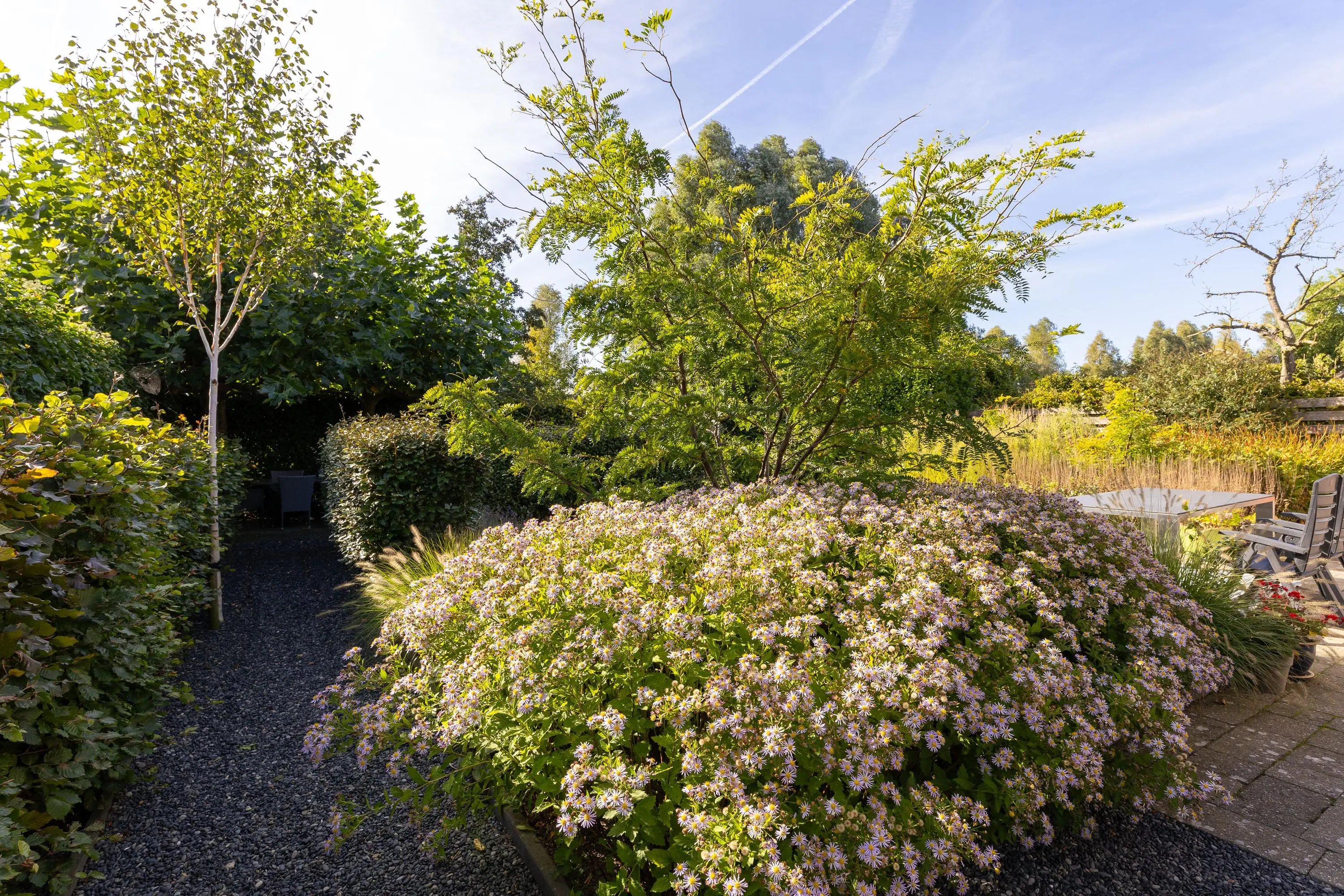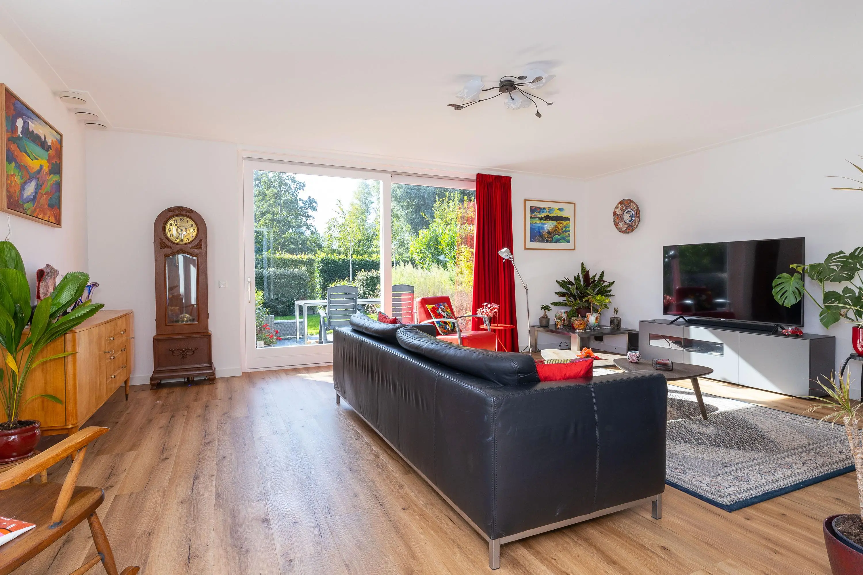 Via de zij-entree komt u binnen in de hal, met toegang tot een modern toilet, meterkast, trapopgang en toegang tot de garage. De garage is verdeeld in een gedeelte berging een bijkeuken met aansluitingen voor de wasmachine en de droger. Aan de voorzijde de woonkeuken met keukenblok in U-vormige opstelling met vaatwasser, koelkast, vriezer, oven, inductie kookplaat, afzuigkap en een Quooker, aansluitend een mooie ruimte voor een grote eettafel, ruime en lichte woonkamer met grote schuifpui naar de achtertuin. De achtertuin is gelegen op zonnige zuid-westen zeer graai aangelegd met diverse terrassen en steiger aan het water met uitzicht over het park. De begane grond is voorzien van een PVC vloer met een vloerverwarming.
