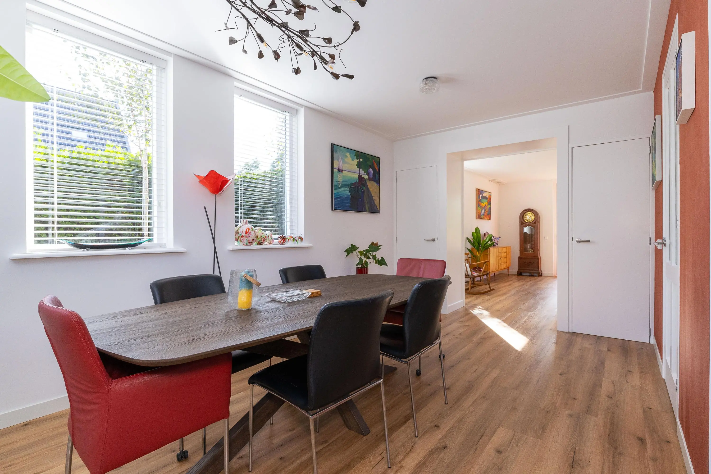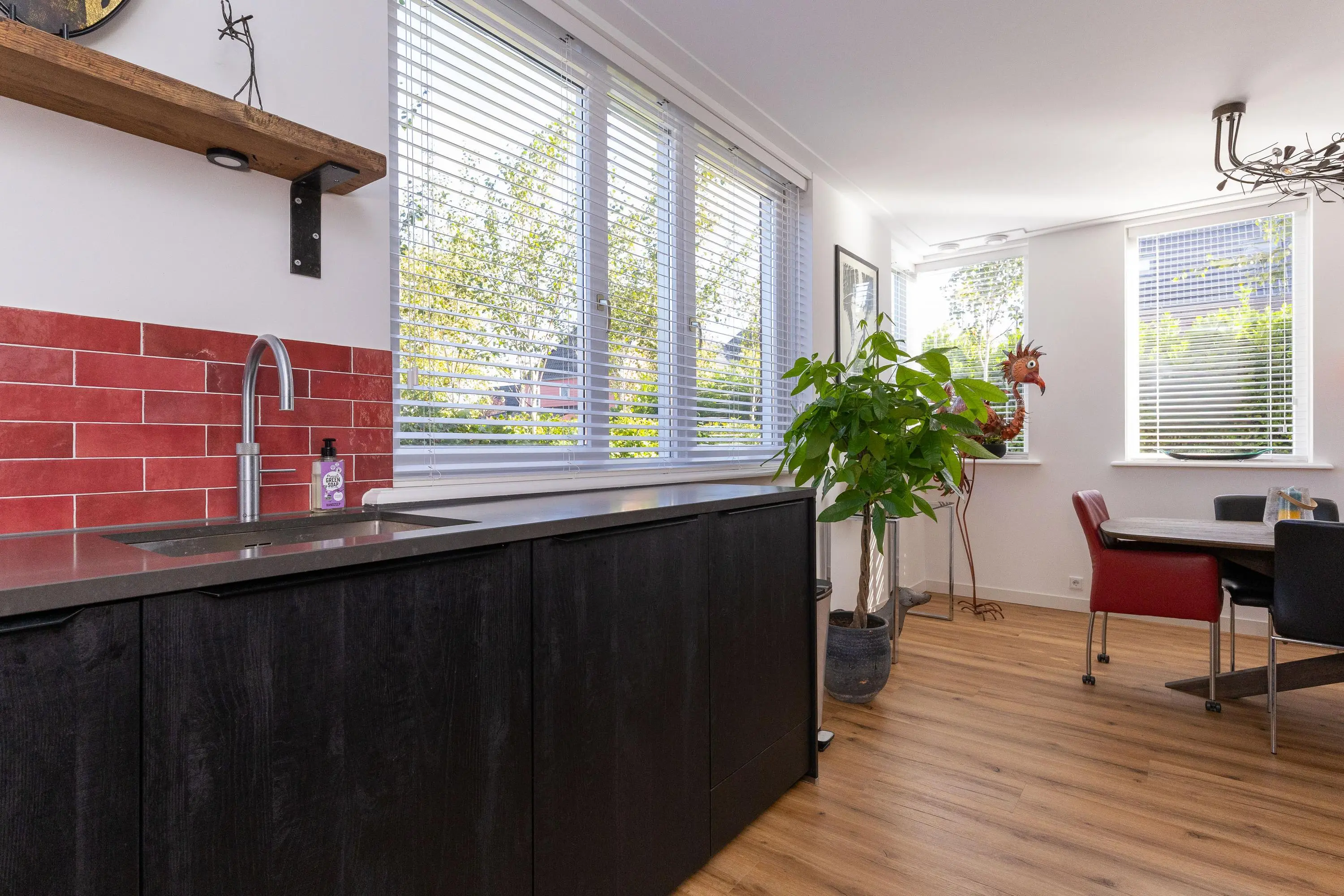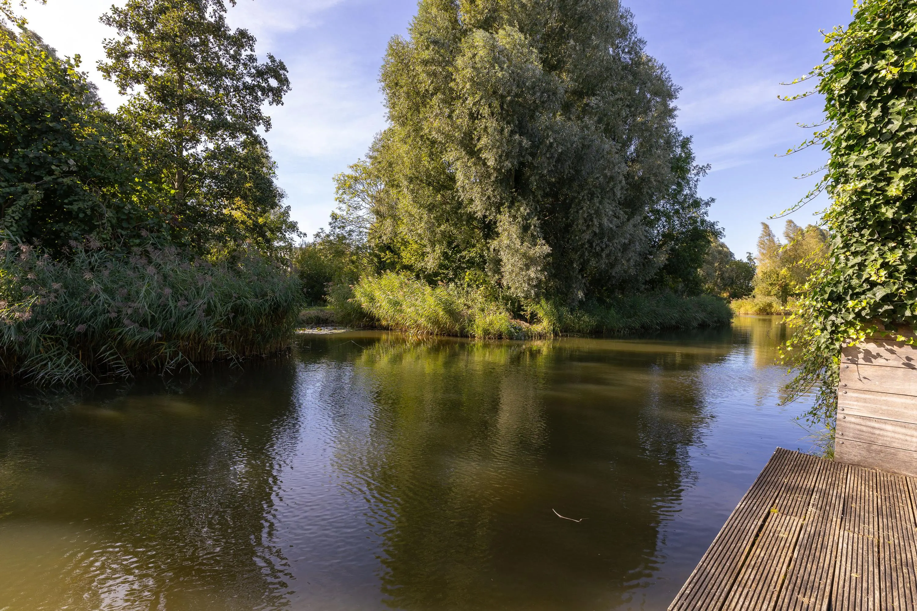 Via de zij-entree komt u binnen in de hal, met toegang tot een modern toilet, meterkast, trapopgang en toegang tot de garage. De garage is verdeeld in een gedeelte berging een bijkeuken met aansluitingen voor de wasmachine en de droger. Aan de voorzijde de woonkeuken met keukenblok in U-vormige opstelling met vaatwasser, koelkast, vriezer, oven, inductie kookplaat, afzuigkap en een Quooker, aansluitend een mooie ruimte voor een grote eettafel, ruime en lichte woonkamer met grote schuifpui naar de achtertuin. De achtertuin is gelegen op zonnige zuid-westen zeer graai aangelegd met diverse terrassen en steiger aan het water met uitzicht over het park. De begane grond is voorzien van een PVC vloer met een vloerverwarming.