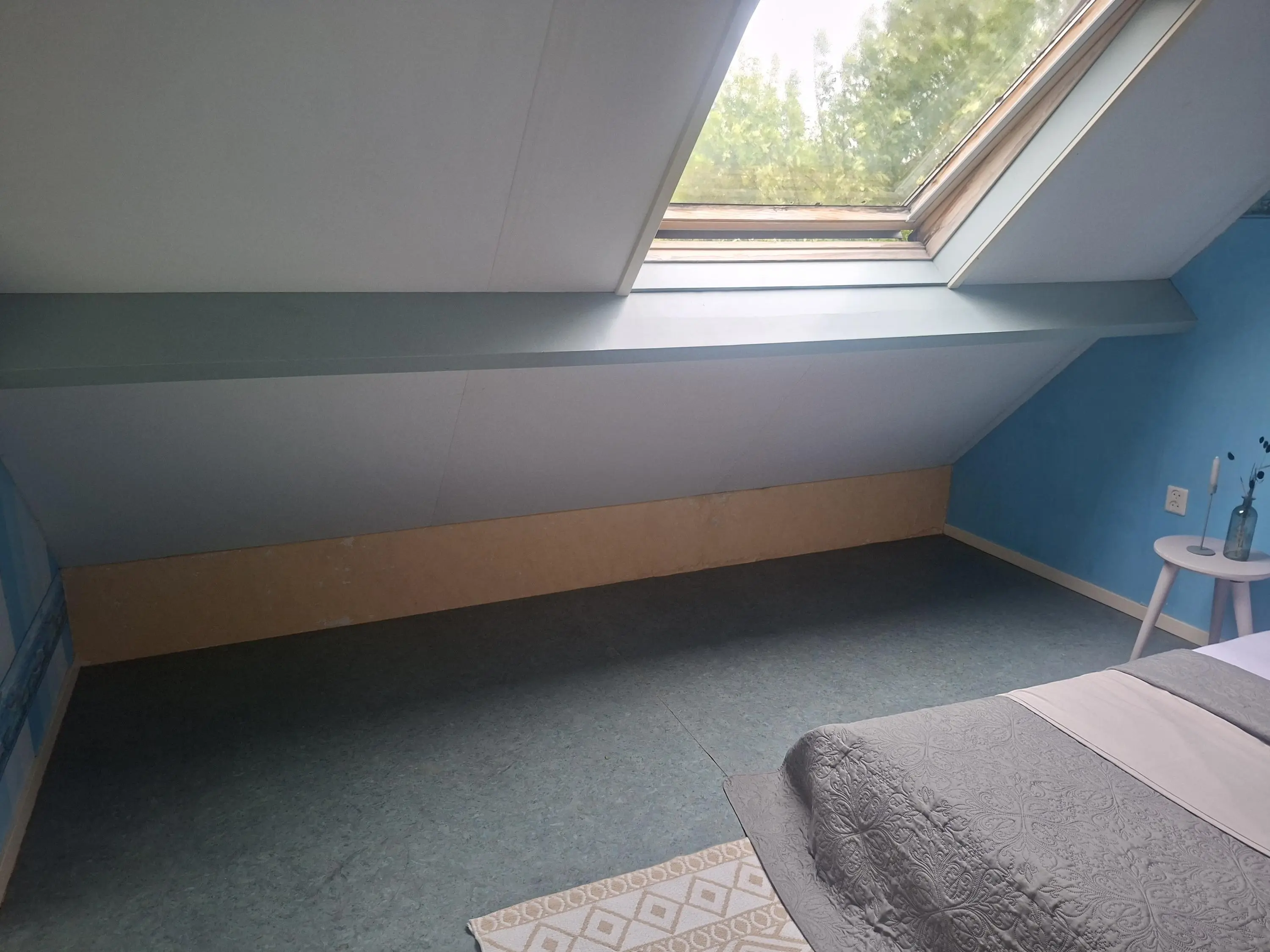 Bereikbaar middels vaste trap, overloop met cv opstelling, twee slaapkamers beiden voorzien van kantelraam.