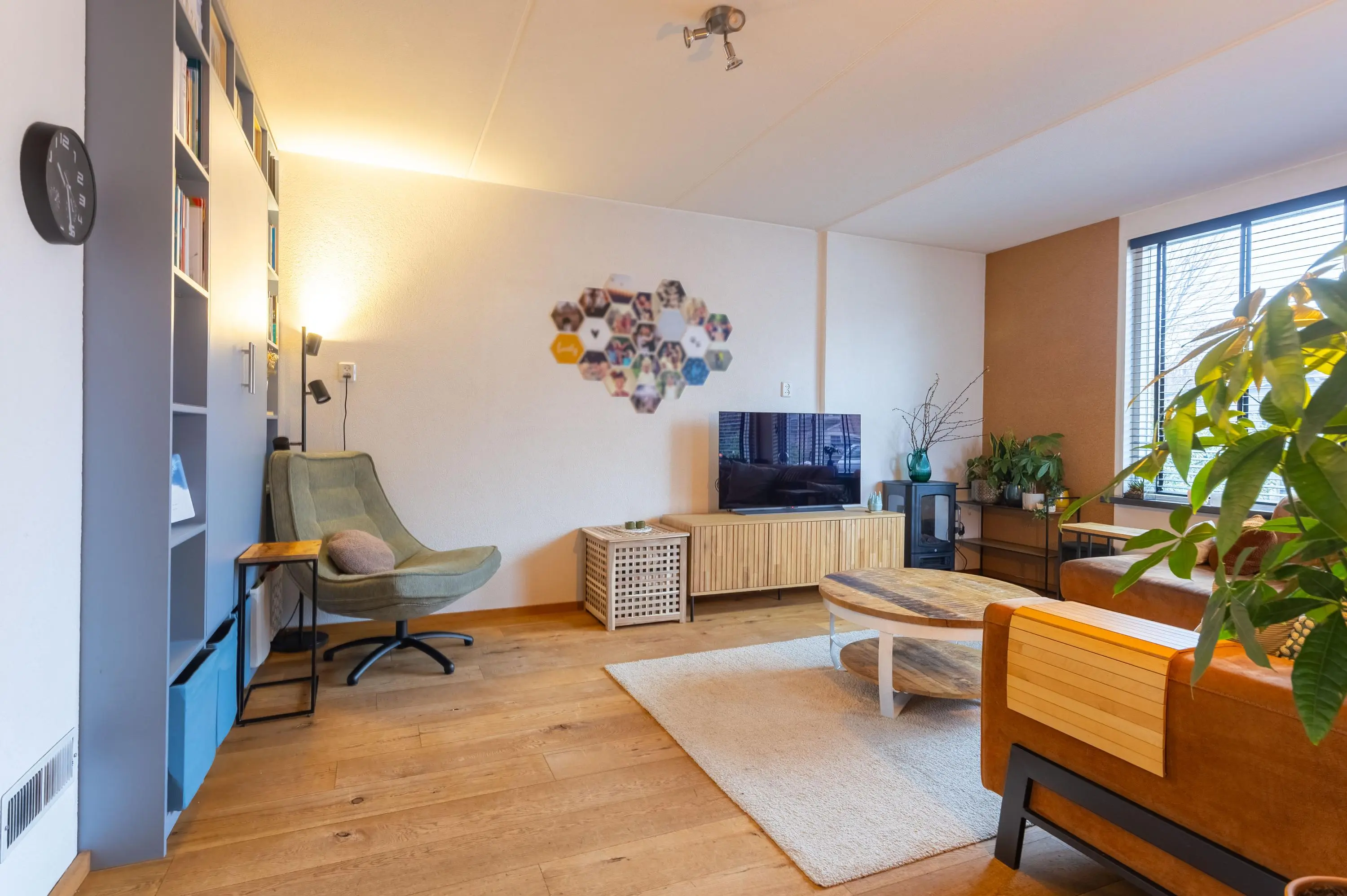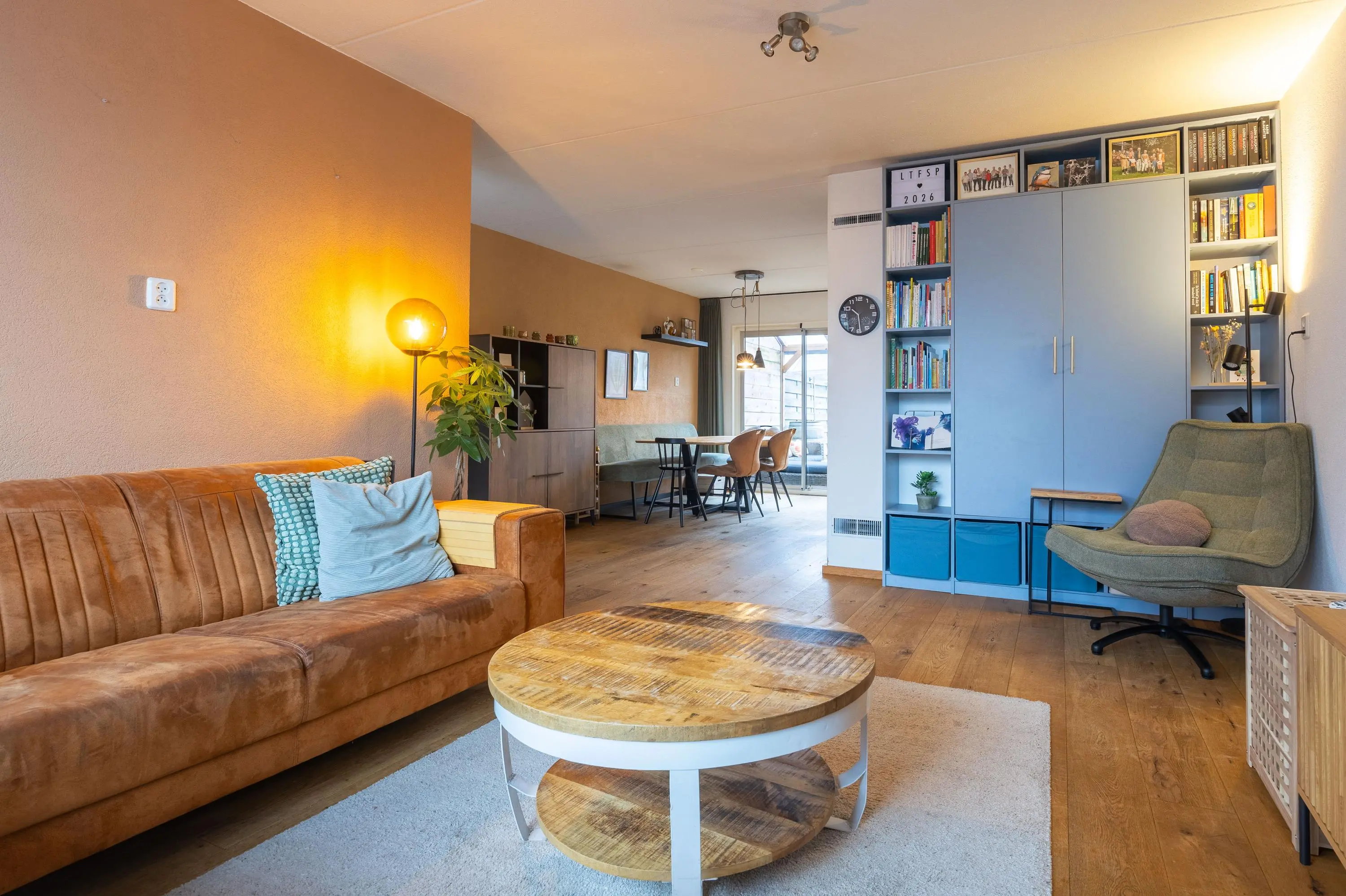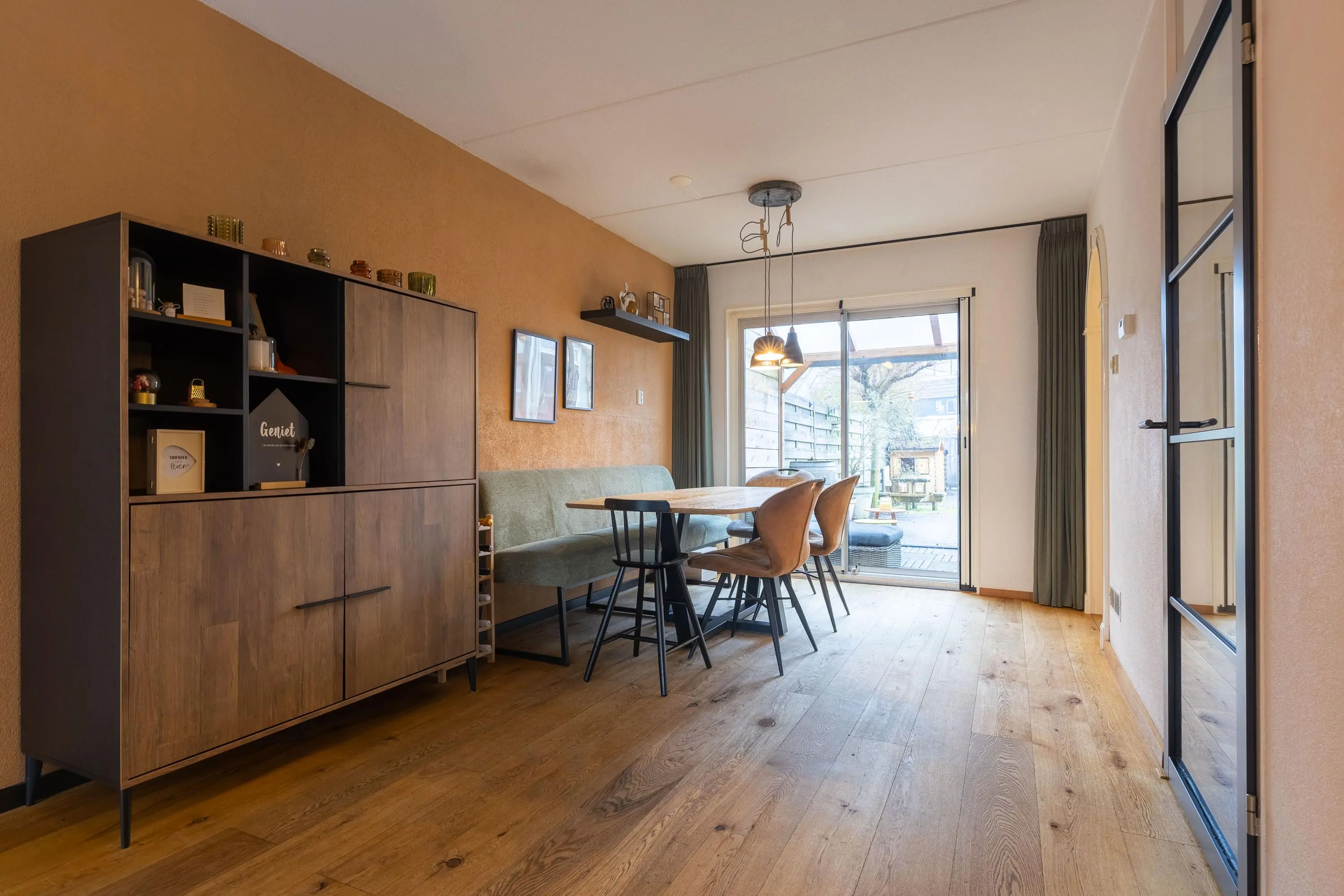De woning beschikt over een lichte en ruime woonkamer en is voorzien van een massief eiken vloer. Via de schuifpui loopt u naar de aangebouwde veranda, waardoor binnen en buiten naadloos in elkaar overlopen. Hier geniet u het hele jaar door van het buitenleven. De flinke, zonnige tuin op het noordwesten biedt volop privacy en is een heerlijke plek om te ontspannen of gezellig samen te komen. Achter in de tuin bevindt zich een ruime vrijstaande stenen schuur, ideaal voor fietsen, hobby’s of extra opslag.