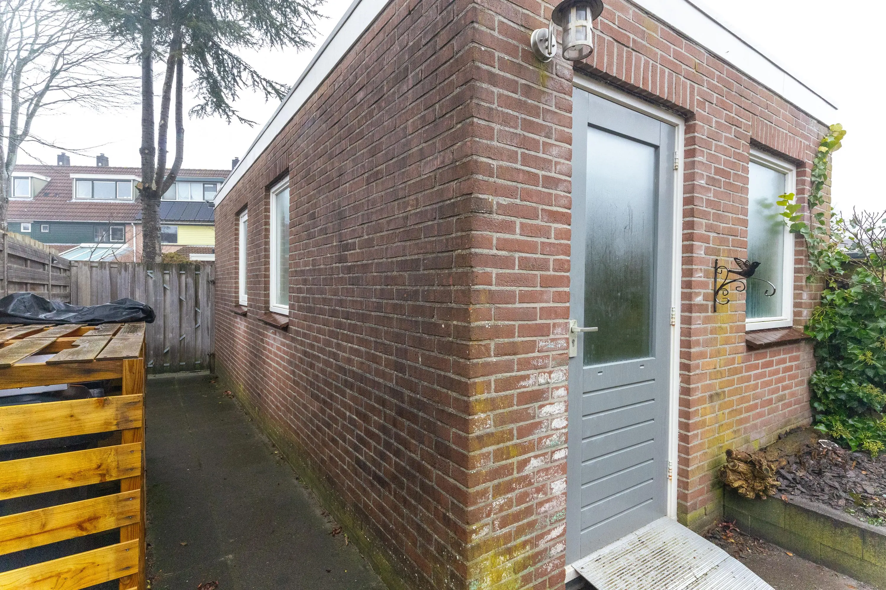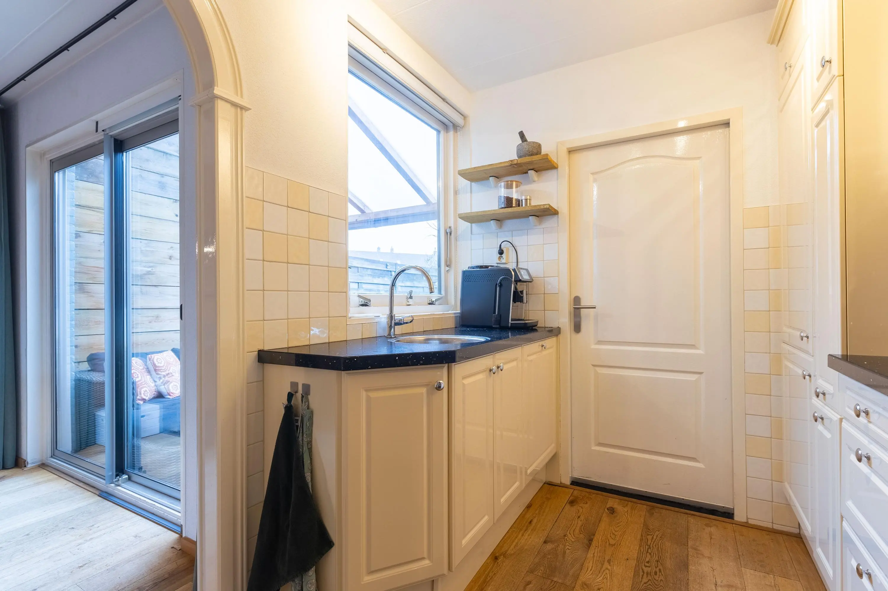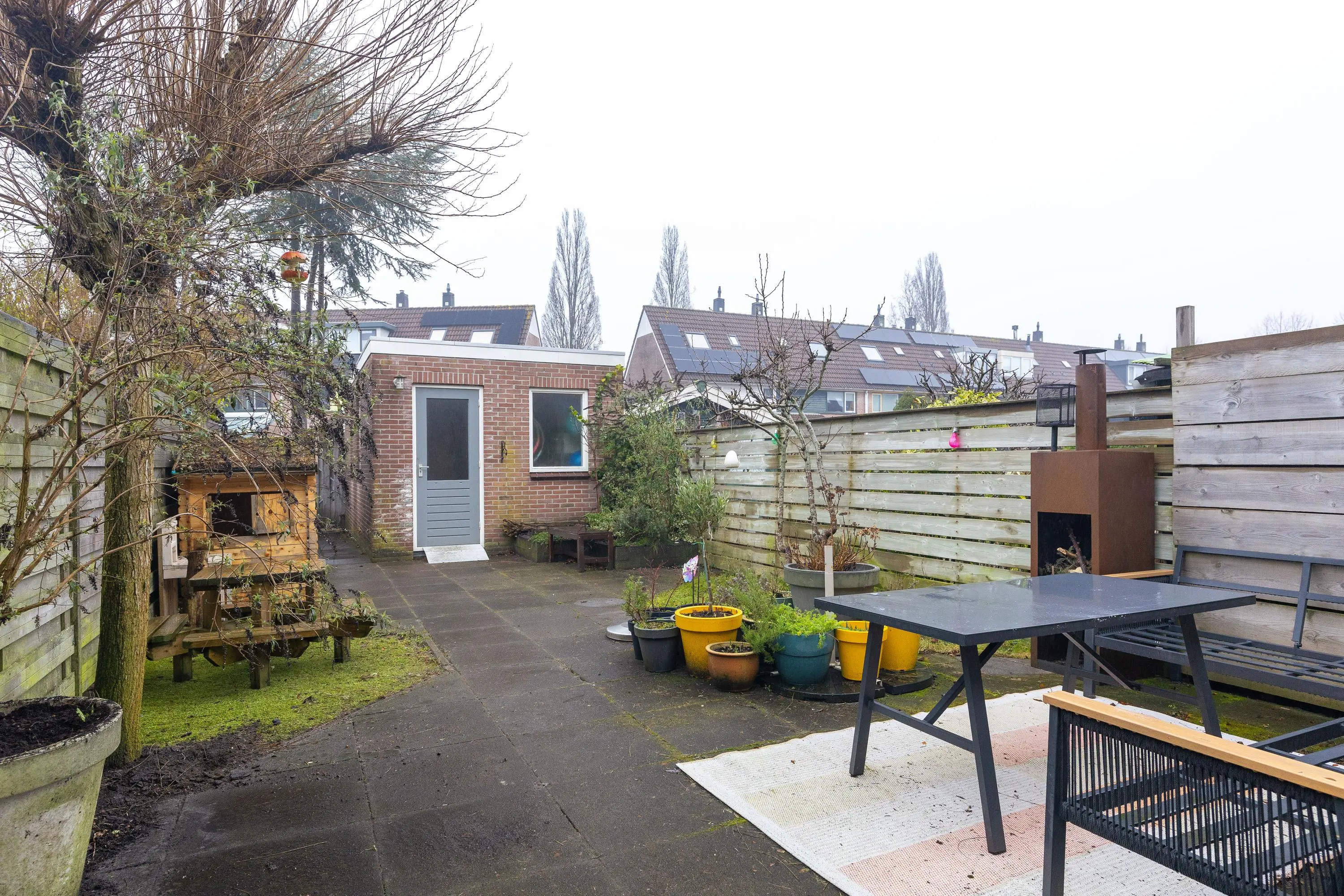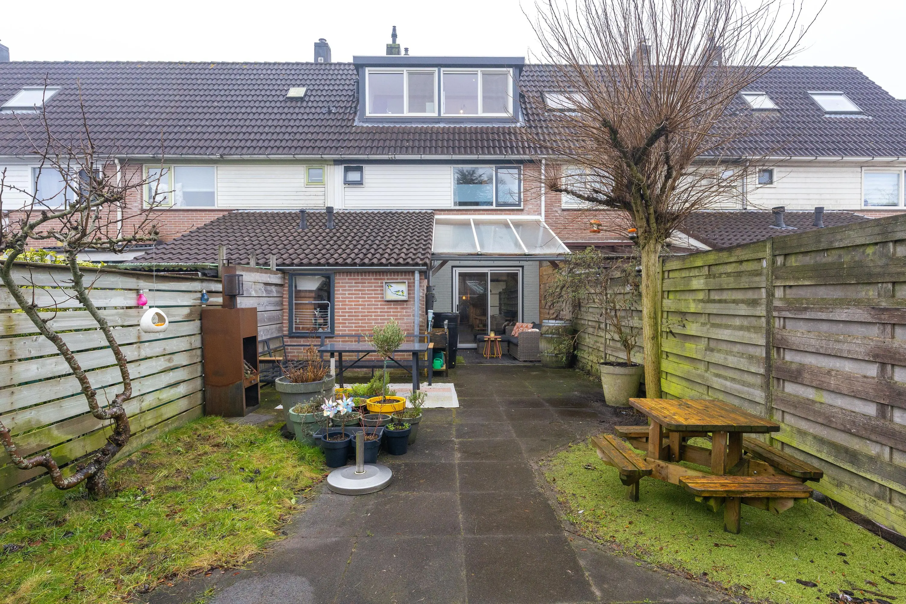 De woning beschikt over een lichte en ruime woonkamer en is voorzien van een massief eiken vloer. Via de schuifpui loopt u naar de aangebouwde veranda, waardoor binnen en buiten naadloos in elkaar overlopen. Hier geniet u het hele jaar door van het buitenleven. De flinke, zonnige tuin op het noordwesten biedt volop privacy en is een heerlijke plek om te ontspannen of gezellig samen te komen. Achter in de tuin bevindt zich een ruime vrijstaande stenen schuur, ideaal voor fietsen, hobby’s of extra opslag.