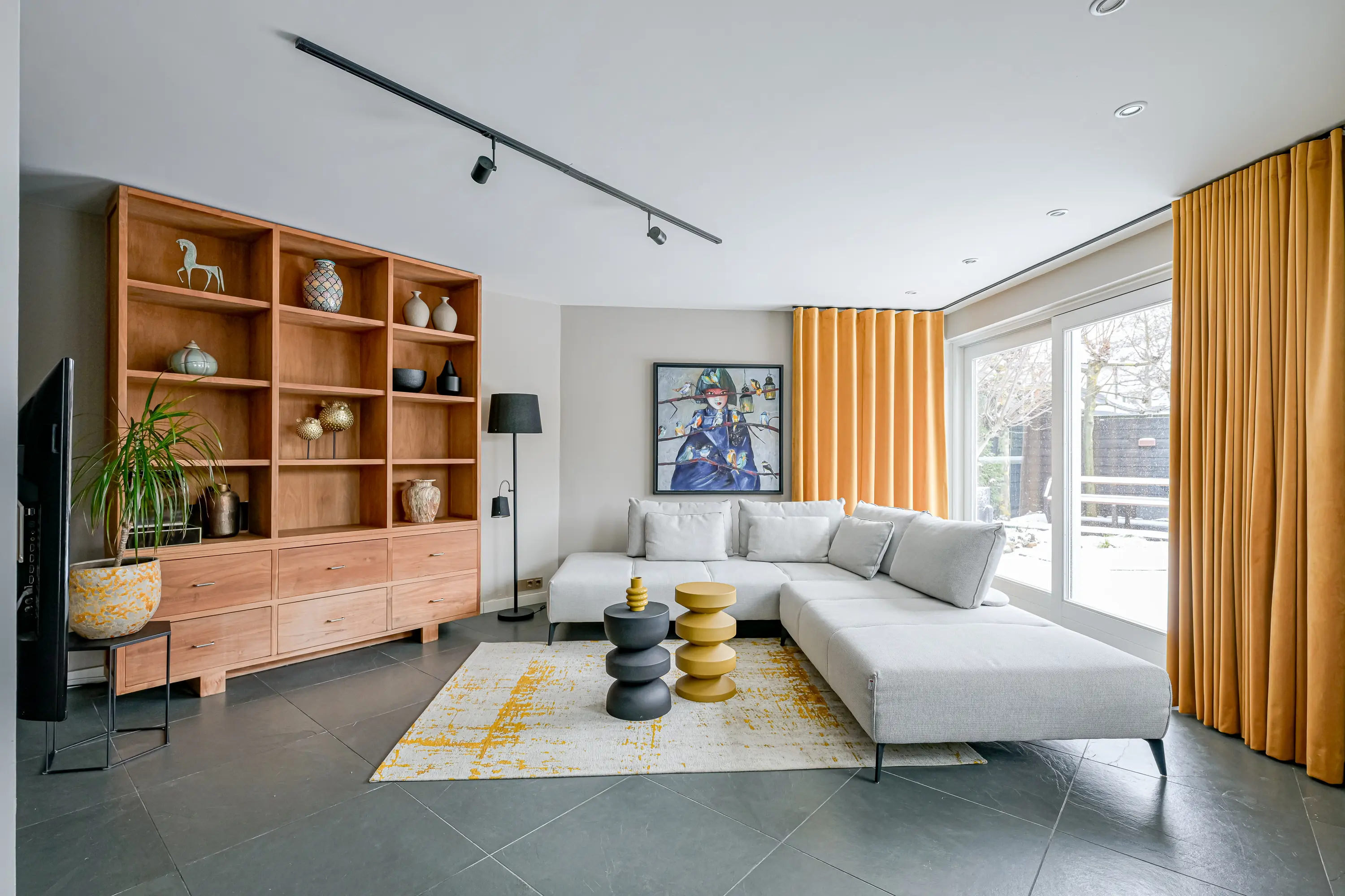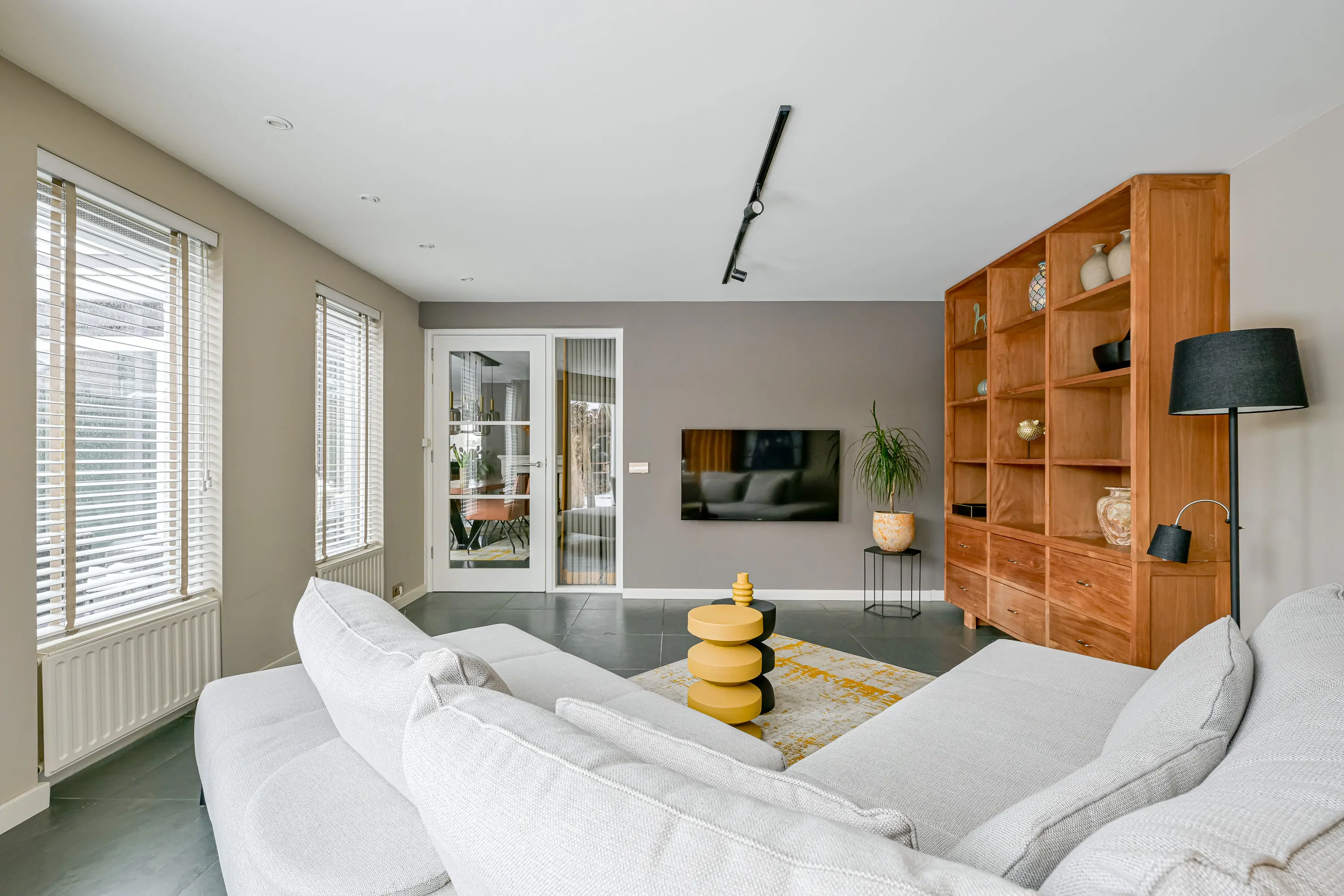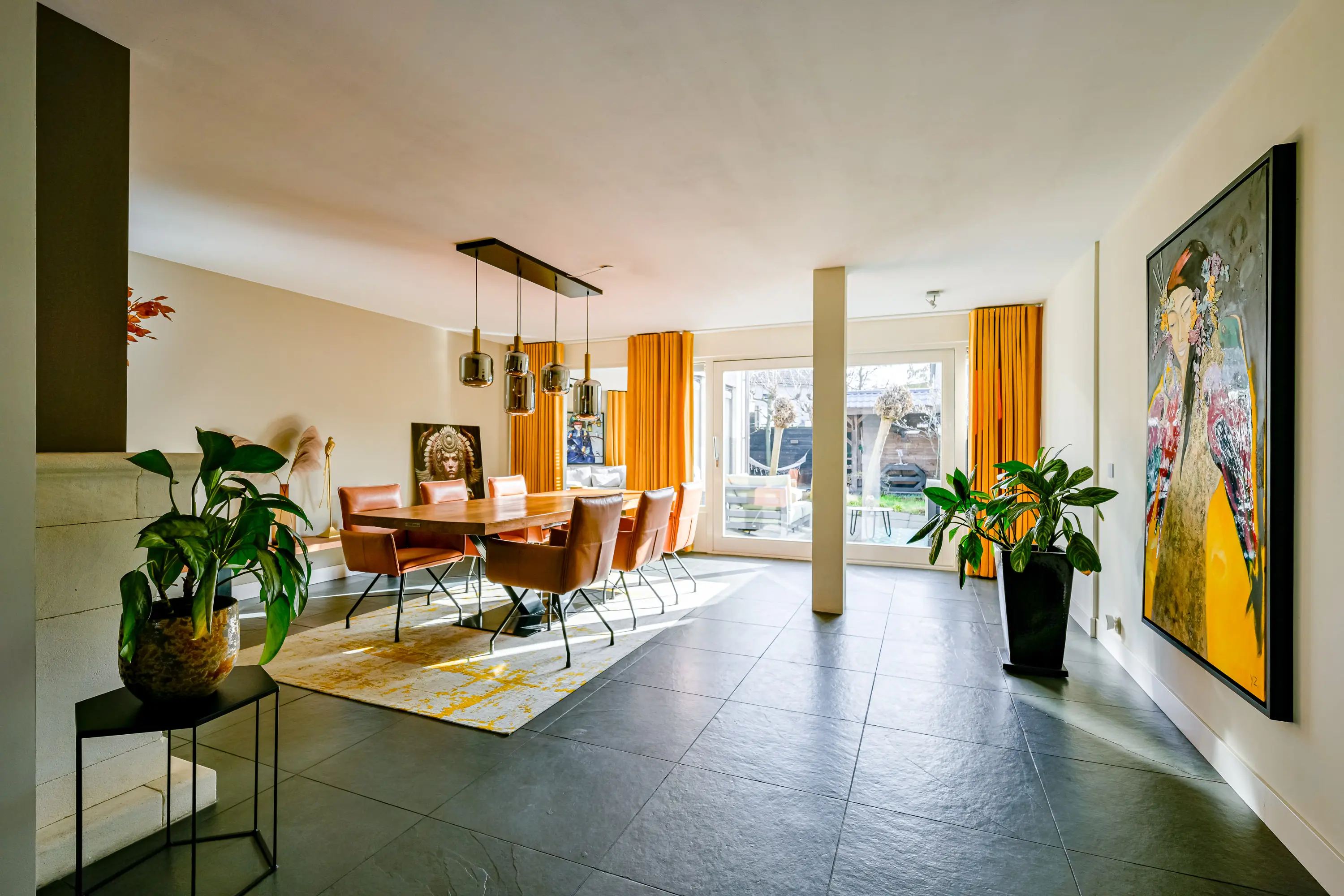 De woonkamer ligt in het hart van de woning en heeft verbinding met de open keuken, tuin en de aanbouw welke nu als loungeplek is ingericht. De gehele benedenverdieping is voorzien van een mooie plavuizen vloer met vloerverwarming. Alle wanden zijn hier voorzien van strak stucwerk en dat geeft rust en eenheid. Vanuit de woonkamer heeft u door de schuifpui toegang en zicht op de fraai aangelegde achtertuin. De aanbouw is in 2001 geplaats en heeft veel ruimte toegevoegd. Ook hier heeft u direct toegang tot de tuin door middel van een grote schuifpui. Dit deel van de woning is in te richten voor diverse doeleinden. Denk aan kantoorruimte, of een slaapruimte waarmee gelijkvloers wonen mogelijk wordt. Op dit moment is de aanbouw ingericht als loungeplek. Heeft u daar toch een ander idee bij? De keuze is aan u!