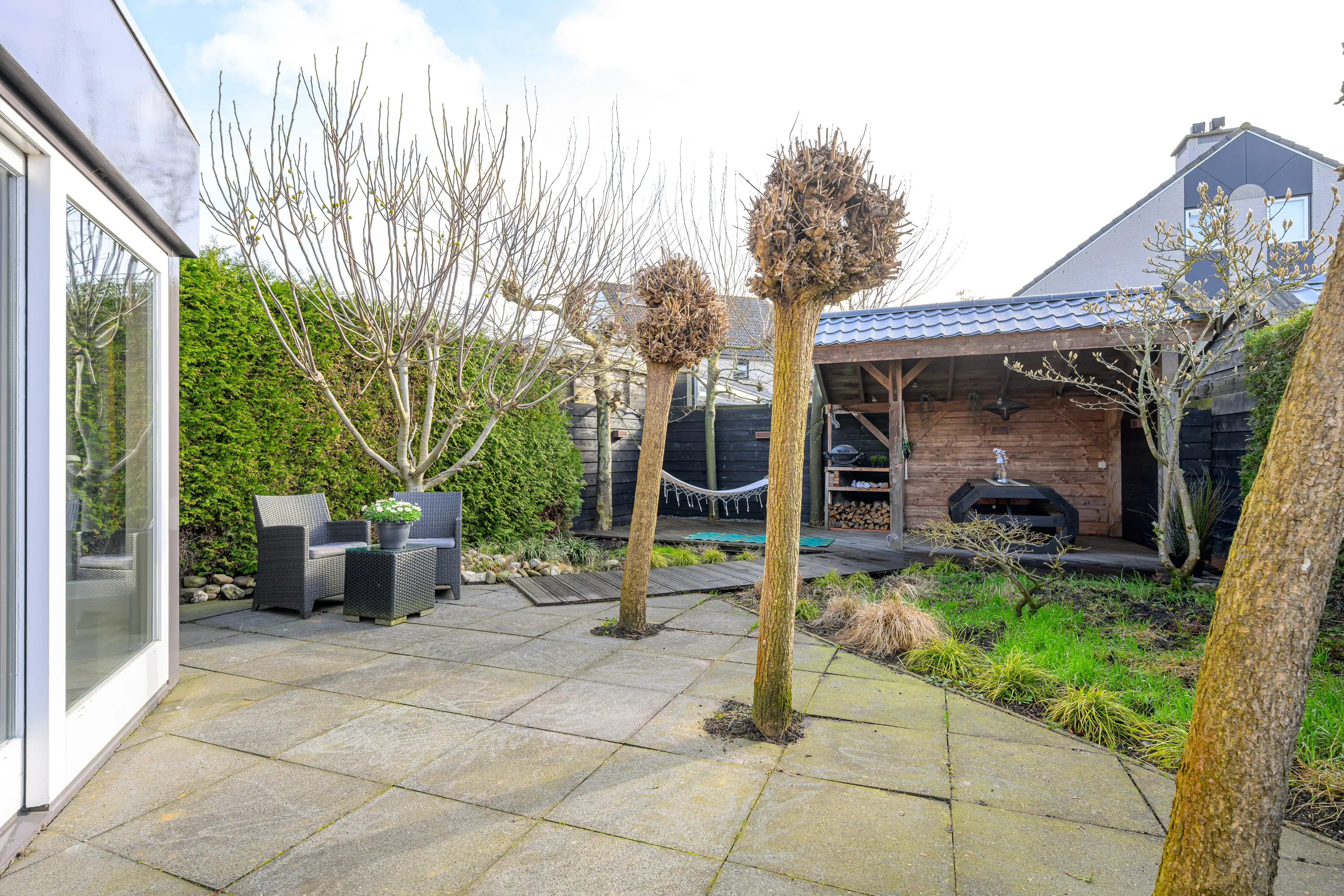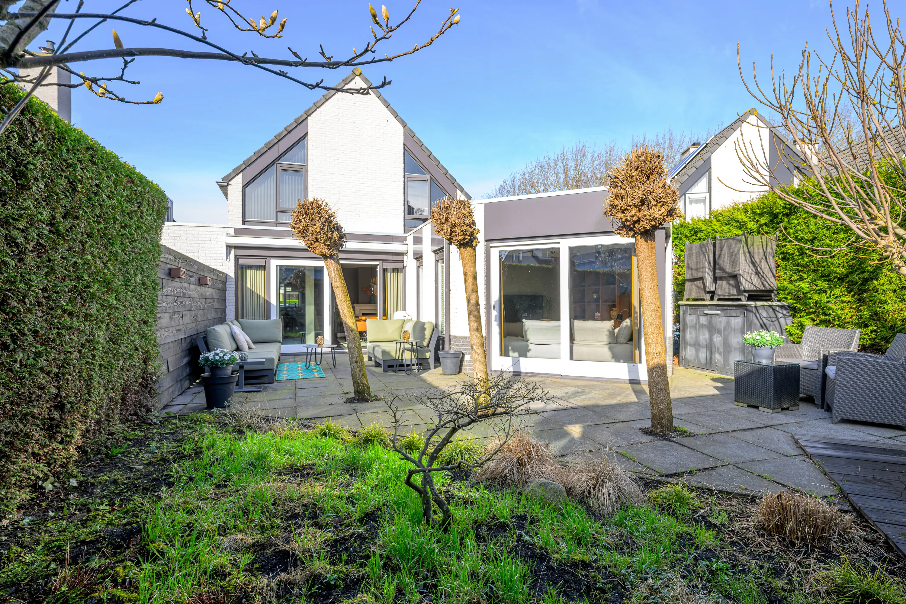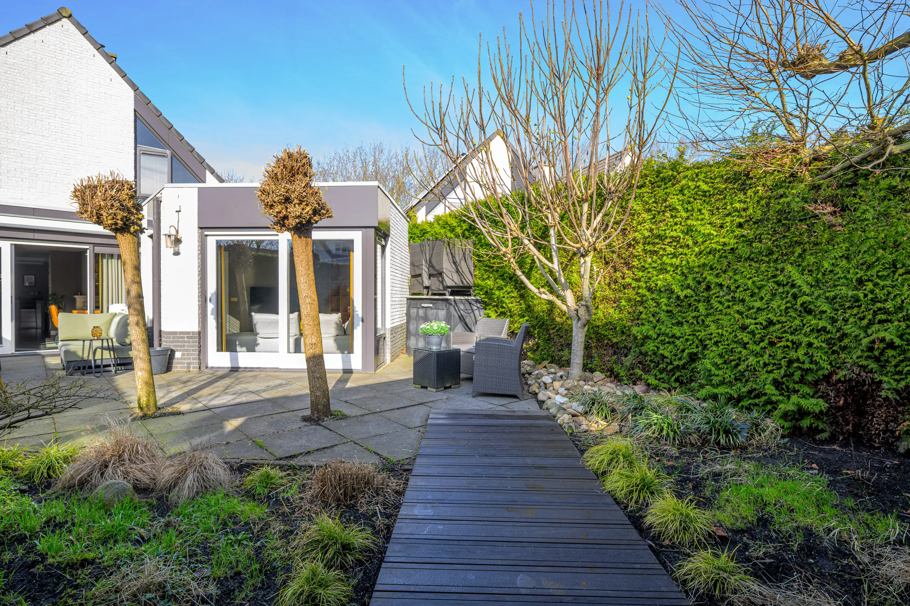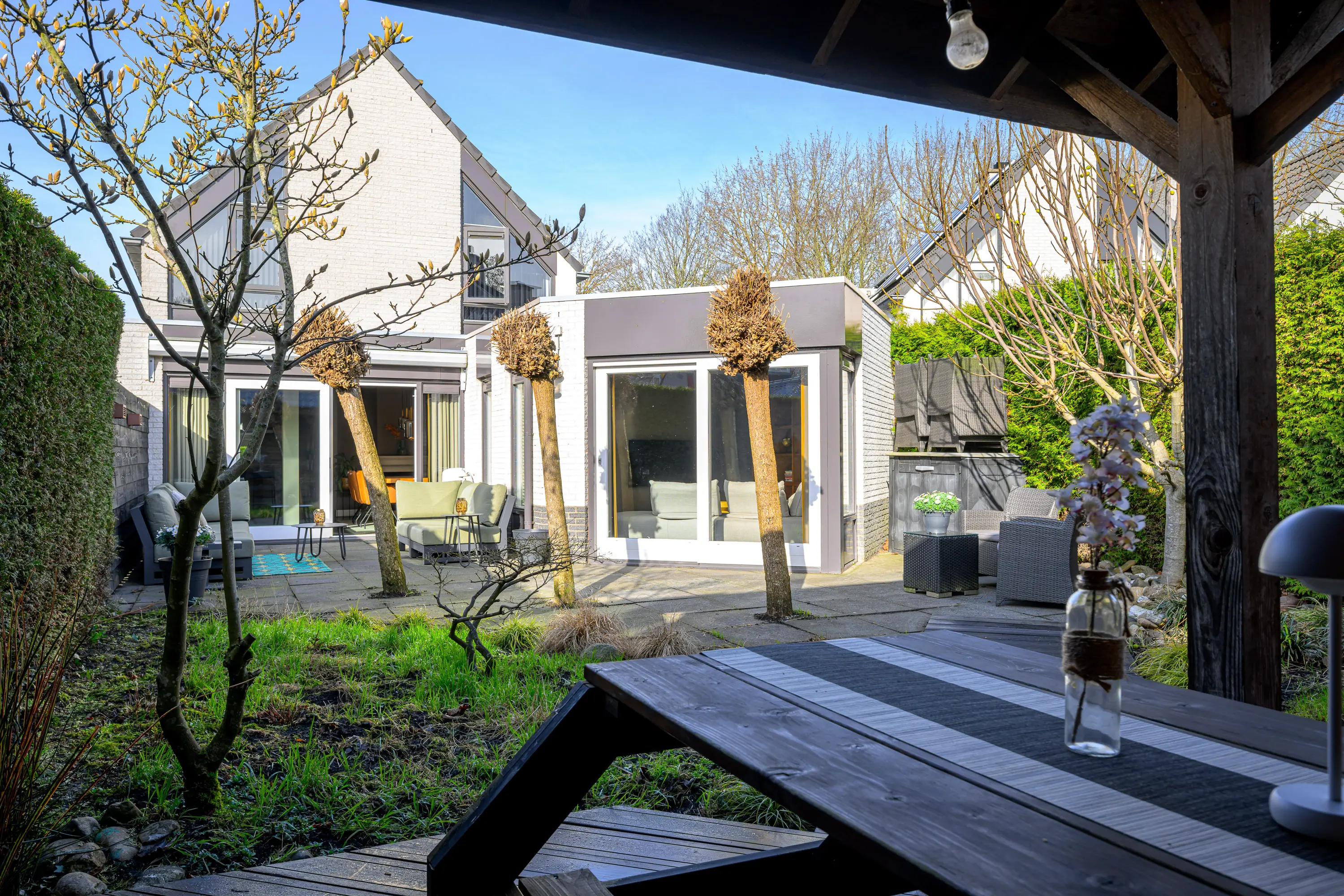 De grote achtertuin is fraai aangelegd met recent vervangen houten terras en voorzien van diverse zitjes. Zo is er in de zomer altijd wel een fijn plekje te vinden om van deze mooie tuin te genieten. De tuin is voorzien van sierbestrating, vaste plantenborders en bomen. De prachtige veranda maakt het plaatje helemaal compleet! Hier is het zomerdag tot in de late uurtjes genieten!