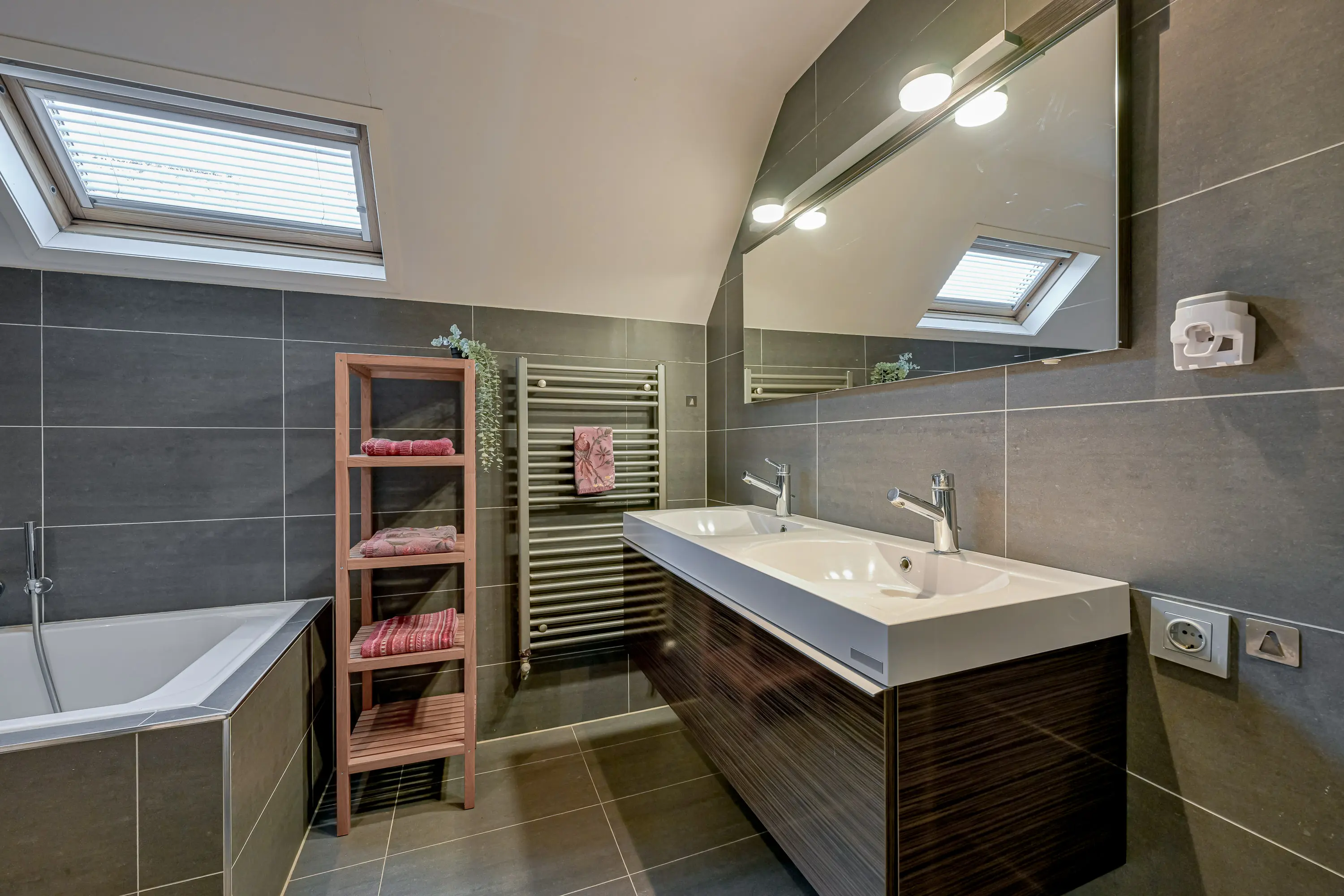 Er zijn op deze verdieping drie ruime slaapkamers. Eén van deze kamers is voorzien van een vide waar een fijne chillplek is gecreëerd. Echt een lekker plekje voor kinderen om zich even terug te kunnen trekken. De badkamer heeft vloerverwarming en is bovengemiddeld groot. Deze ruimte is voorzien van alles wat nodig is om een badkamer comfortabel te maken. Denk hierbij aan een inloopdouche, ligbad, toilet, bidet en een dubbele wastafel met meubel. Verder vindt u op deze verdieping nog een aparte ruimte voor de cv-ketel.