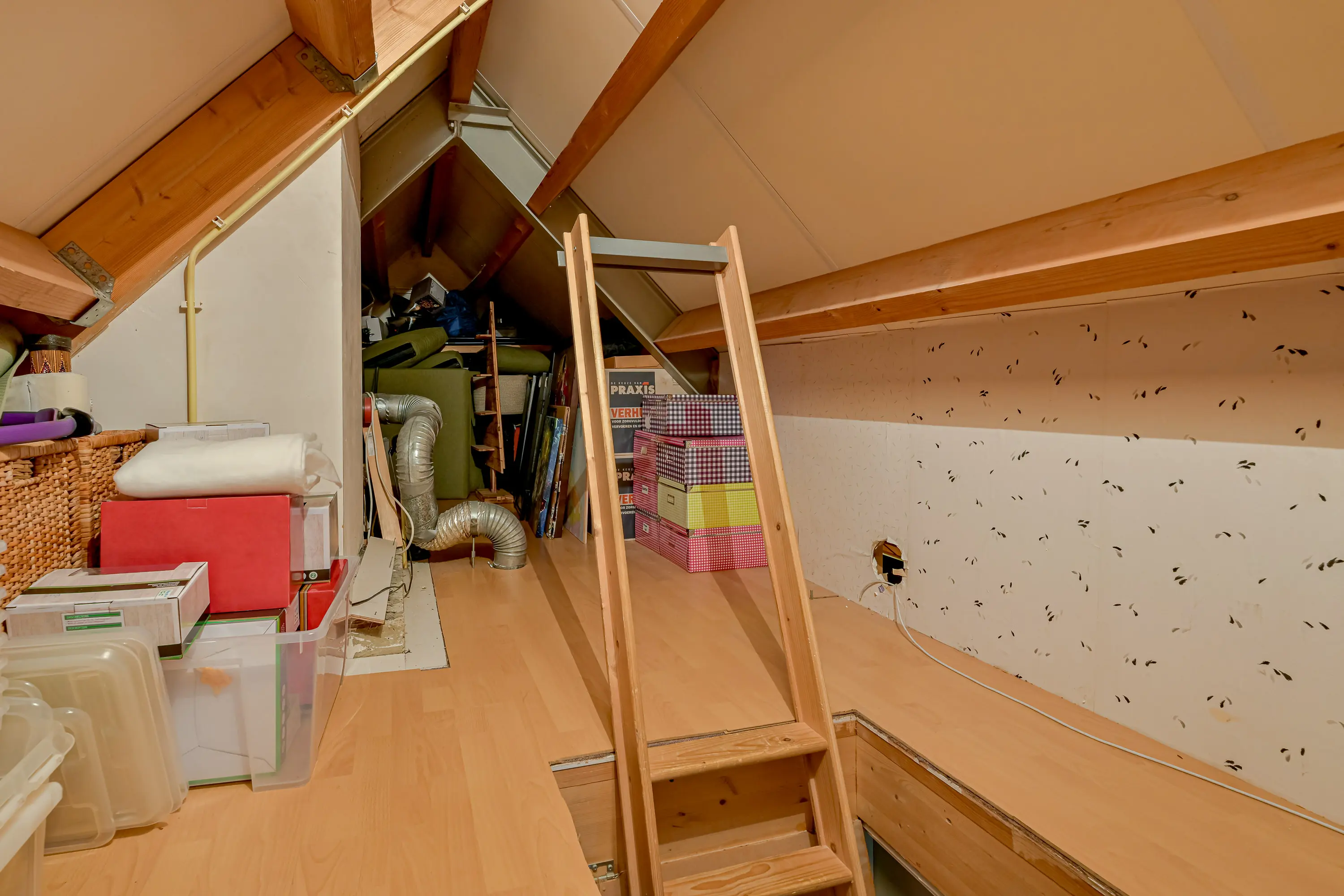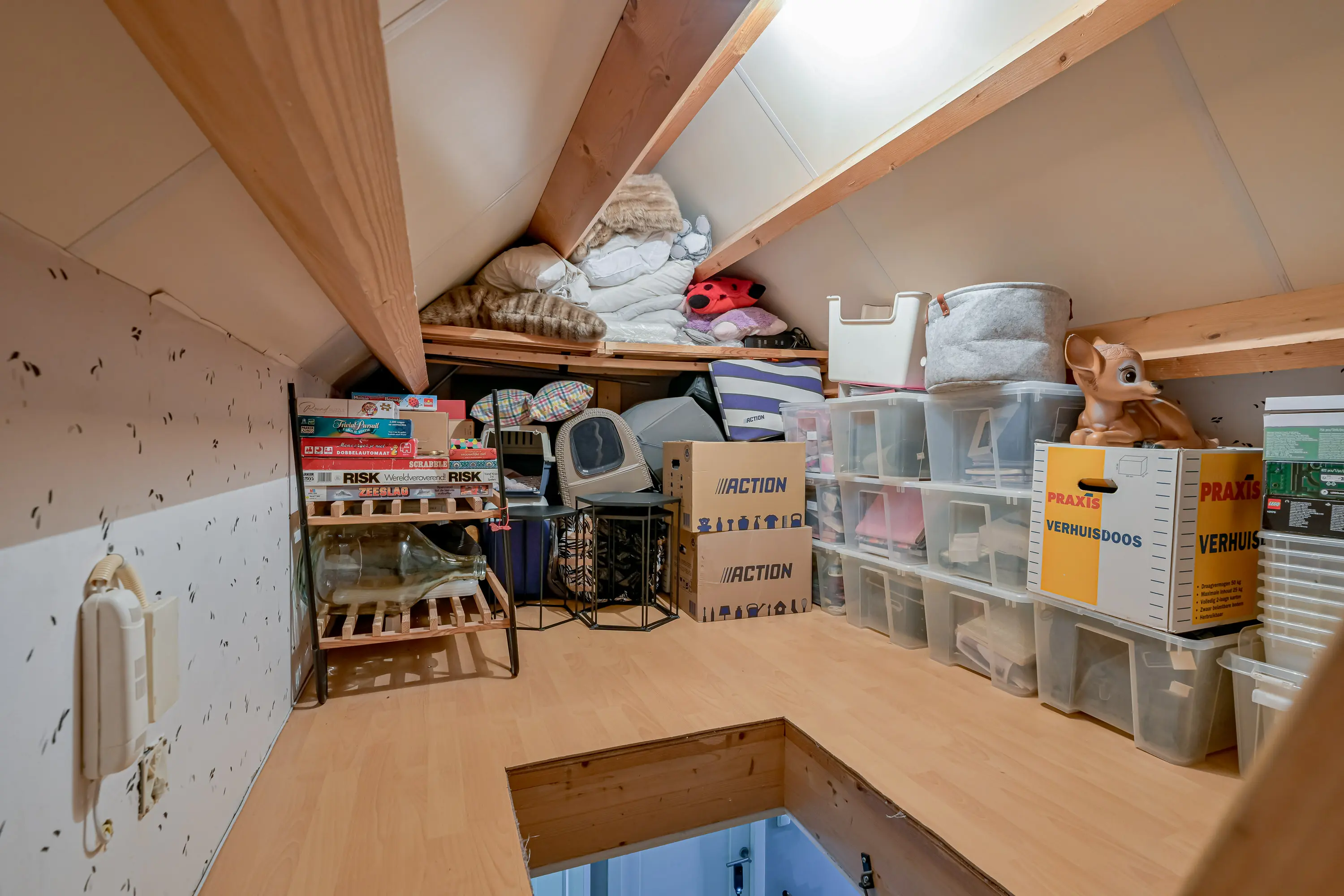 Aan opbergruimte was er al geen gebrek. En dan beschikt deze woning ook nog eens over een vlizozolder. Deze is via een vlizotrap bereikbaar. Hier kunt u alles opbergen wat u niet dagelijks nodig heeft.